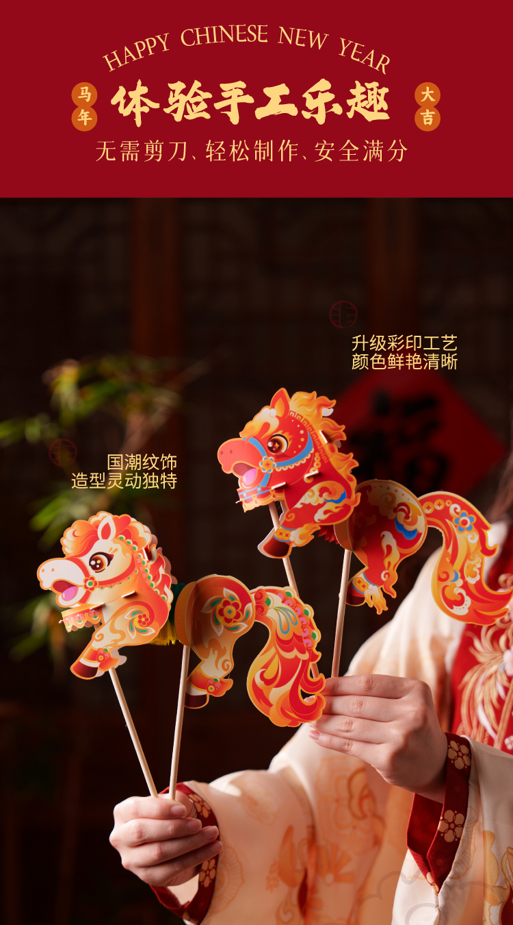 新年春节元旦马年活动吉祥翻翻马,传统名俗非遗,大人孩子都可从玩 作为古装、汉服拍照道具,提升氛围,升级彩印工艺,颜色鲜艳清晰,可随意变换造型,手工diy,儿童制作材料包,幼儿园手工