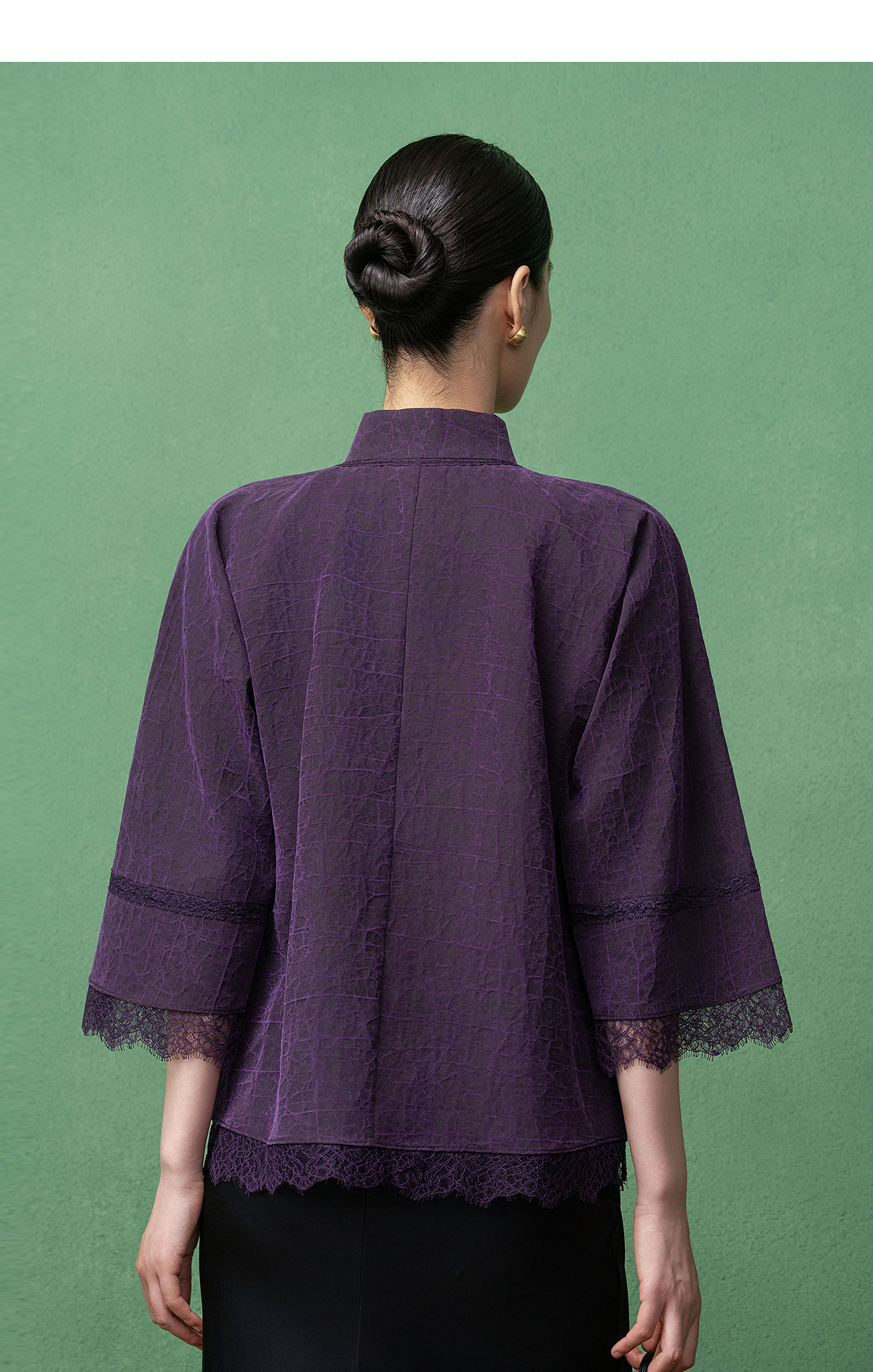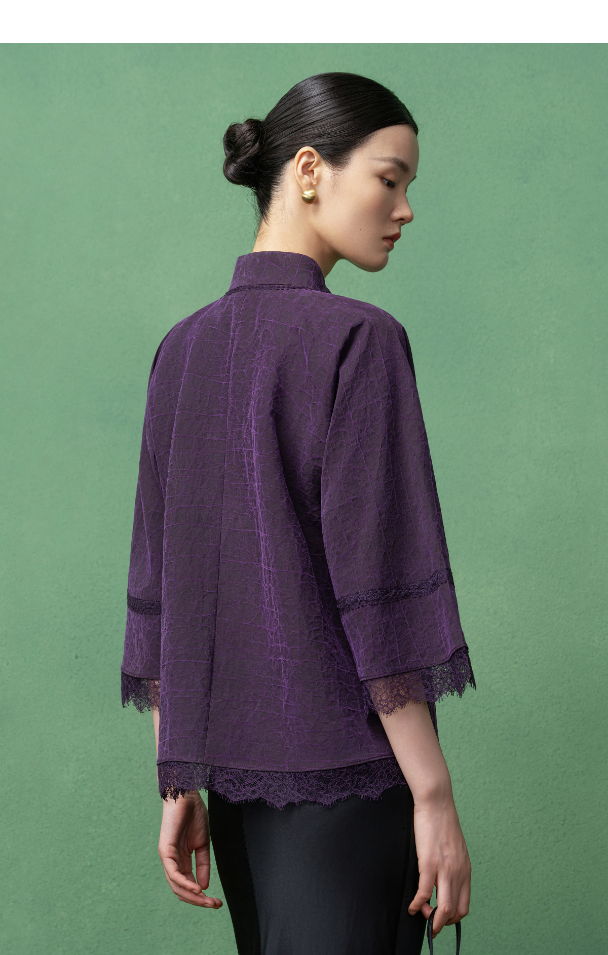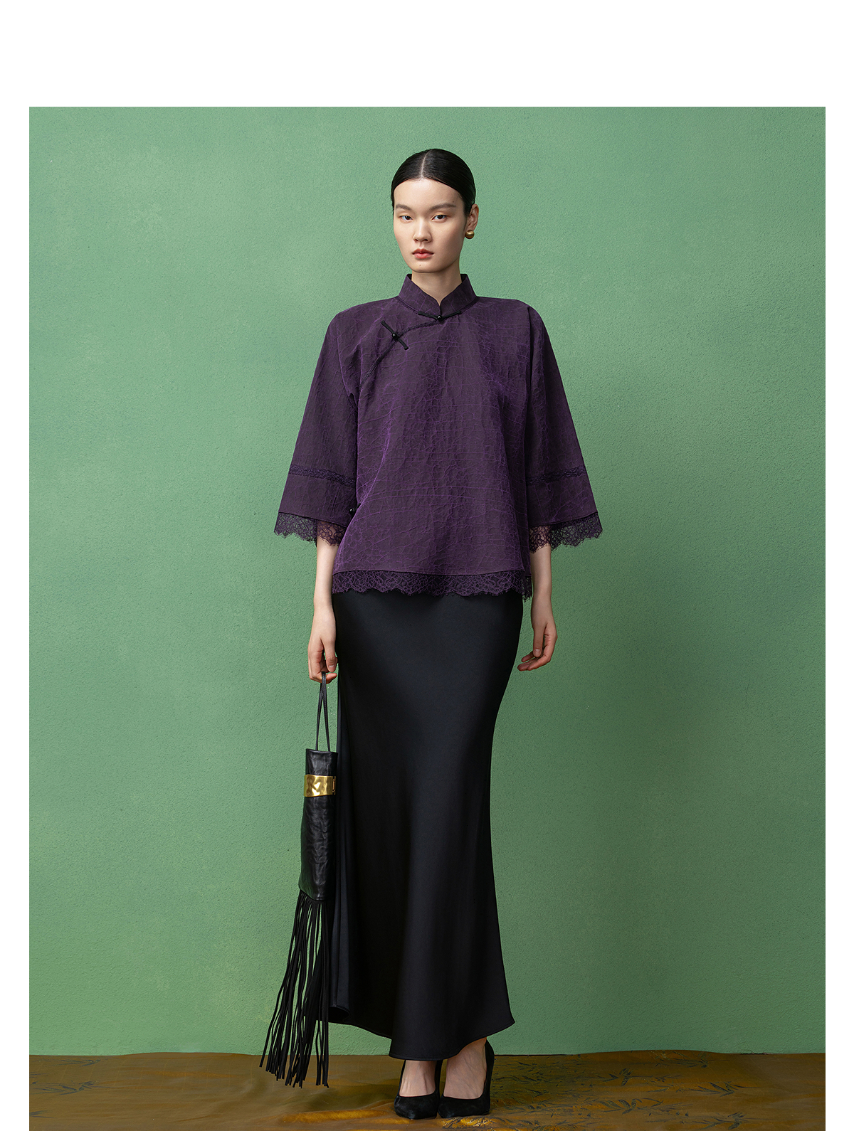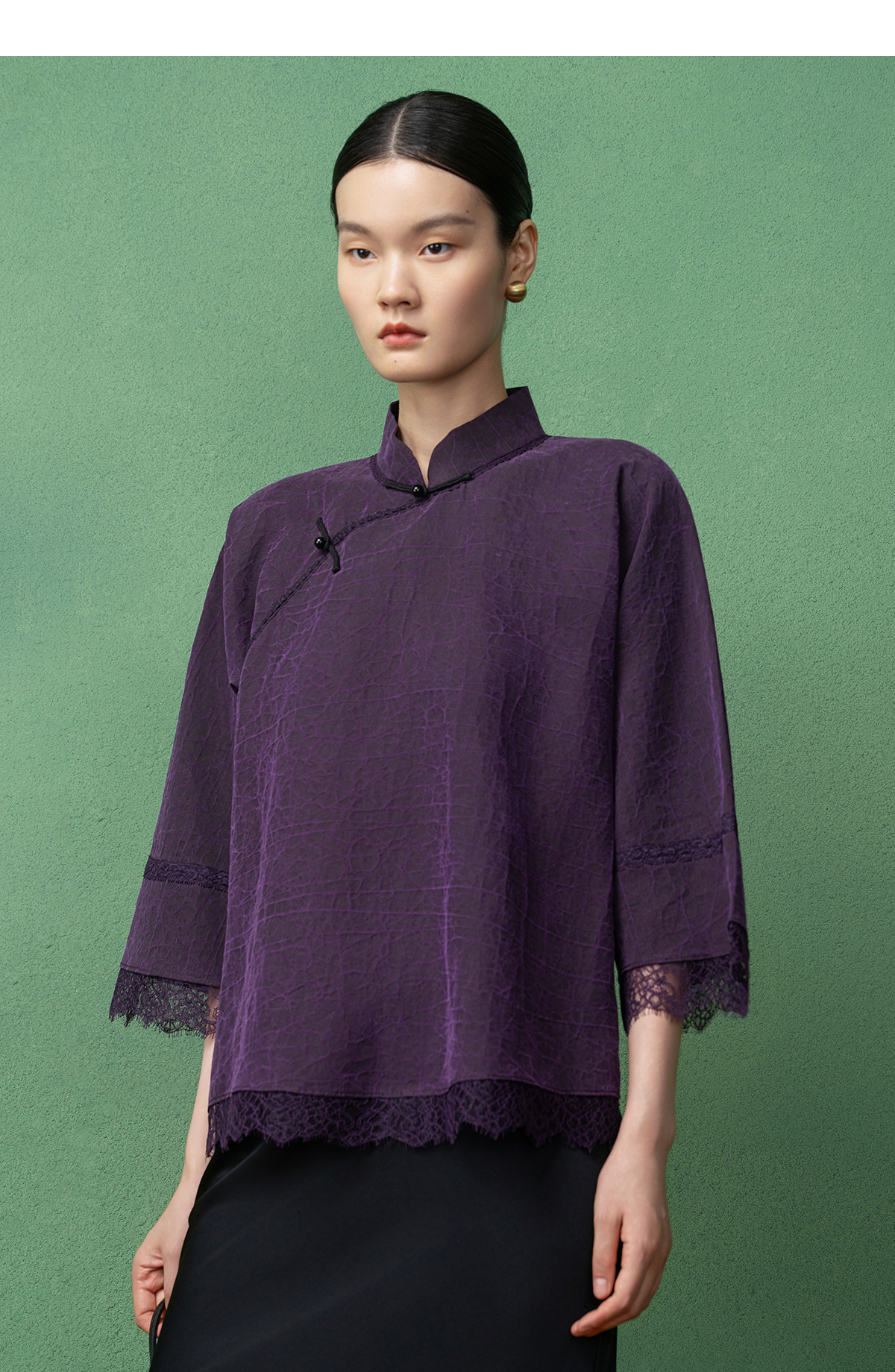 【林栖设计小店】(现货)香云纱衬衣新中式蕾丝2025秋季新款上衣女T1953299