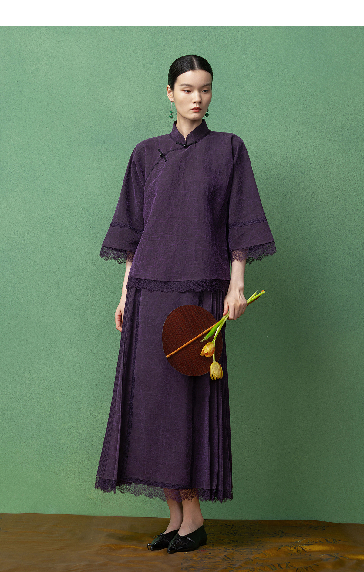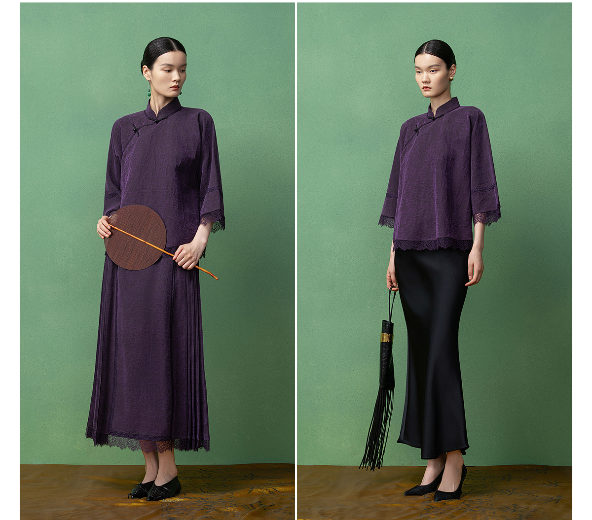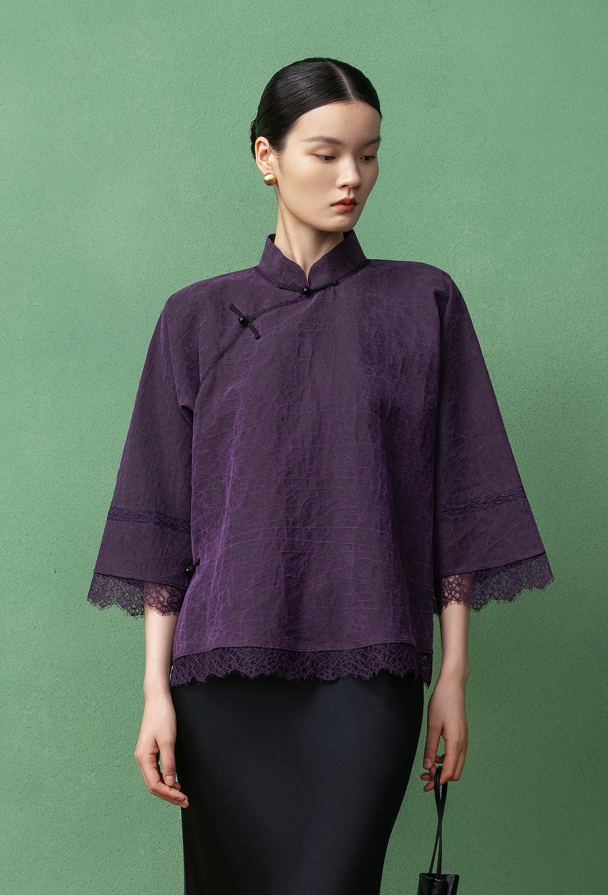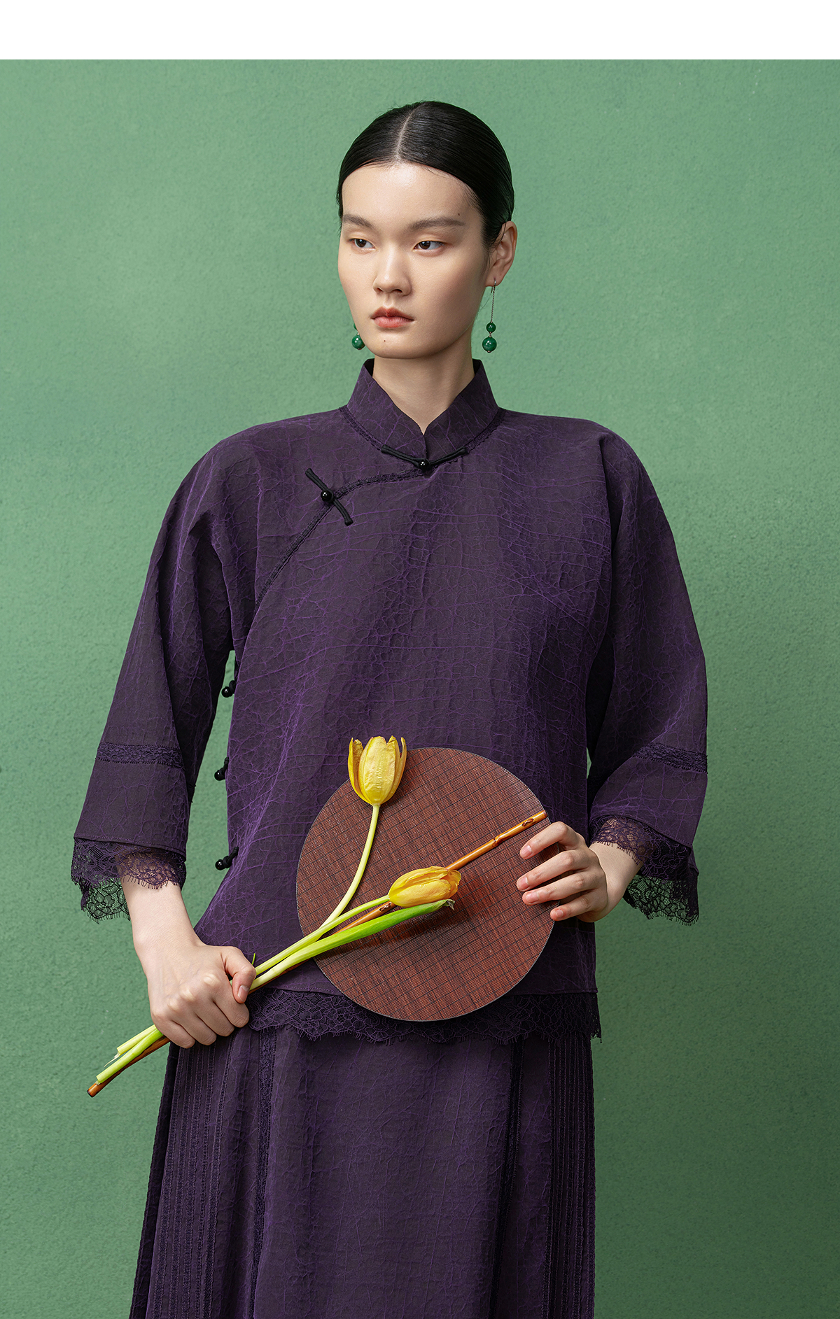 【林栖设计小店】(现货)香云纱衬衣新中式蕾丝2025秋季新款上衣女T1953299