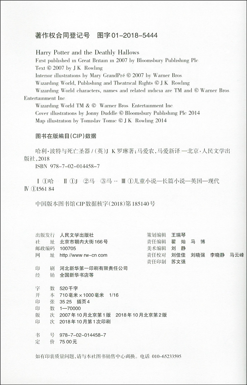 新版哈利波特与死亡圣器人民文学出版社罗琳马爱新七年级下册语文阅读书籍哈利波特与死亡圣器原版7下初中生初一课外阅读书籍