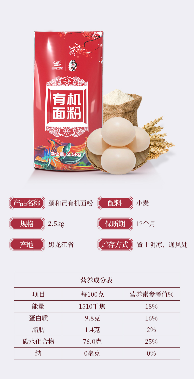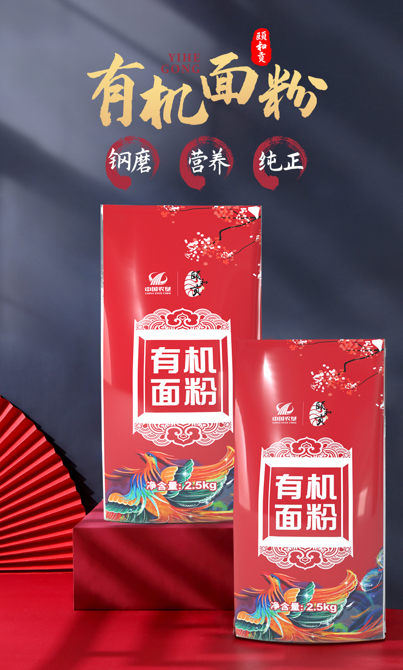 颐和贡有机钢磨面粉2.5kg/袋 中筋实用性强 用途广
