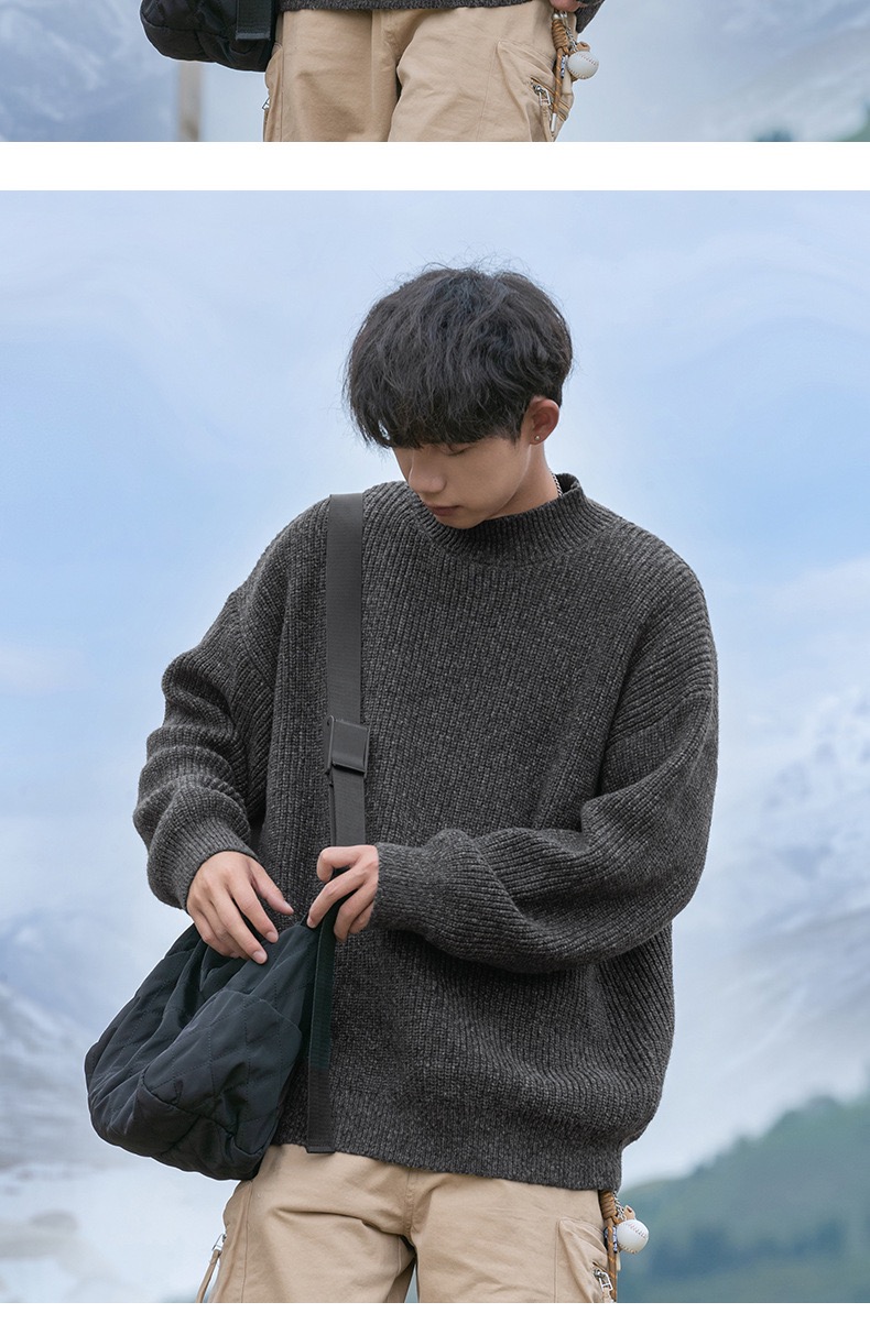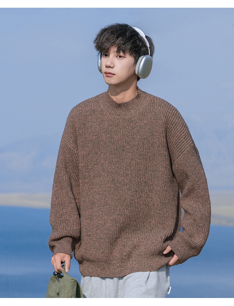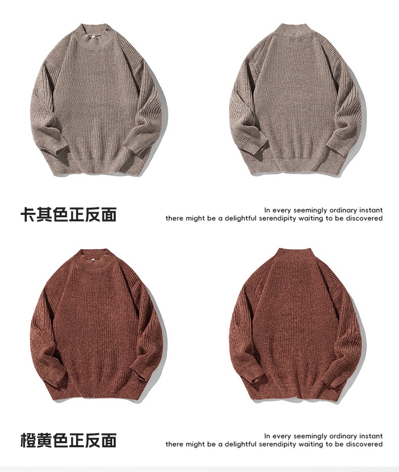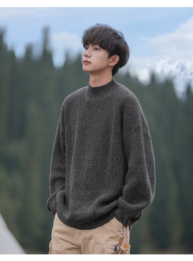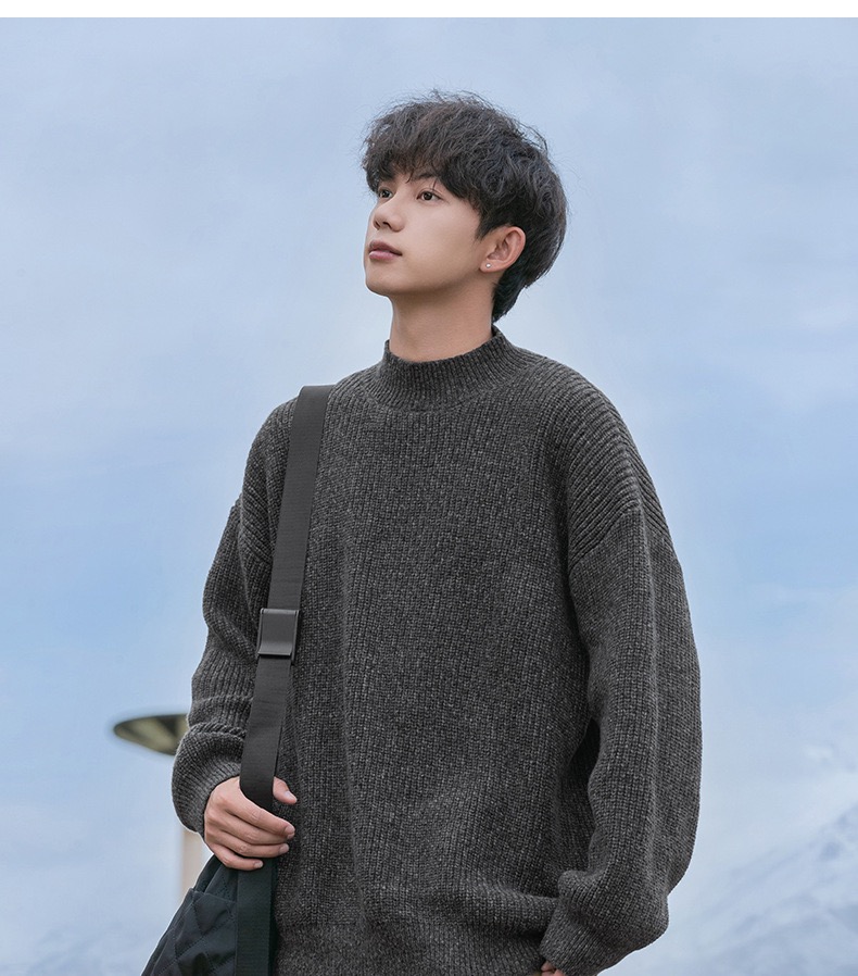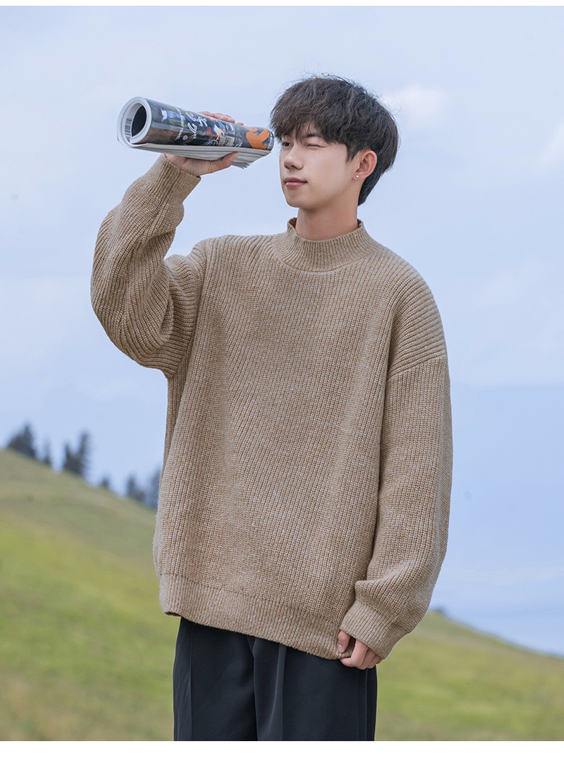 【YW】无忧购韩系慵懒风复古宽松加厚保暖粗针纹理半高圆领针织毛衣L4111(截单后7天发货)25年清仓捡漏
