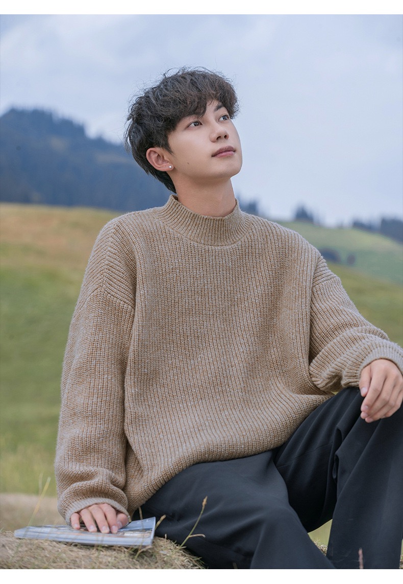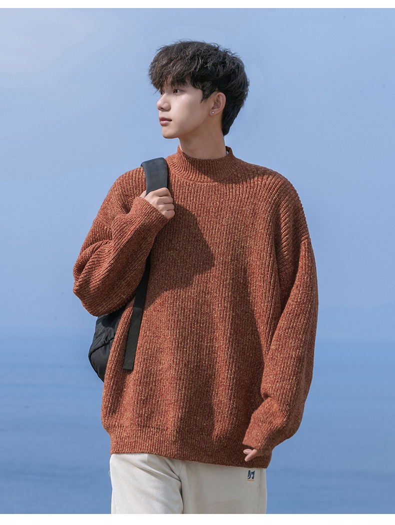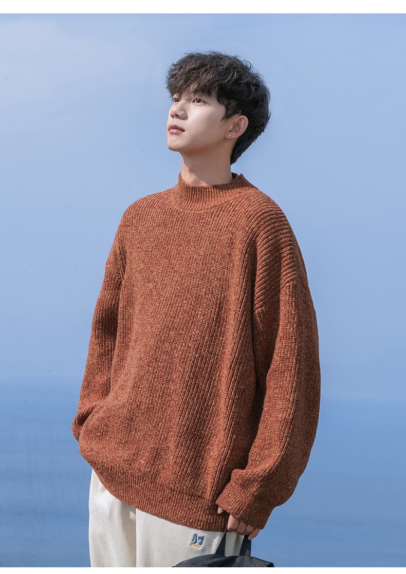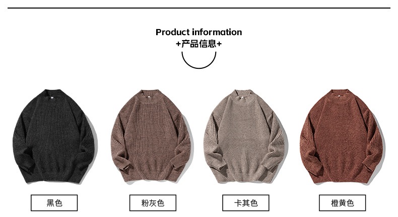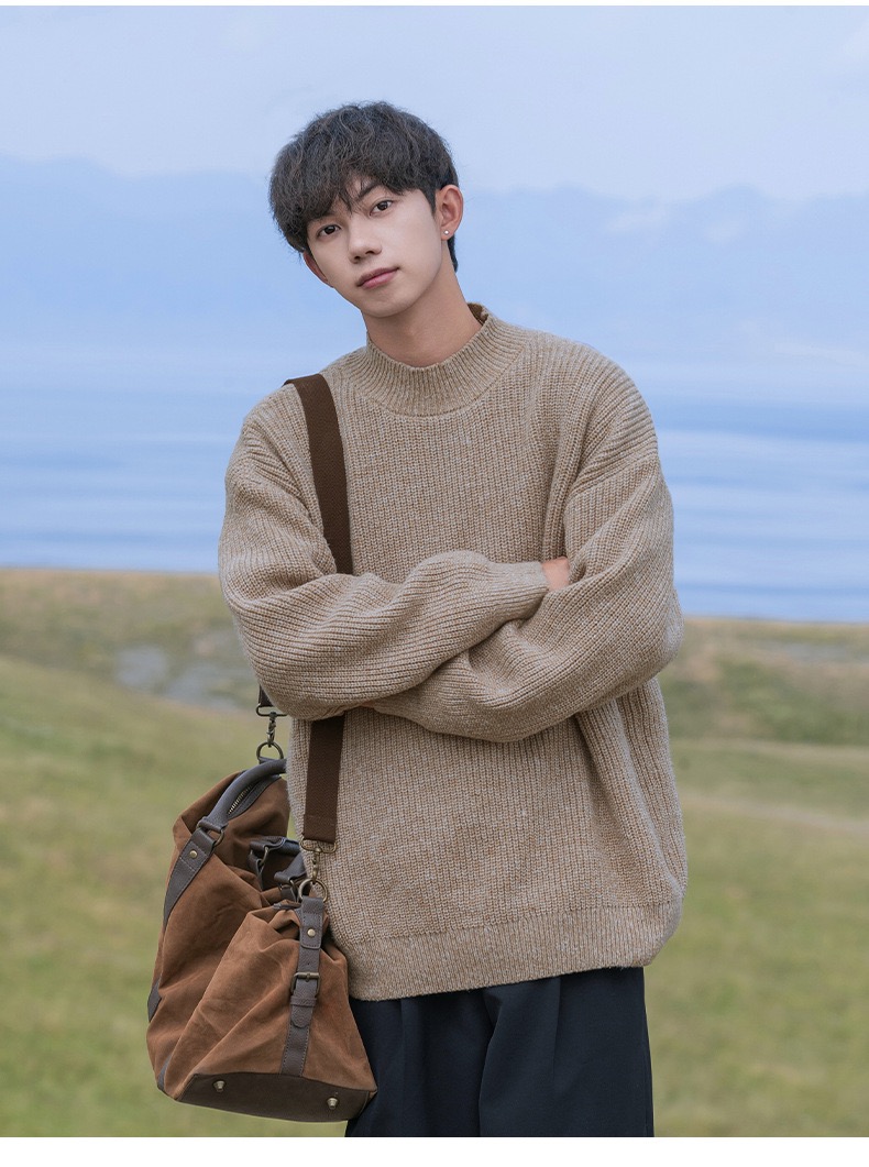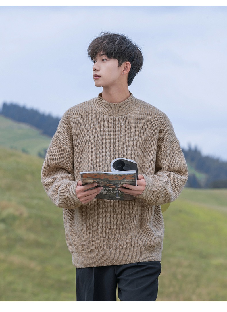 【YW】无忧购韩系慵懒风复古宽松加厚保暖粗针纹理半高圆领针织毛衣L4111(截单后7天发货)25年清仓捡漏