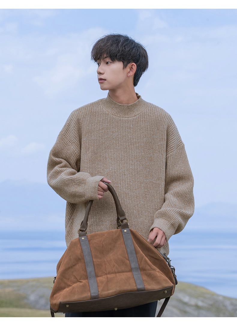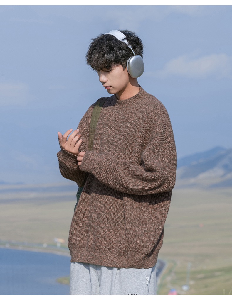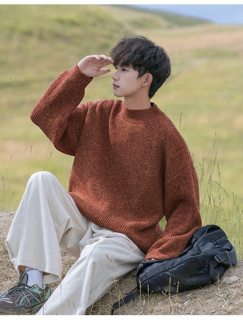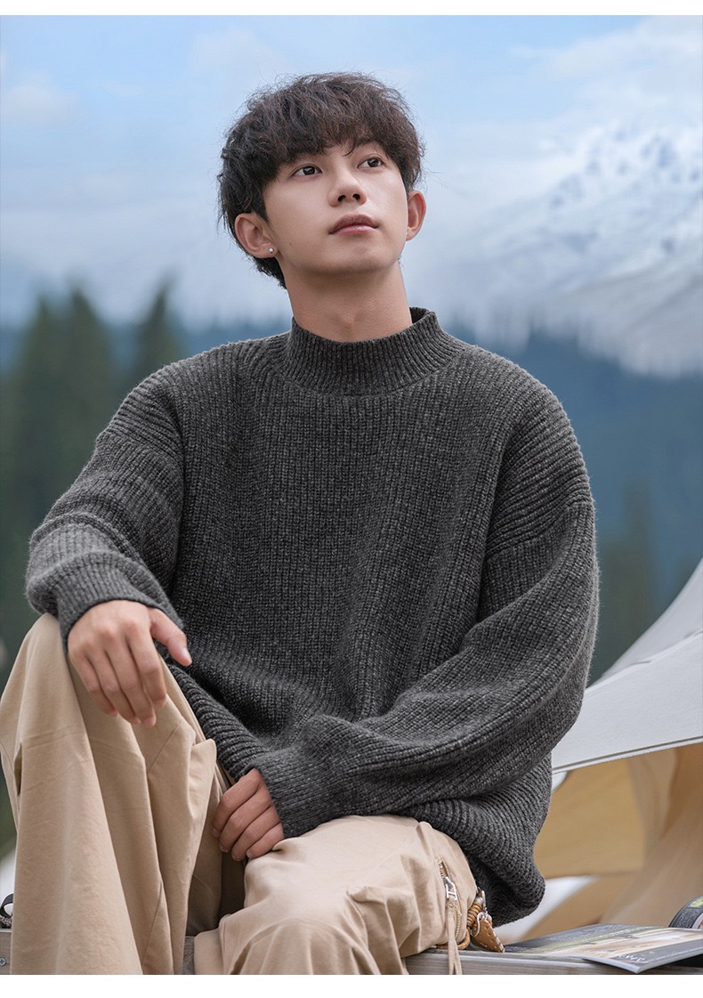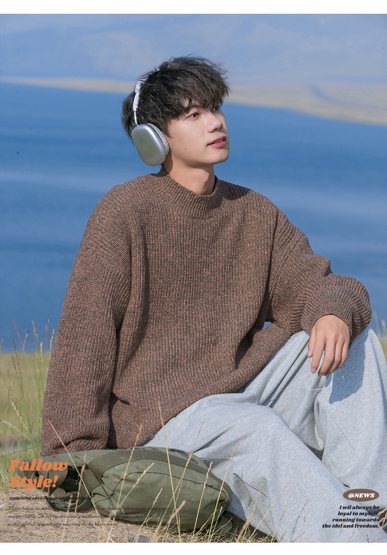 【YW】无忧购韩系慵懒风复古宽松加厚保暖粗针纹理半高圆领针织毛衣L4111(截单后7天发货)25年清仓捡漏