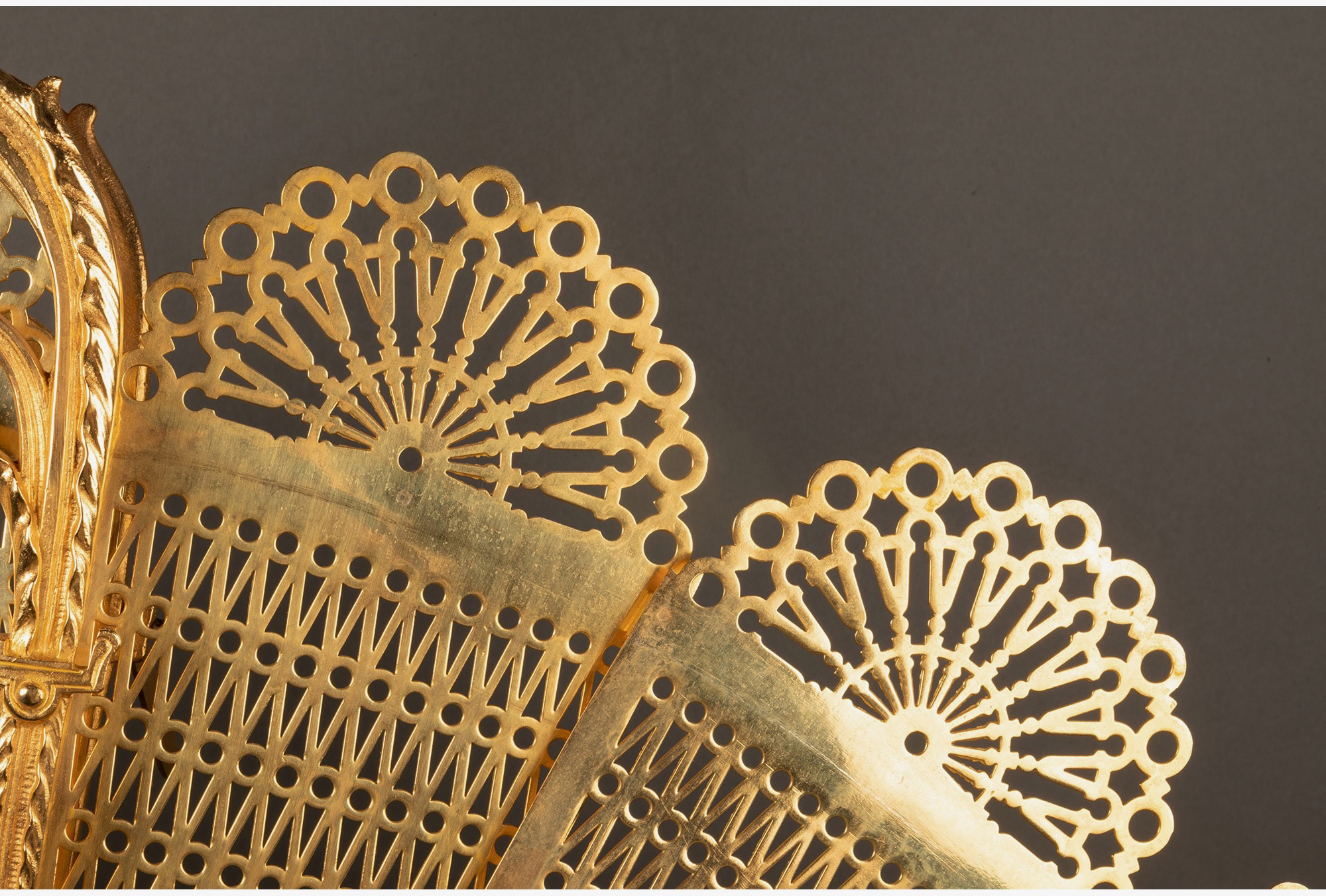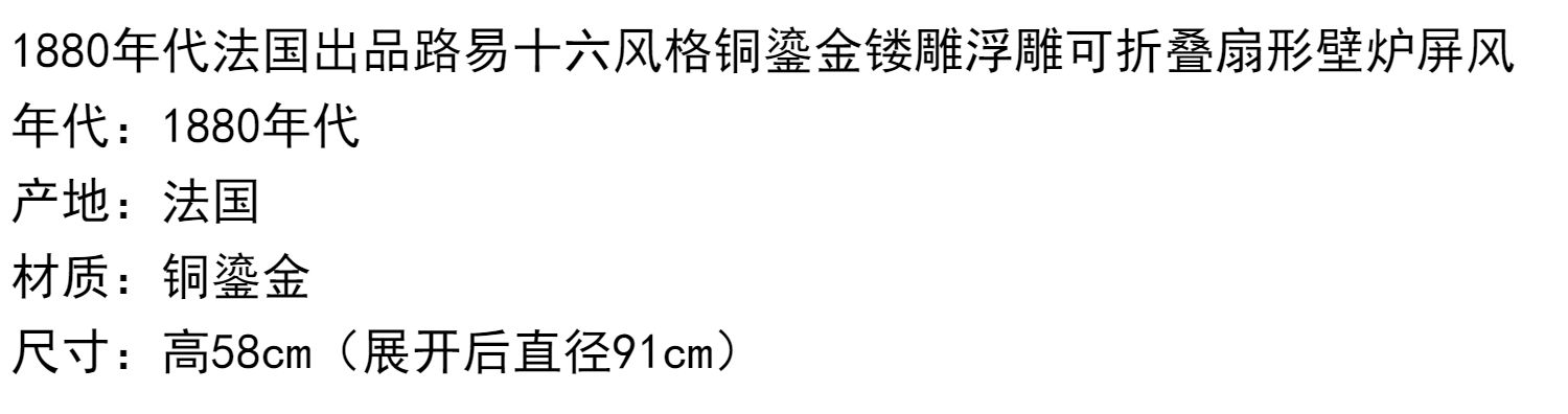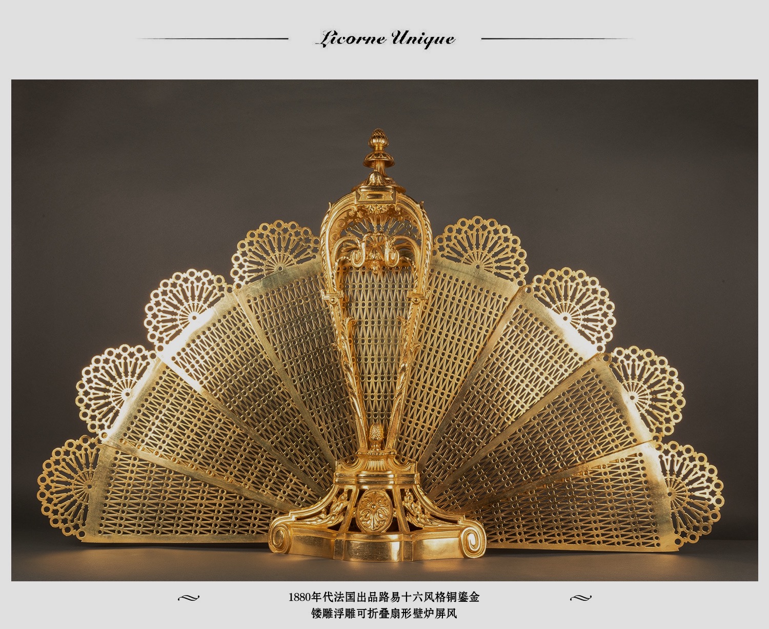独角鹿西洋古董法国路易十六风铜鎏金镂雕浮雕可折叠扇形壁炉屏风