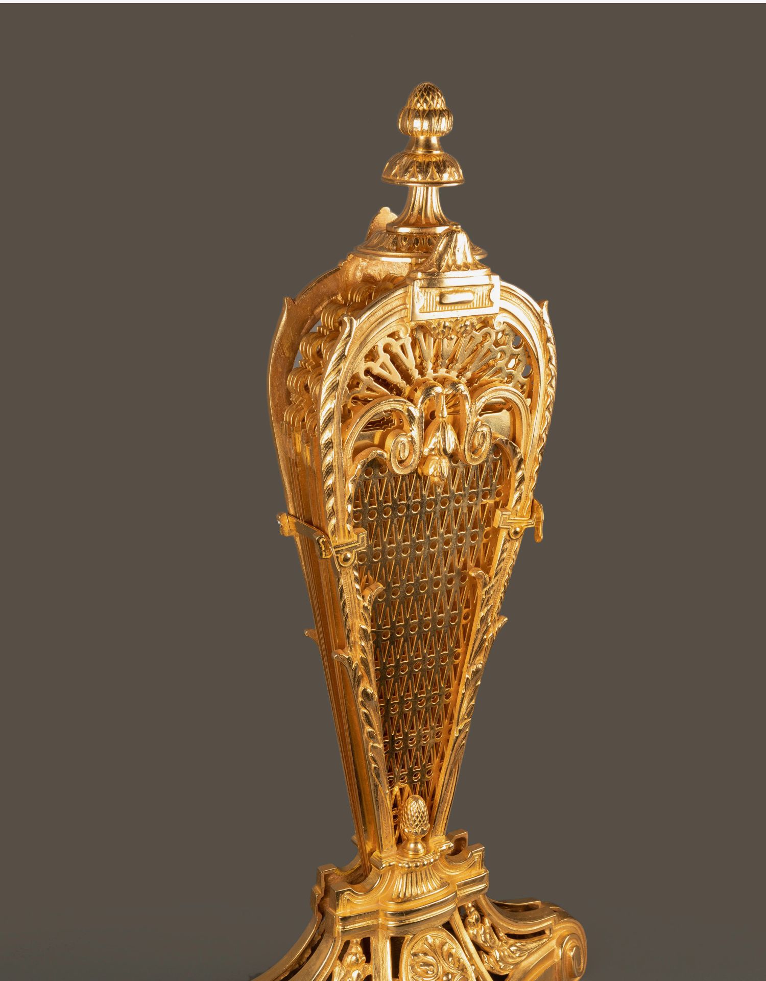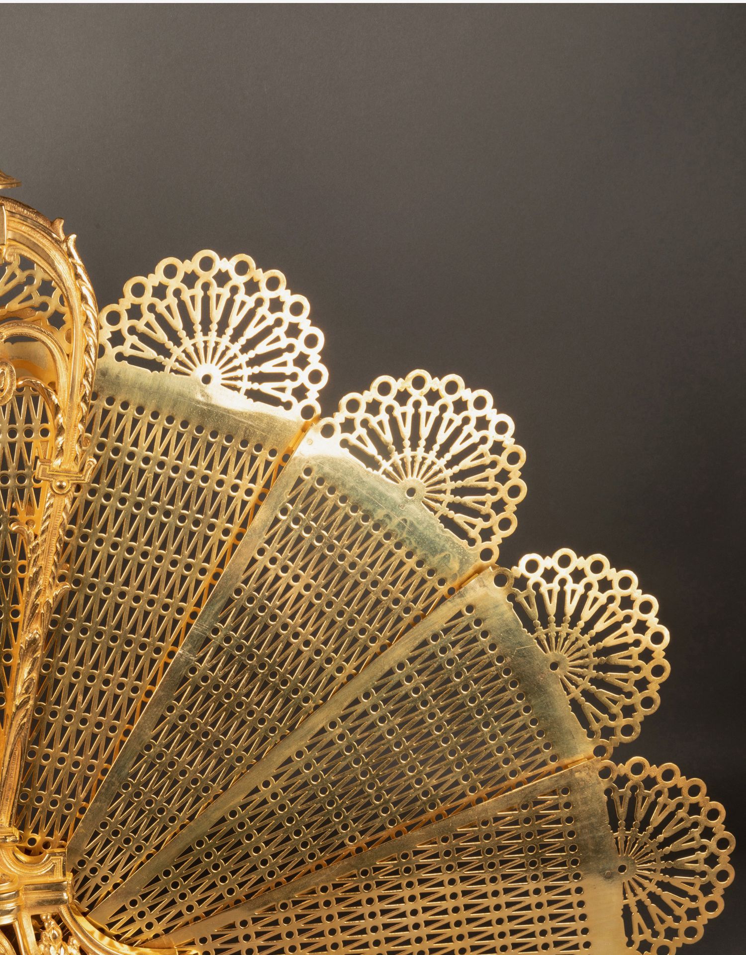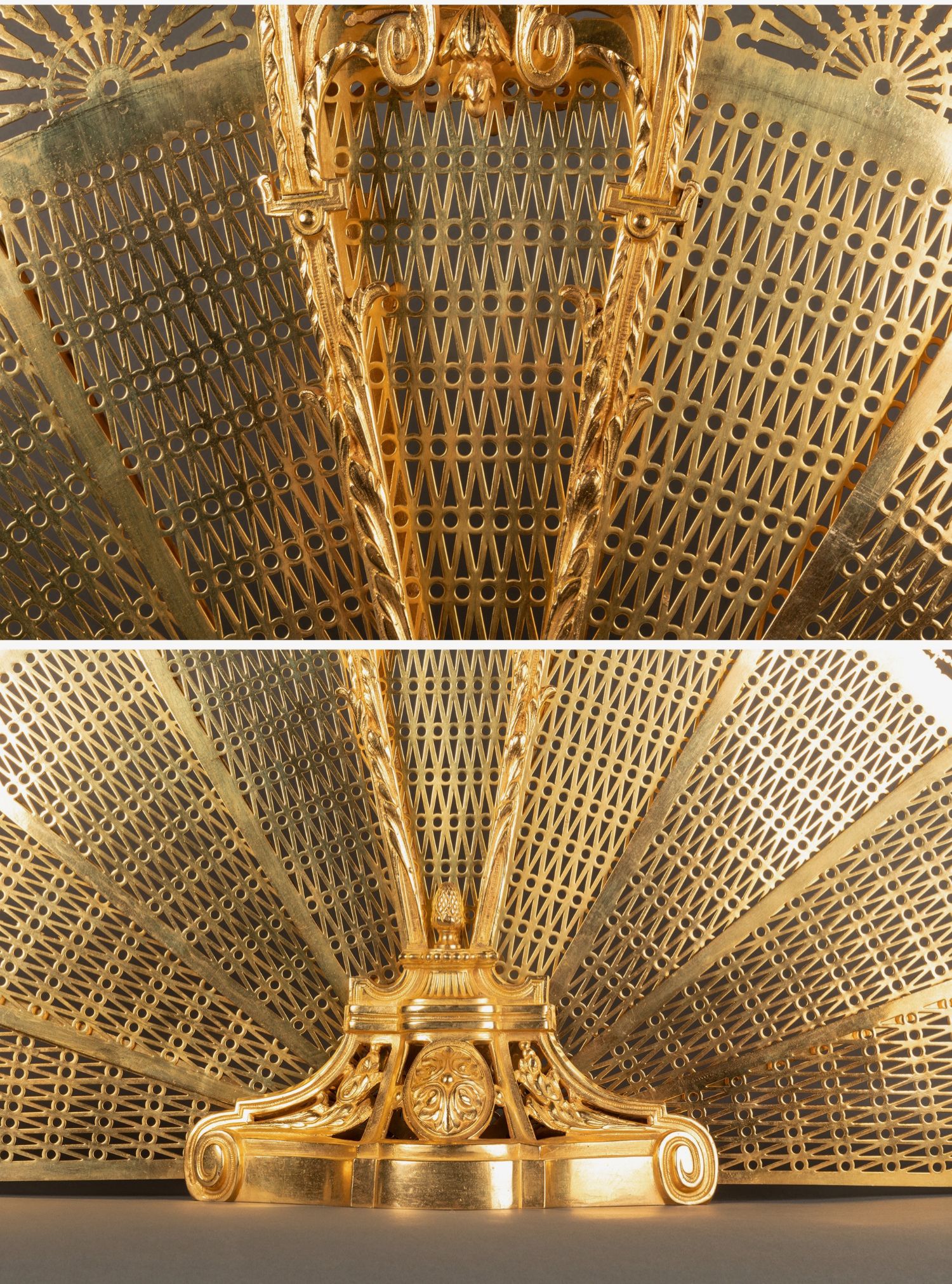 独角鹿西洋古董法国路易十六风铜鎏金镂雕浮雕可折叠扇形壁炉屏风