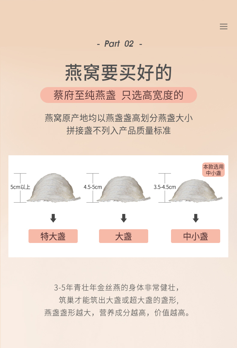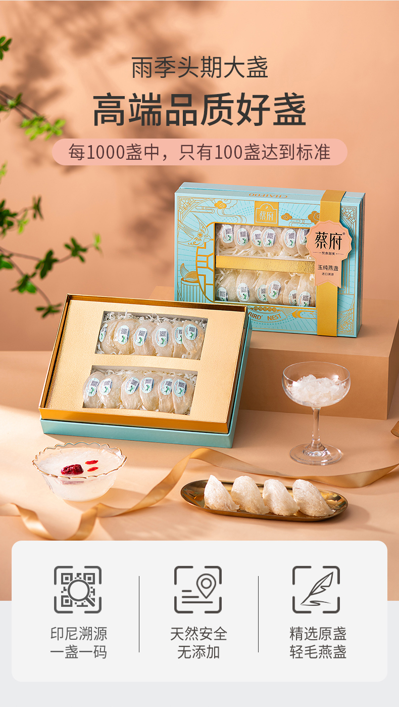 蔡府印尼溯源进口燕窝贡燕盏50g孕妇滋补100g干燕窝礼盒唾液酸>12 D