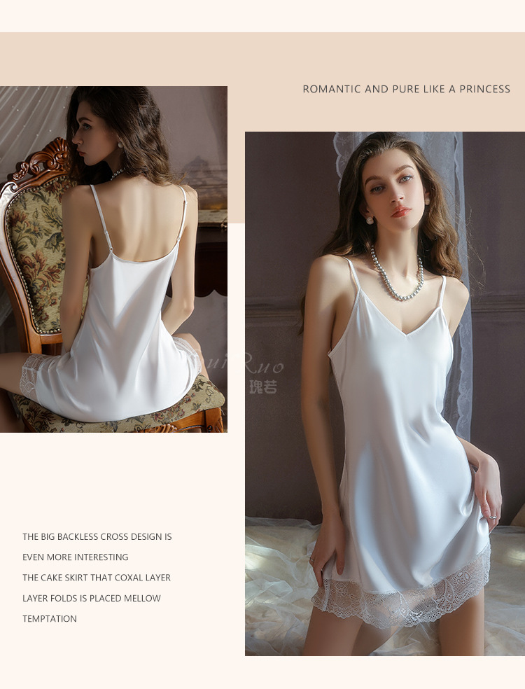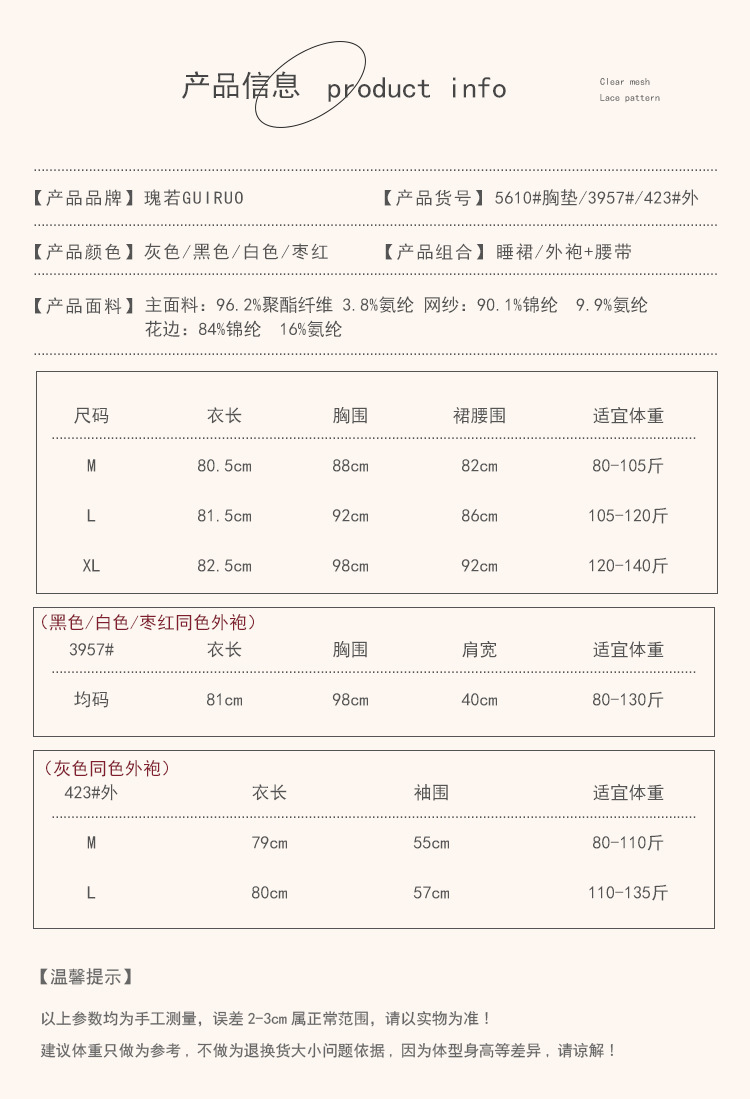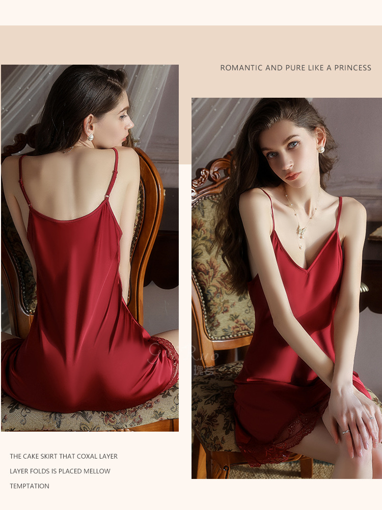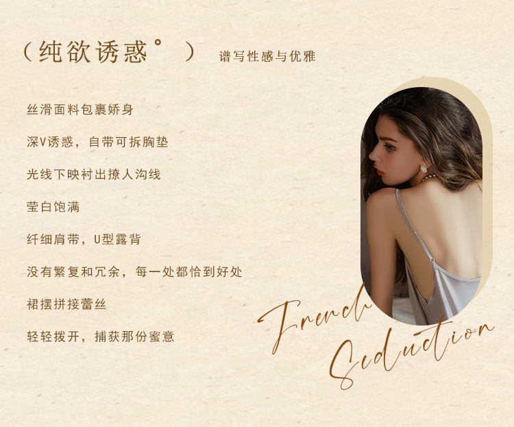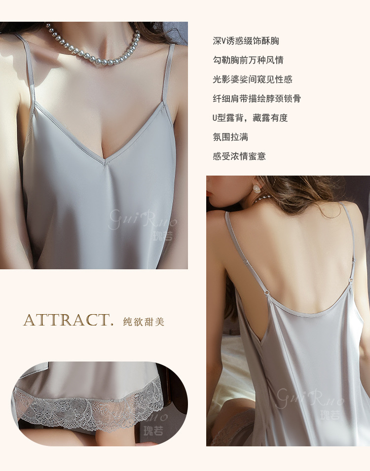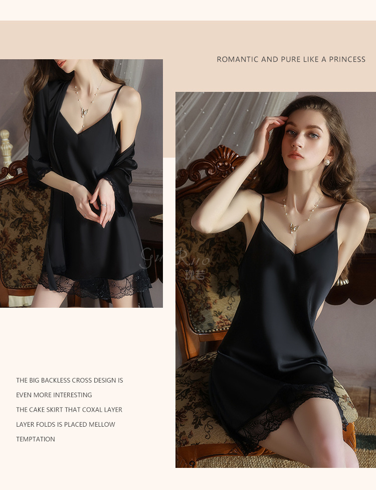 【YW】无忧购深V聚拢加胸垫纯欲顺滑缎面睡裙舒适外袍套装5610(截单后3-5天发货)