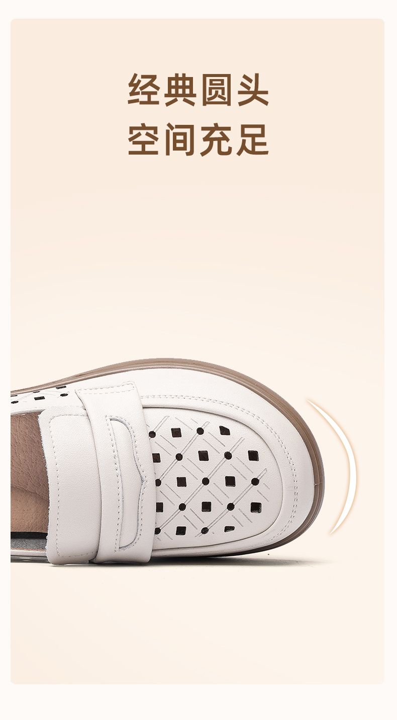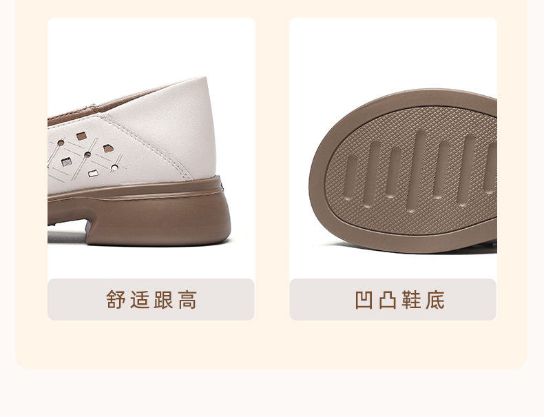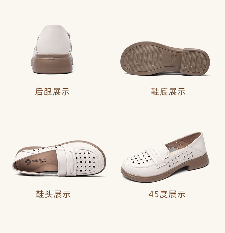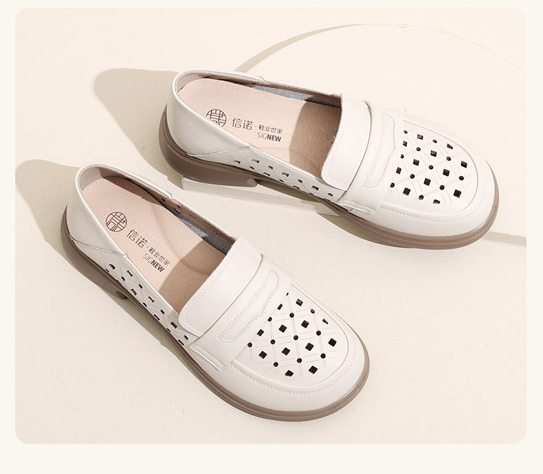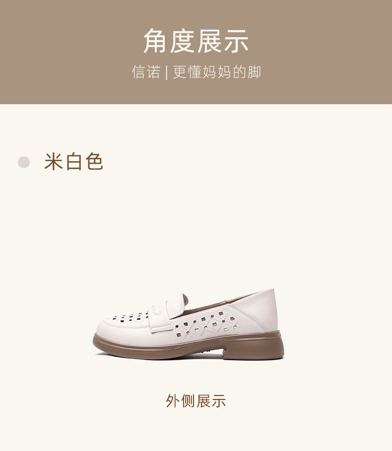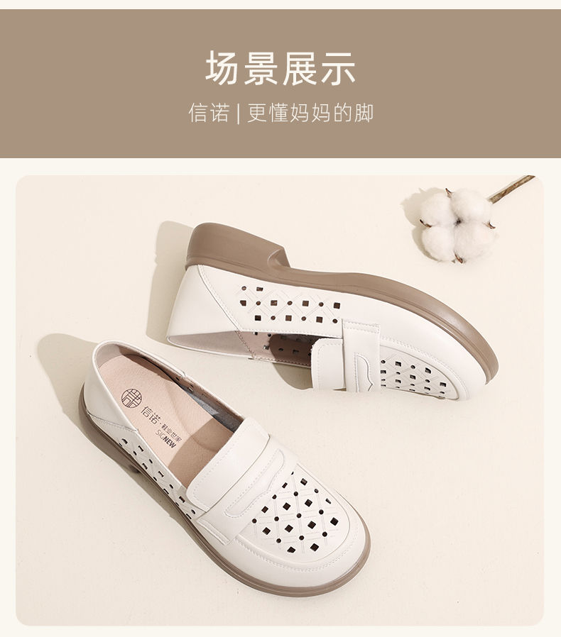 信诺 真皮舒适女鞋 2024新款夏季镂空透气妈妈鞋一脚蹬单鞋乐福鞋24C8681-07T