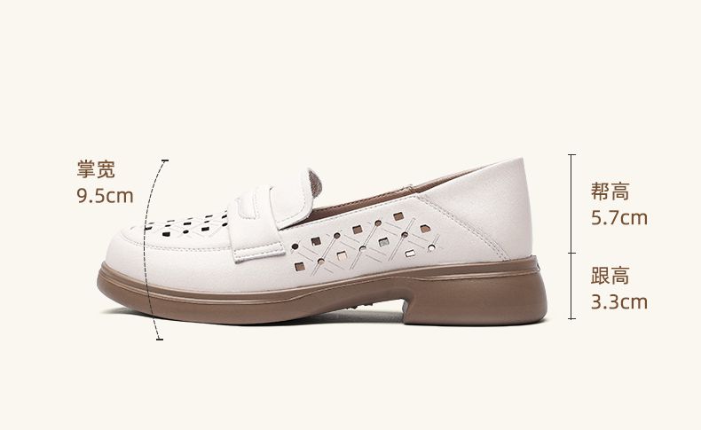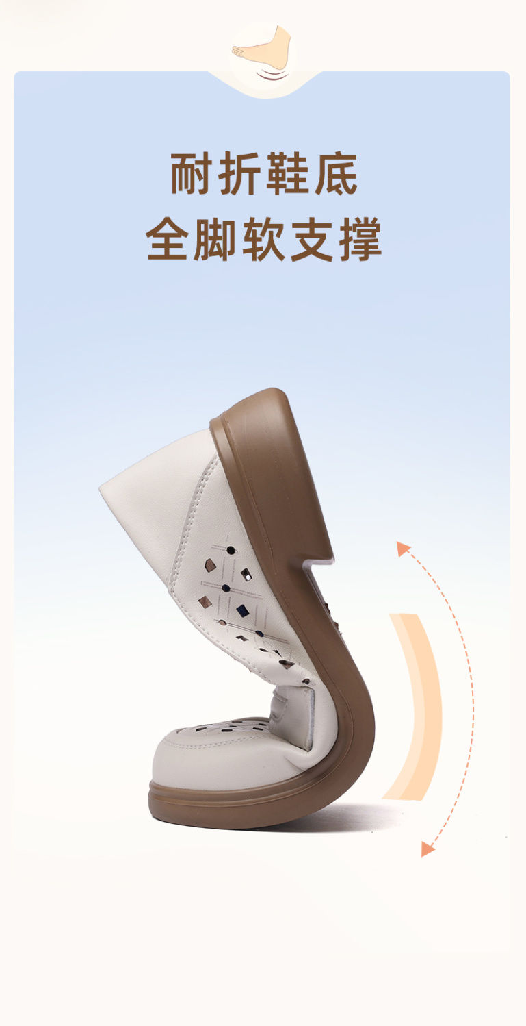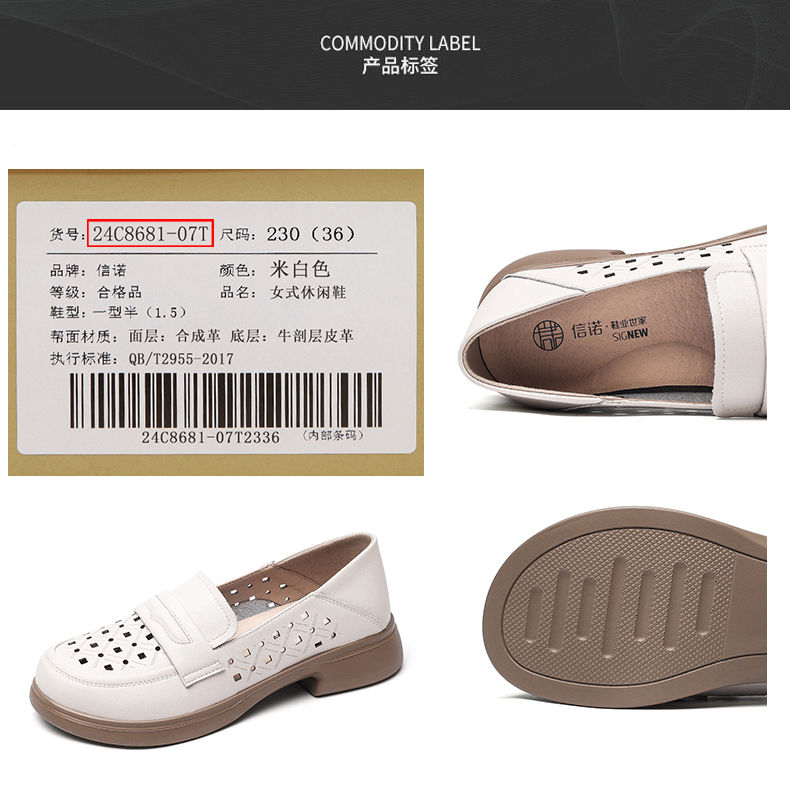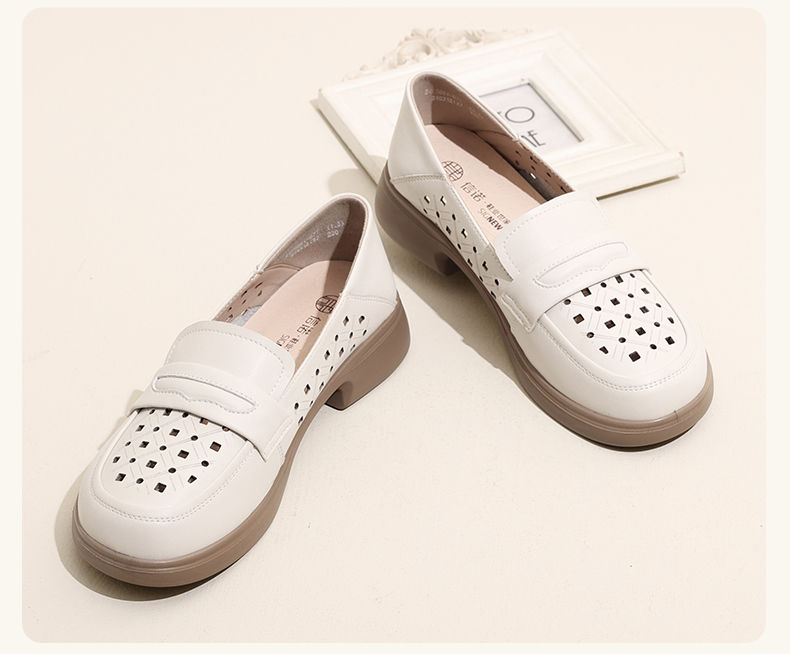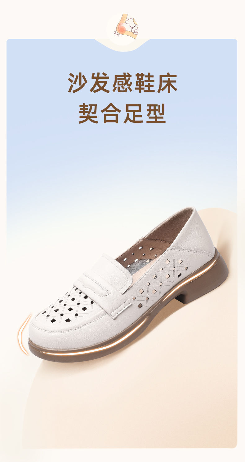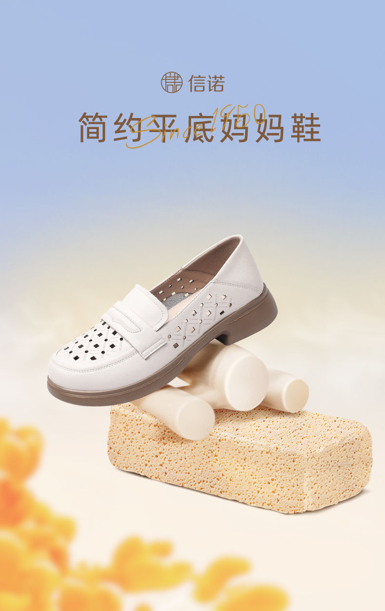 信诺 真皮舒适女鞋 2024新款夏季镂空透气妈妈鞋一脚蹬单鞋乐福鞋24C8681-07T