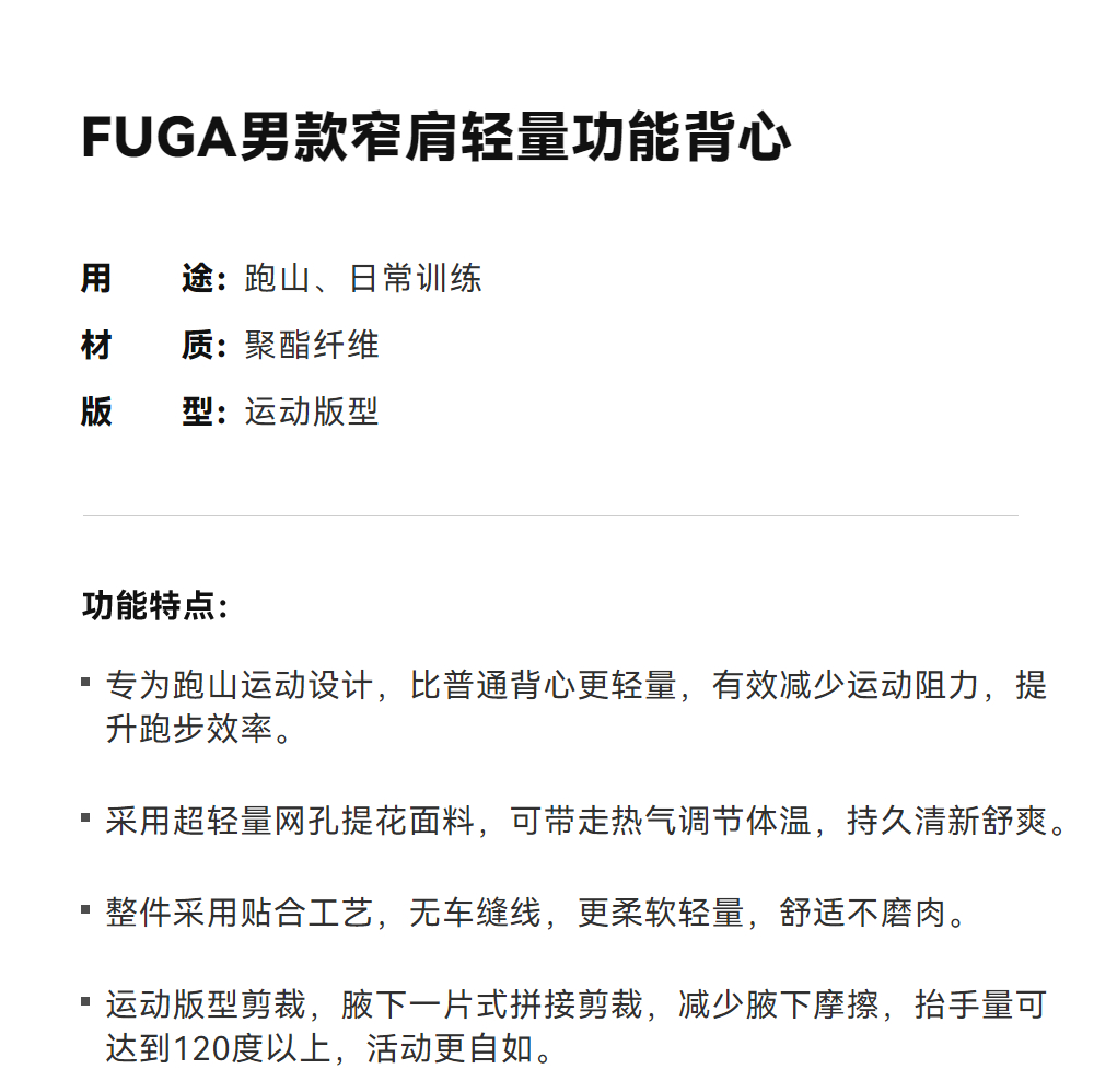 KAILAS凯乐石 FUGA男款窄肩轻量功能背心 KG2517115【Z】