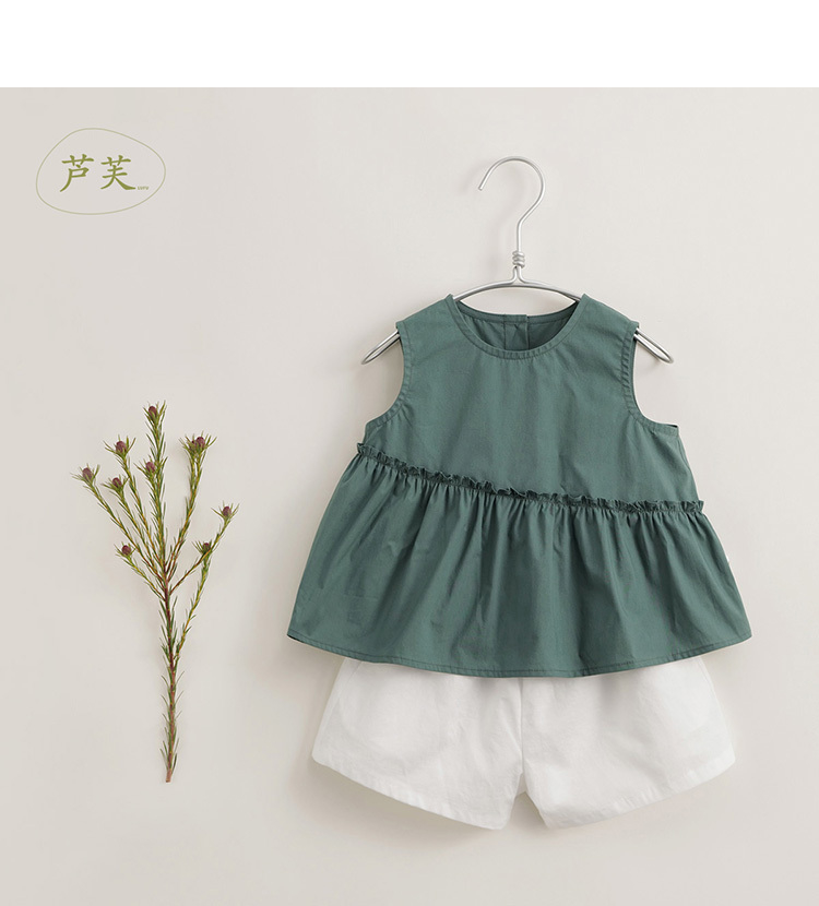 【马克珍妮 芦芙】新款夏装 女童透气荷叶边短袖套装230525