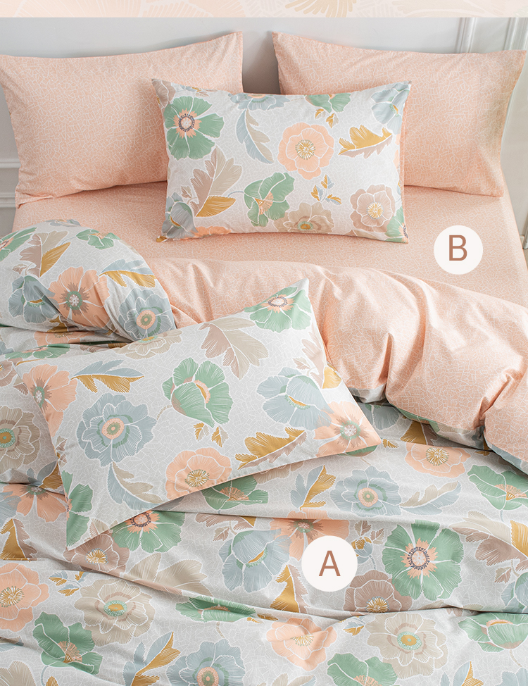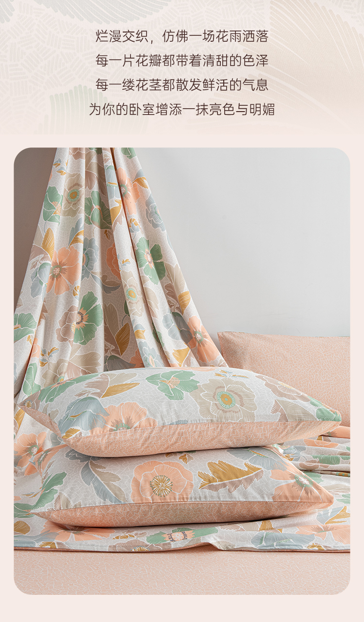 2026年春夏新款雅芳婷100%全棉四件套全棉床笠款双面印花被套套件