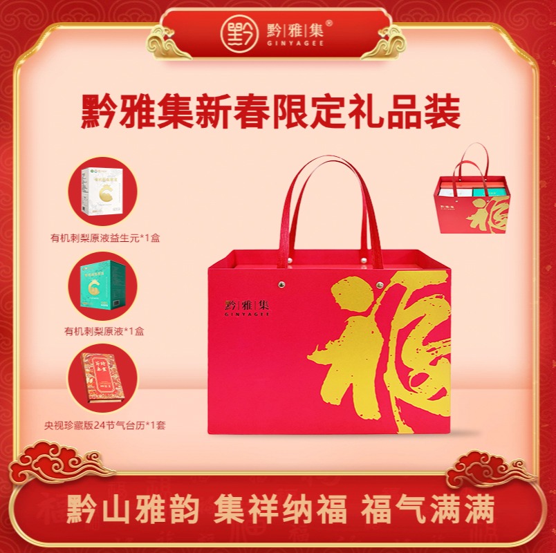 黔雅集新春限定刺梨礼品(有机刺梨原液便携装1盒+有机刺梨原液(益生元)1盒+央视珍藏版24节气日历1本