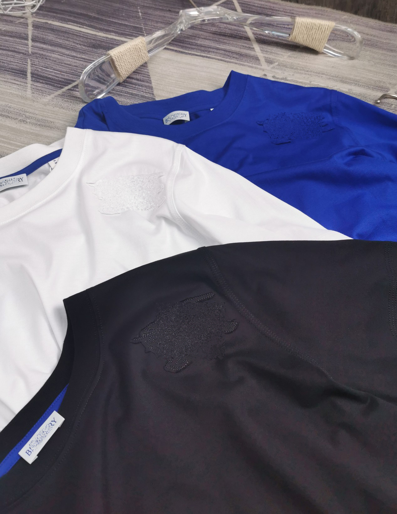 战马 2024夏新款 马术骑士贴布绣花小标 圆领短袖T恤 Z-11632