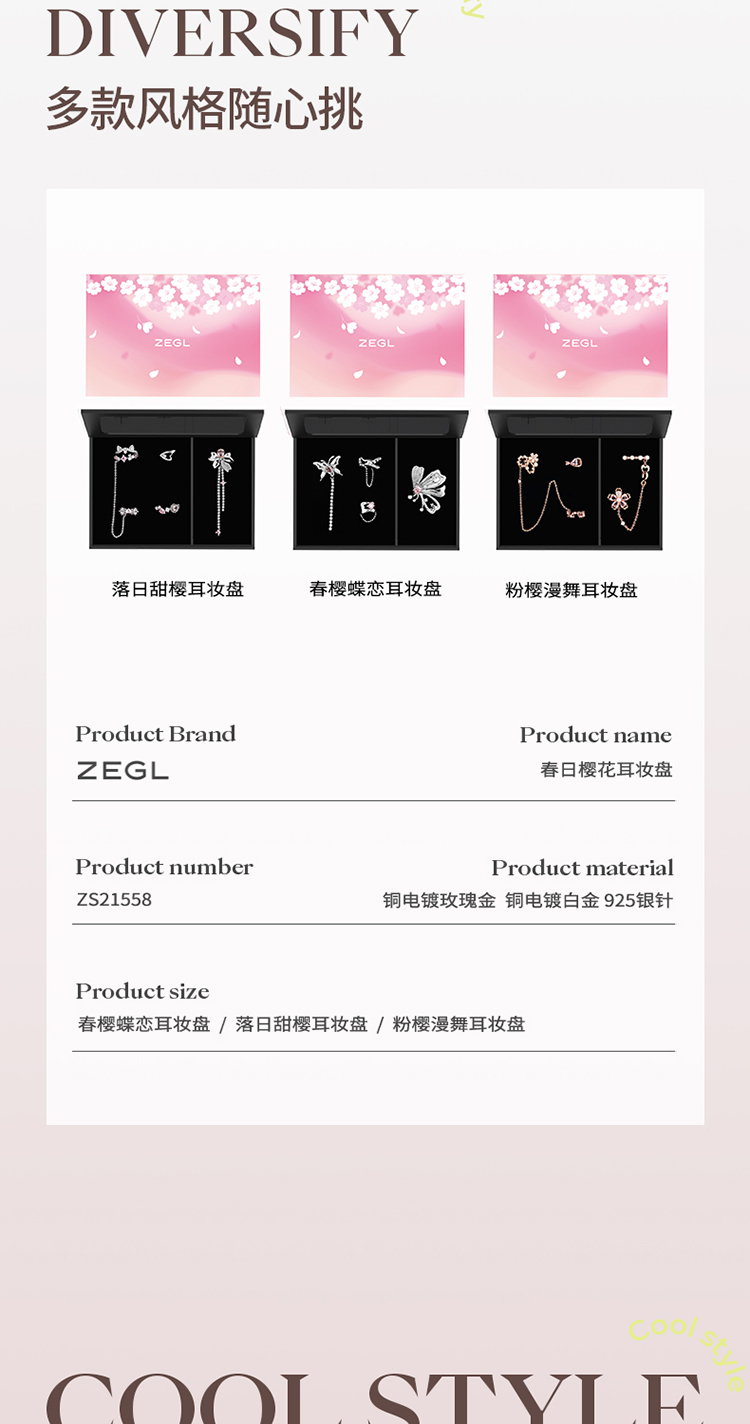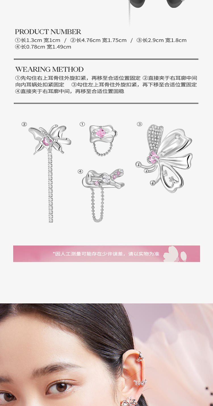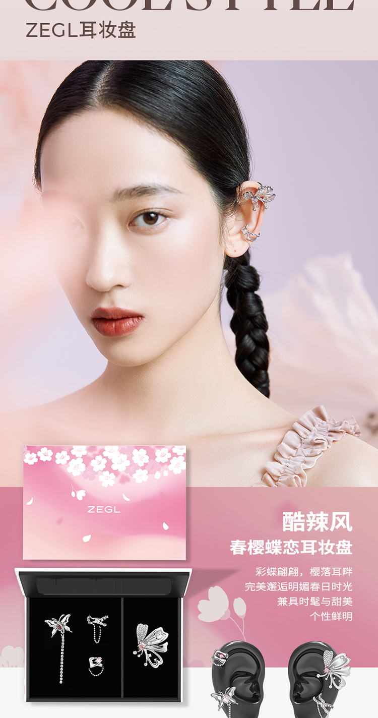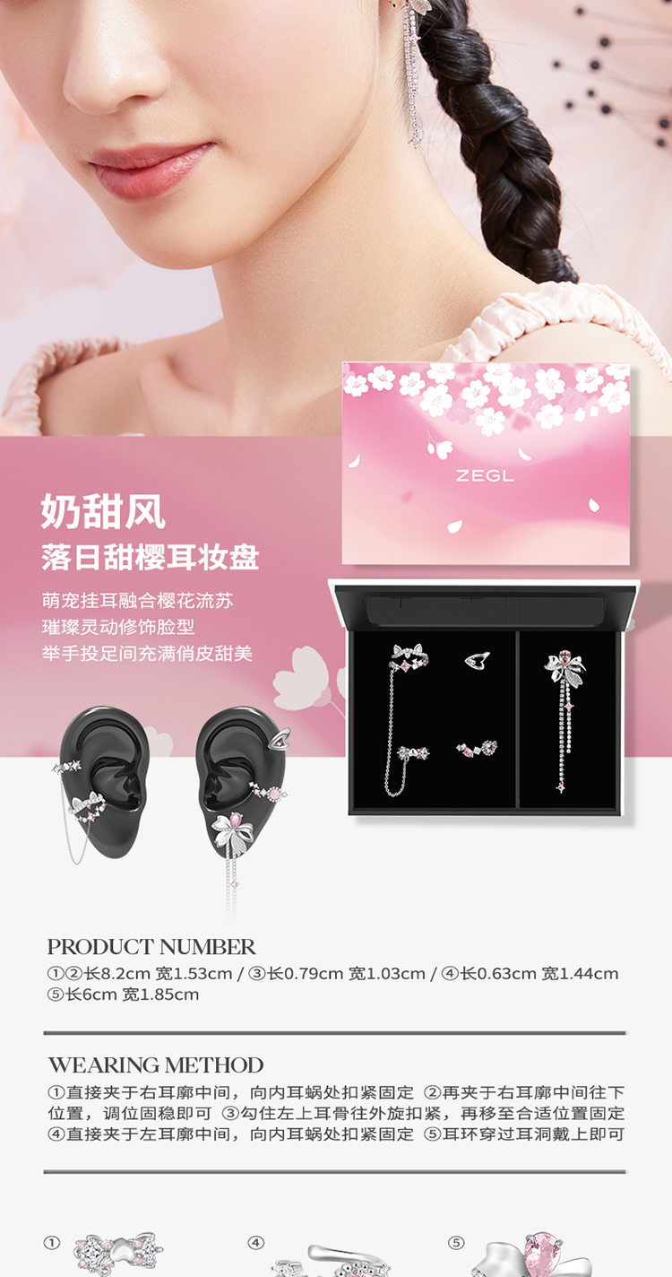 ZEGL设计师春日樱花耳妆盘耳夹无耳洞可爱日系少女耳骨夹耳环耳饰