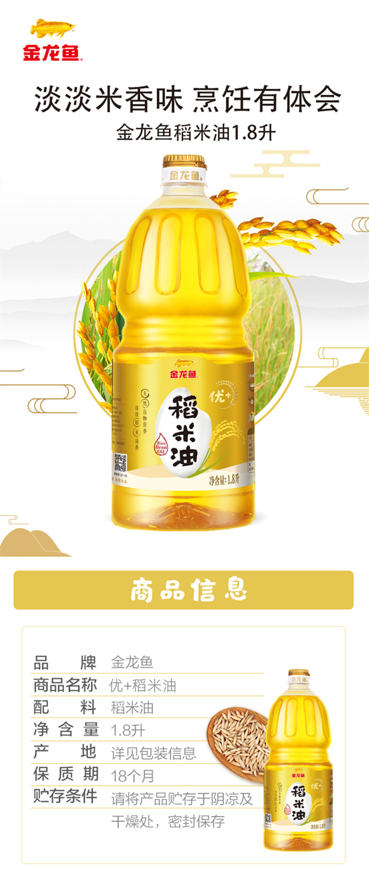 金龙鱼优+稻米油 1.8L
