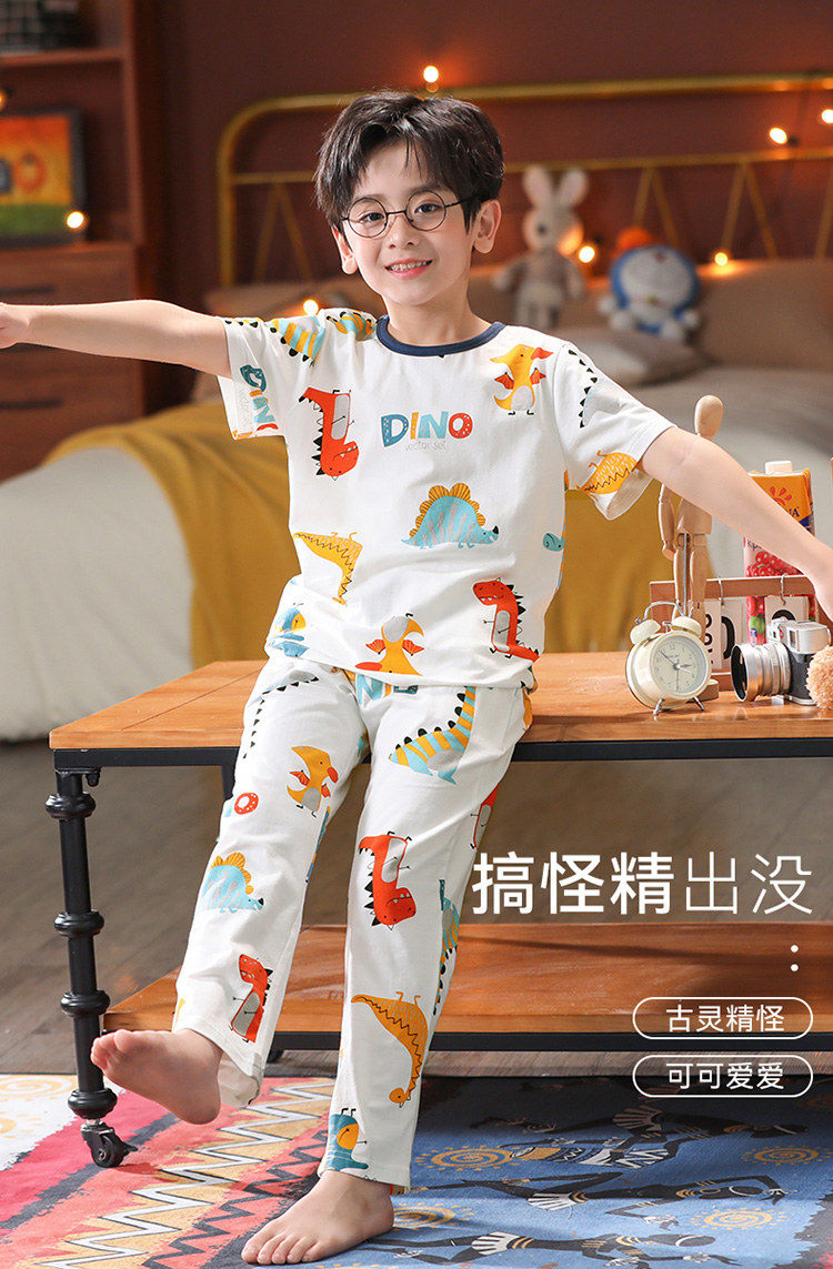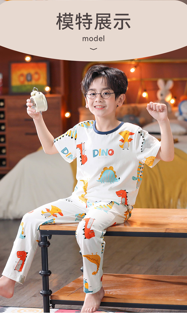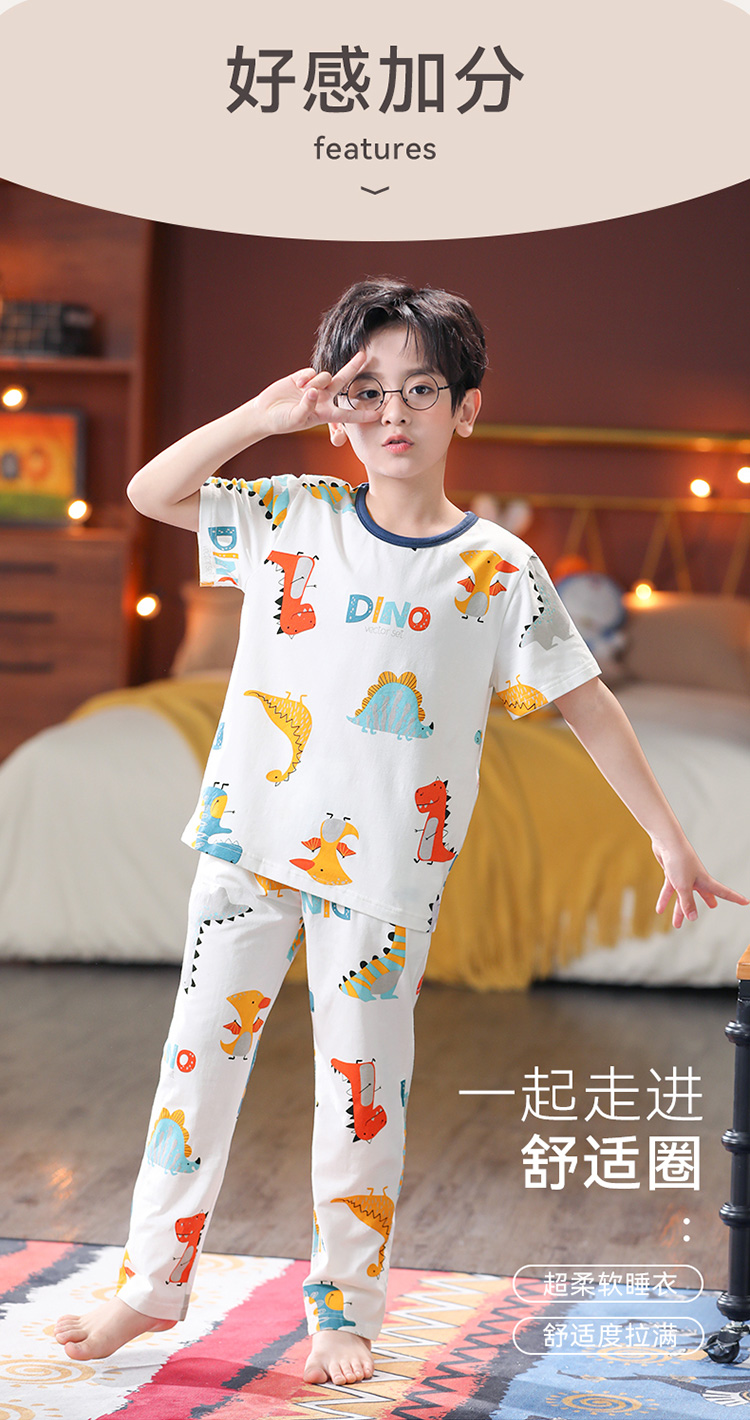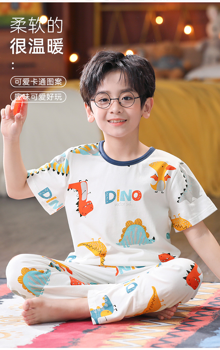 芬腾夏季男童睡衣短袖短裤宝宝纯棉薄款卡通儿童小男孩家居服套装