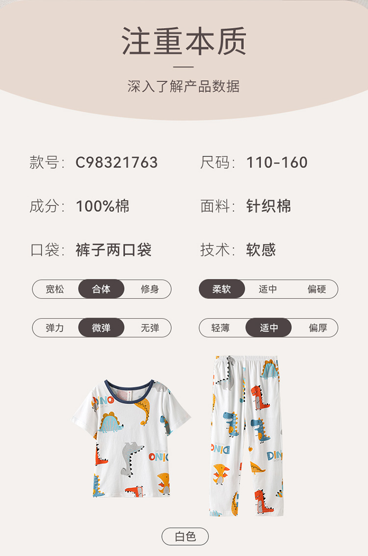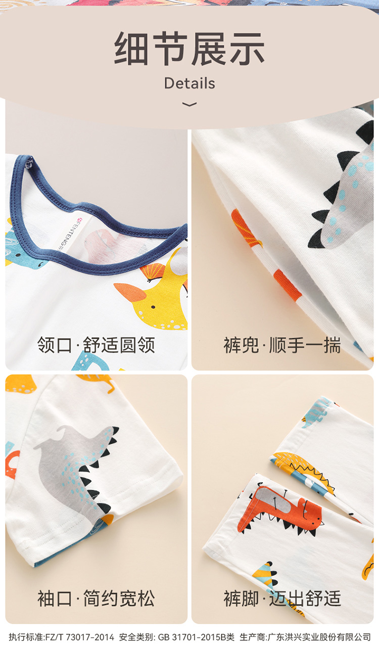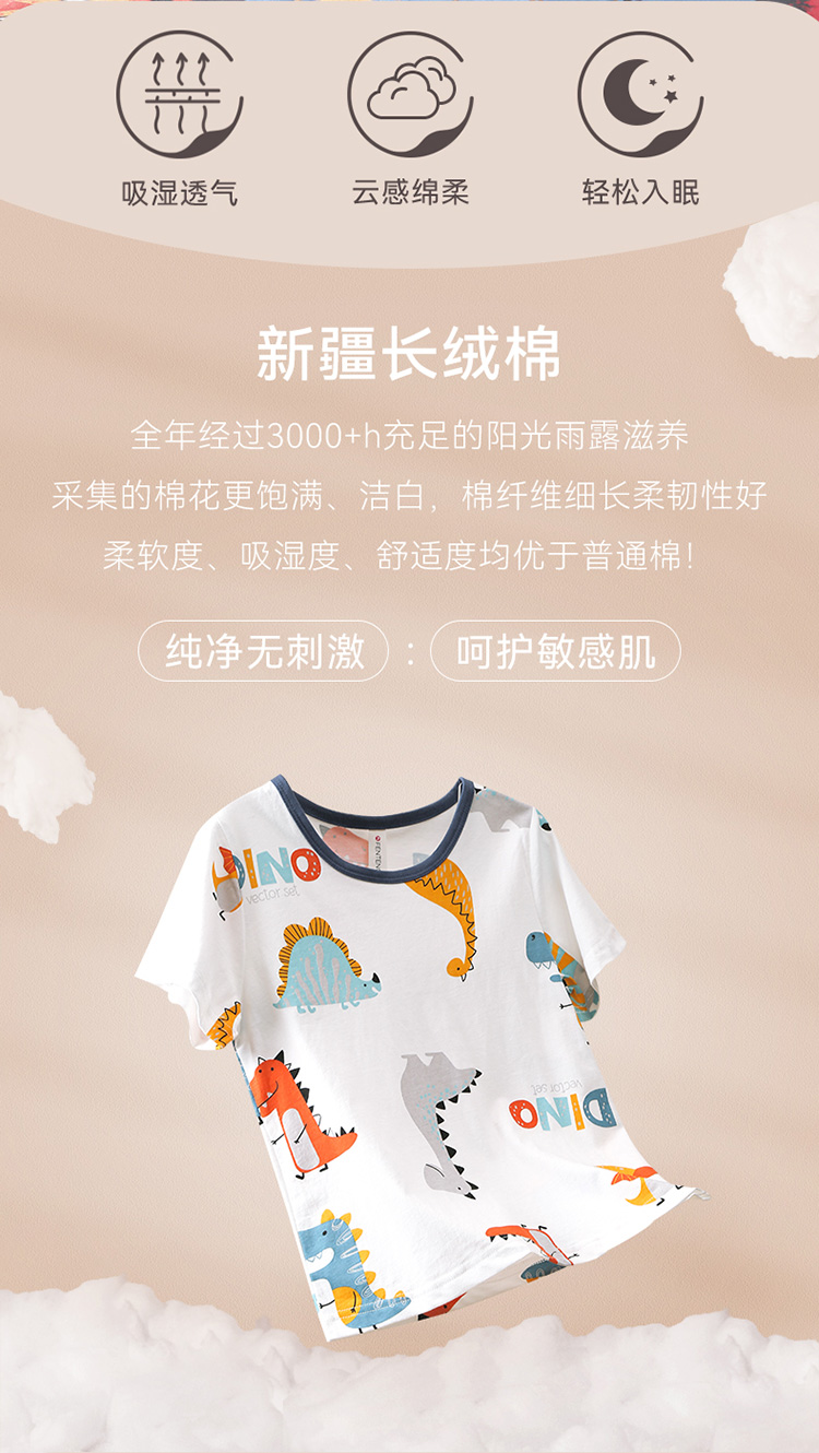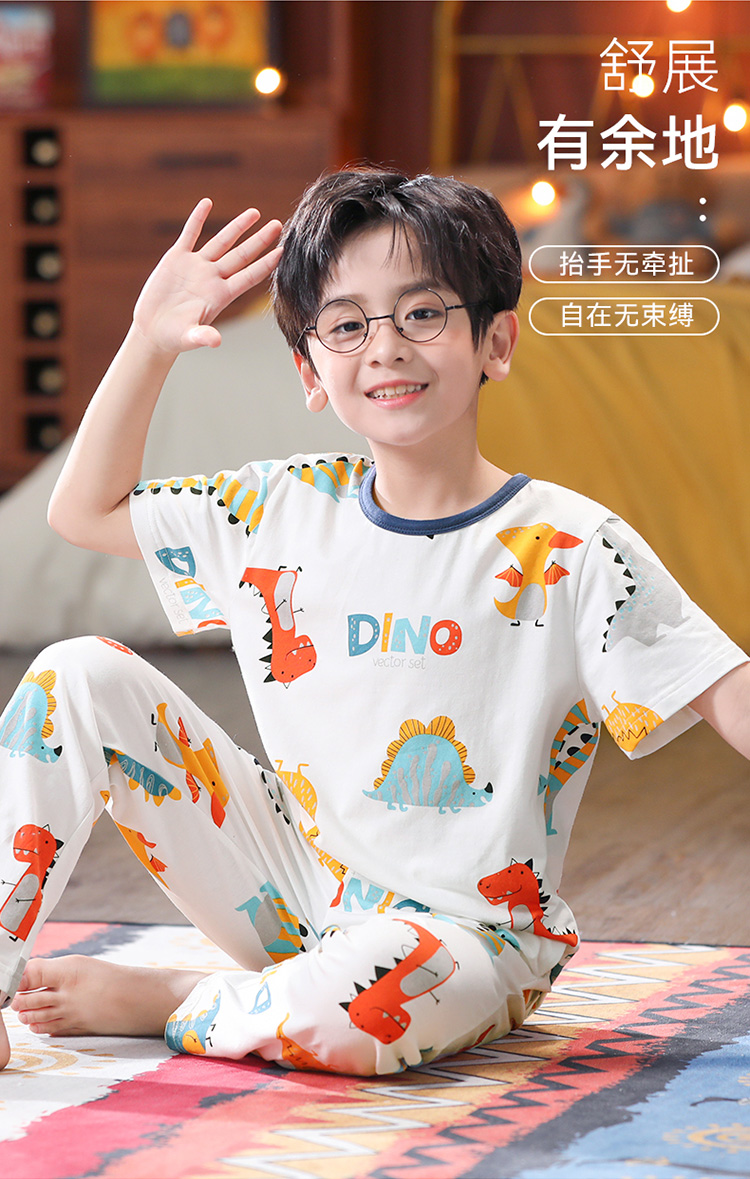 芬腾夏季男童睡衣短袖短裤宝宝纯棉薄款卡通儿童小男孩家居服套装