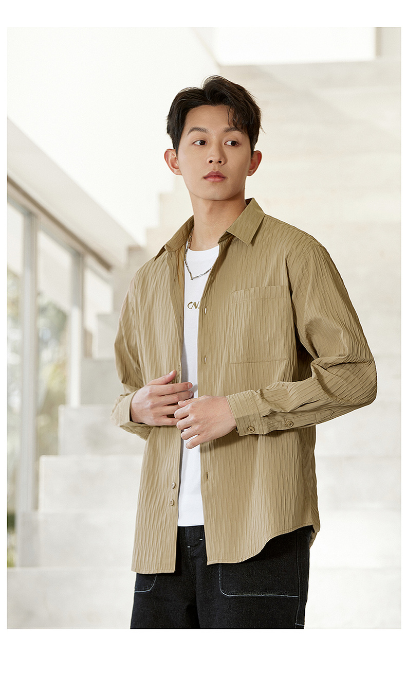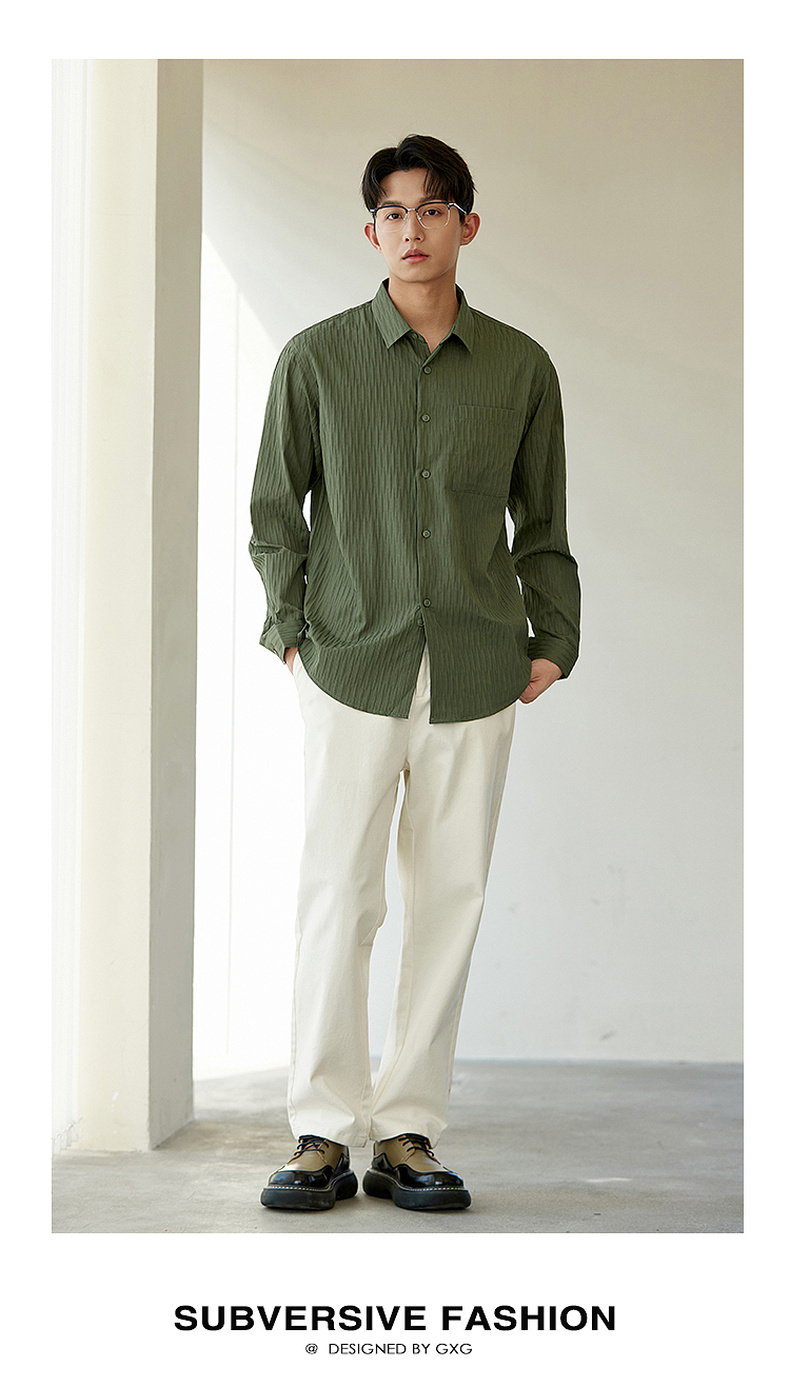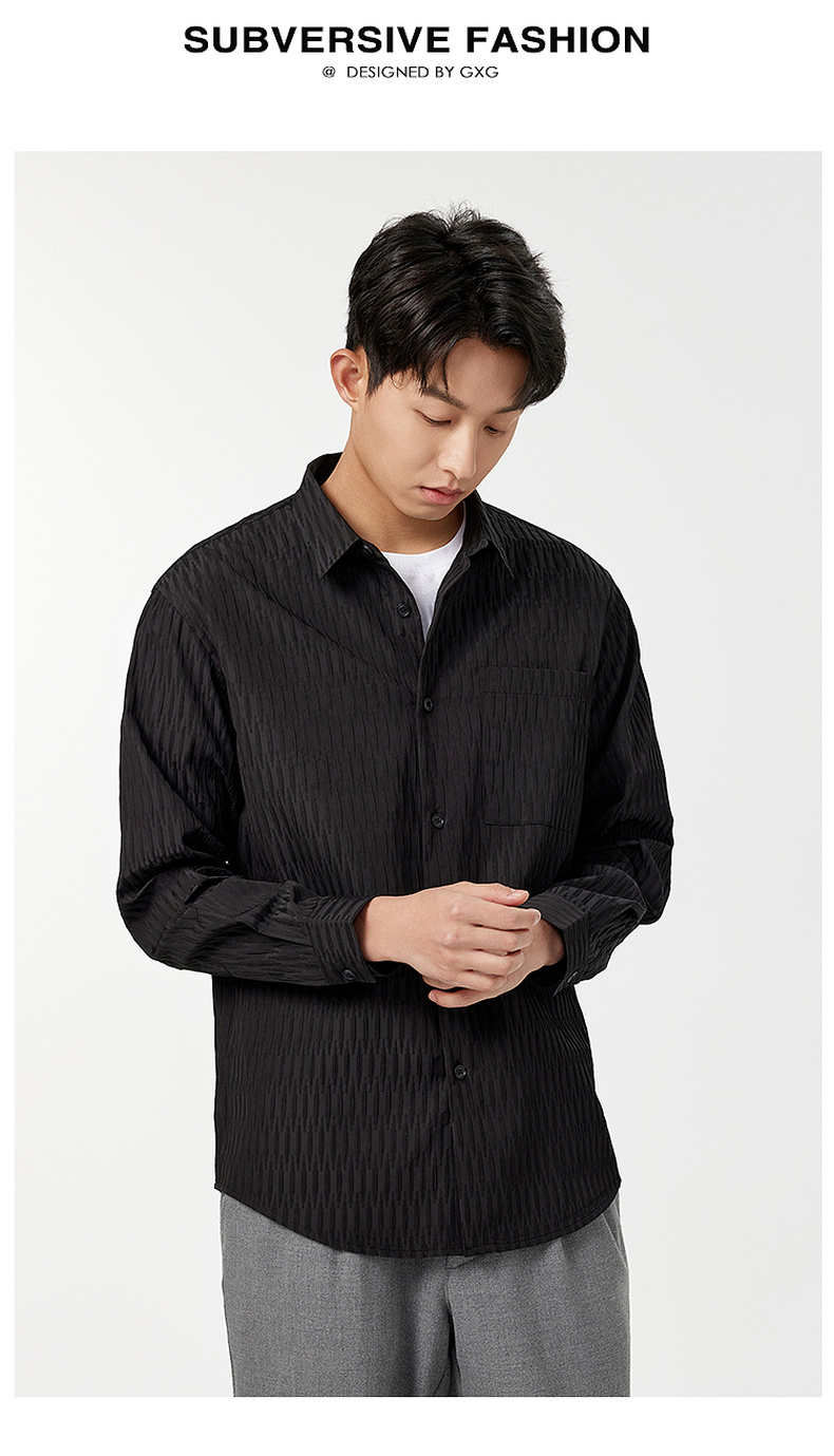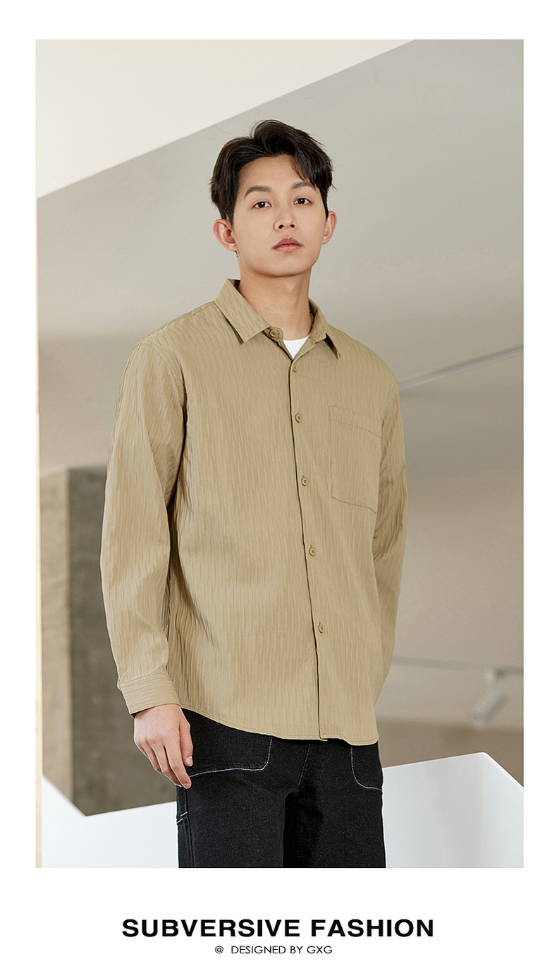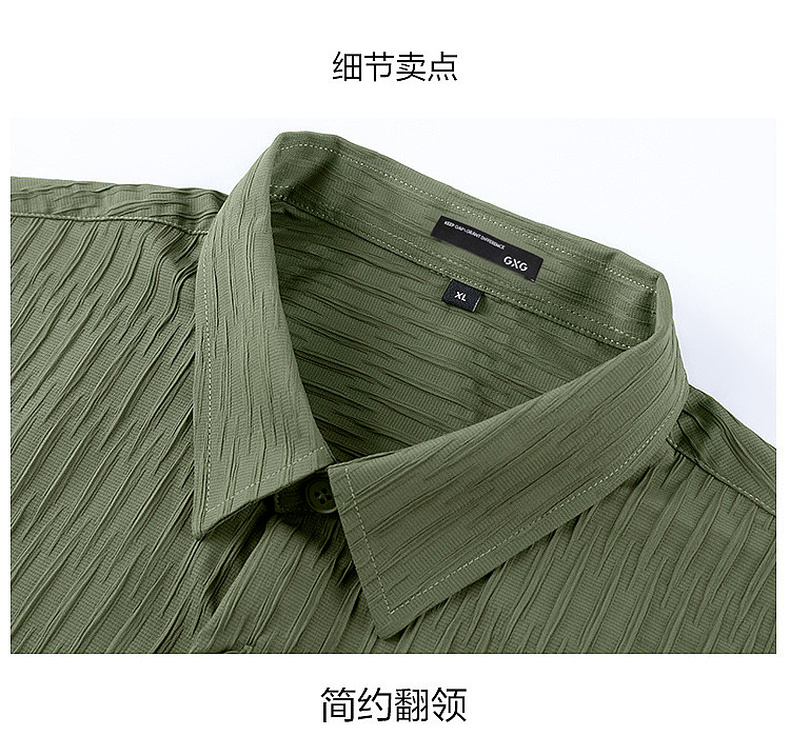 GXG男装【压褶工艺】春季时尚肌理感面料男款翻领长袖衬衫K&C