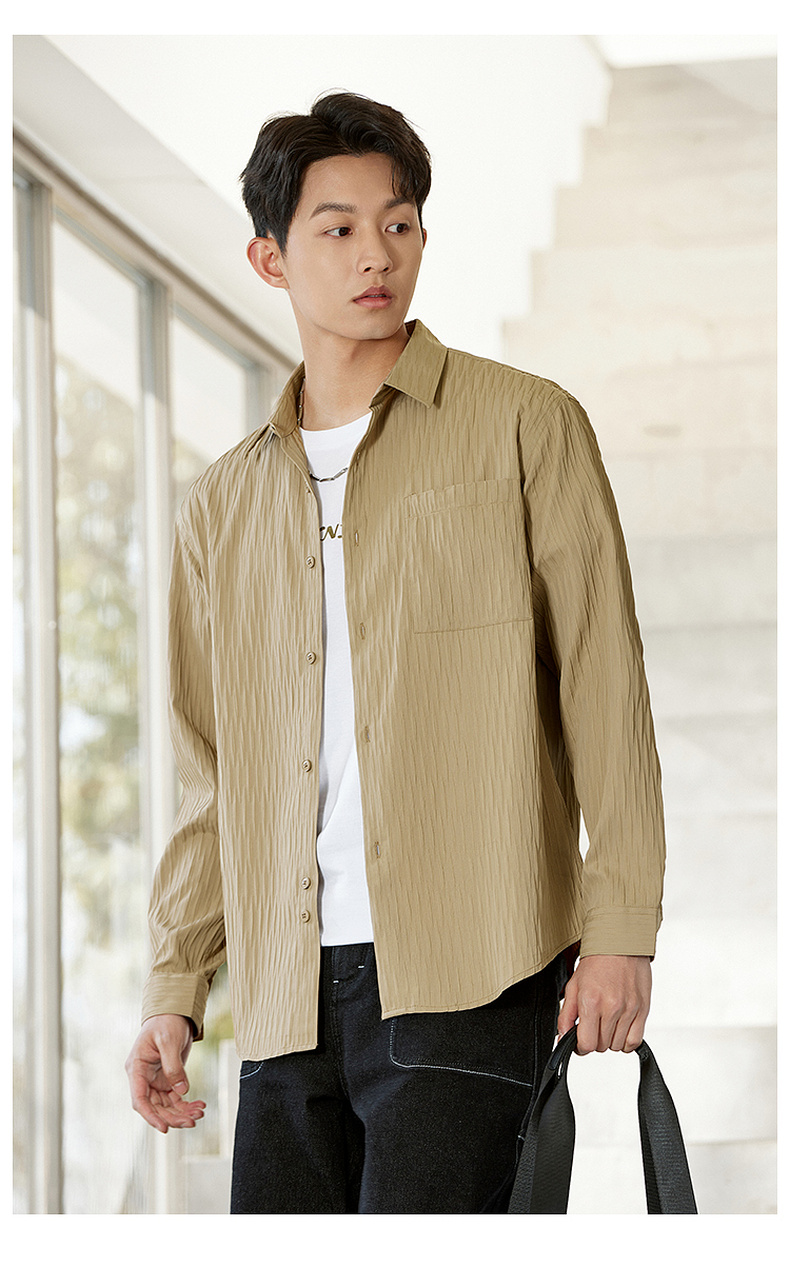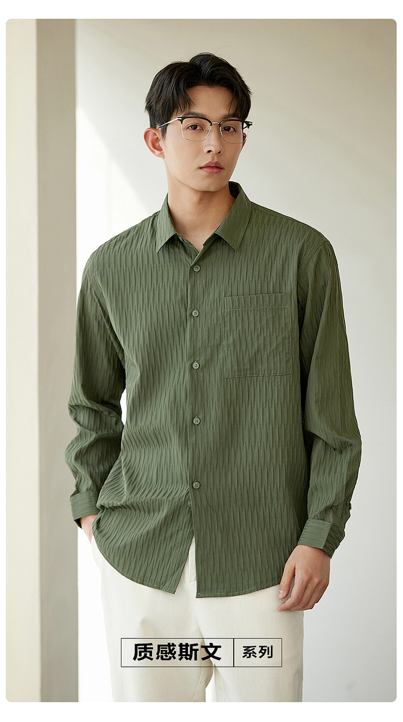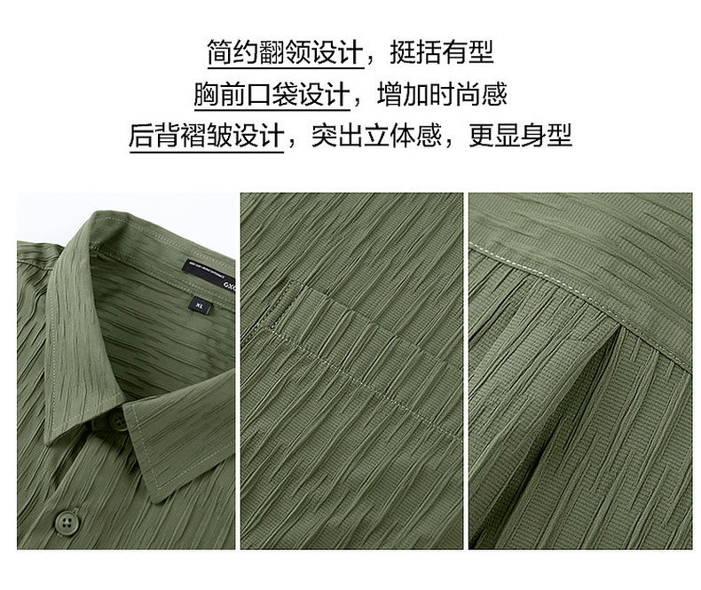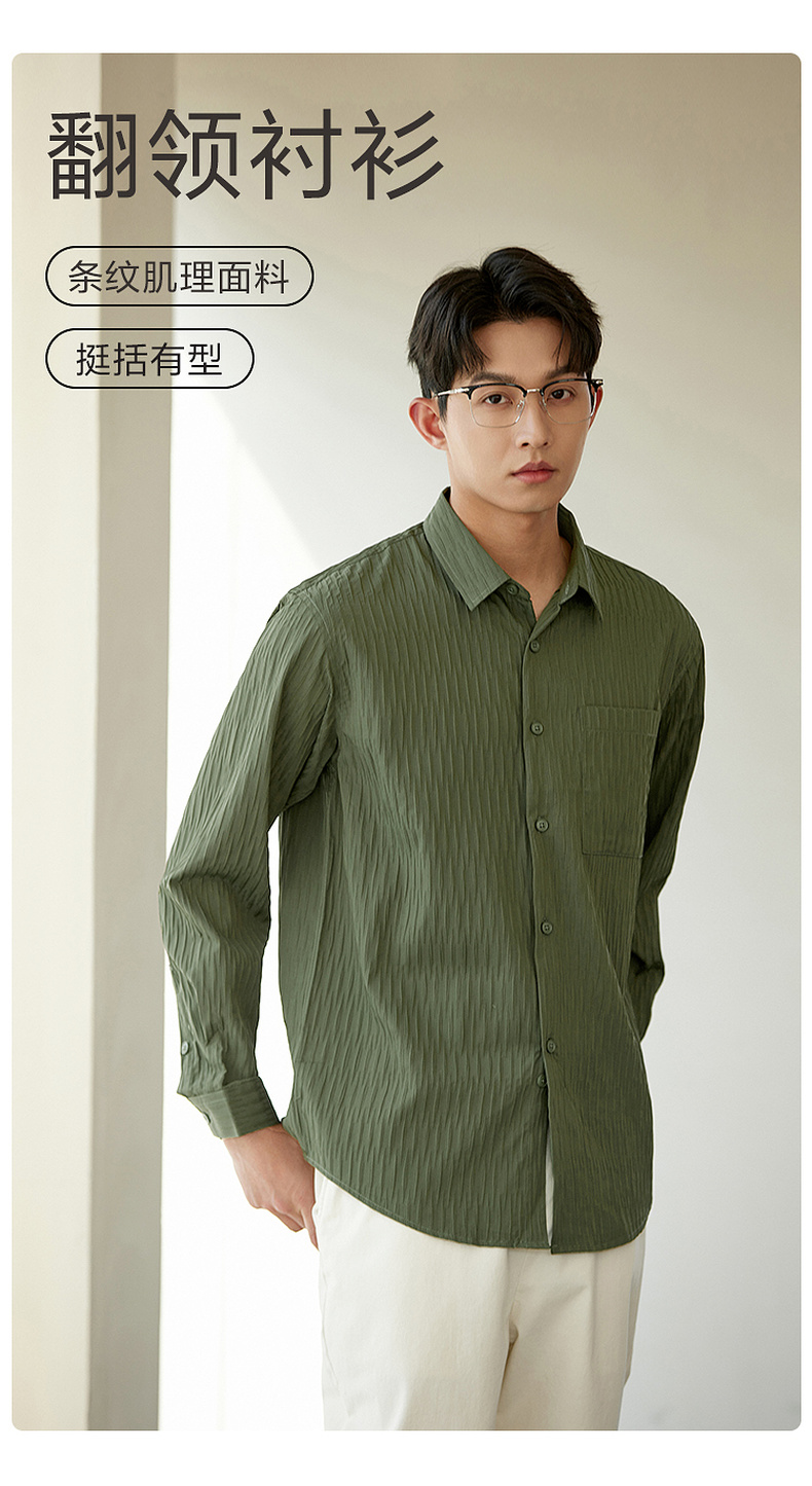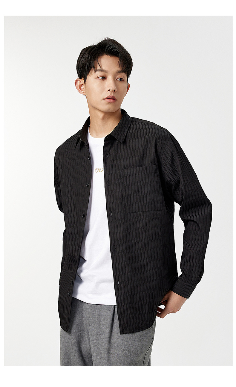 GXG男装【压褶工艺】春季时尚肌理感面料男款翻领长袖衬衫K&C