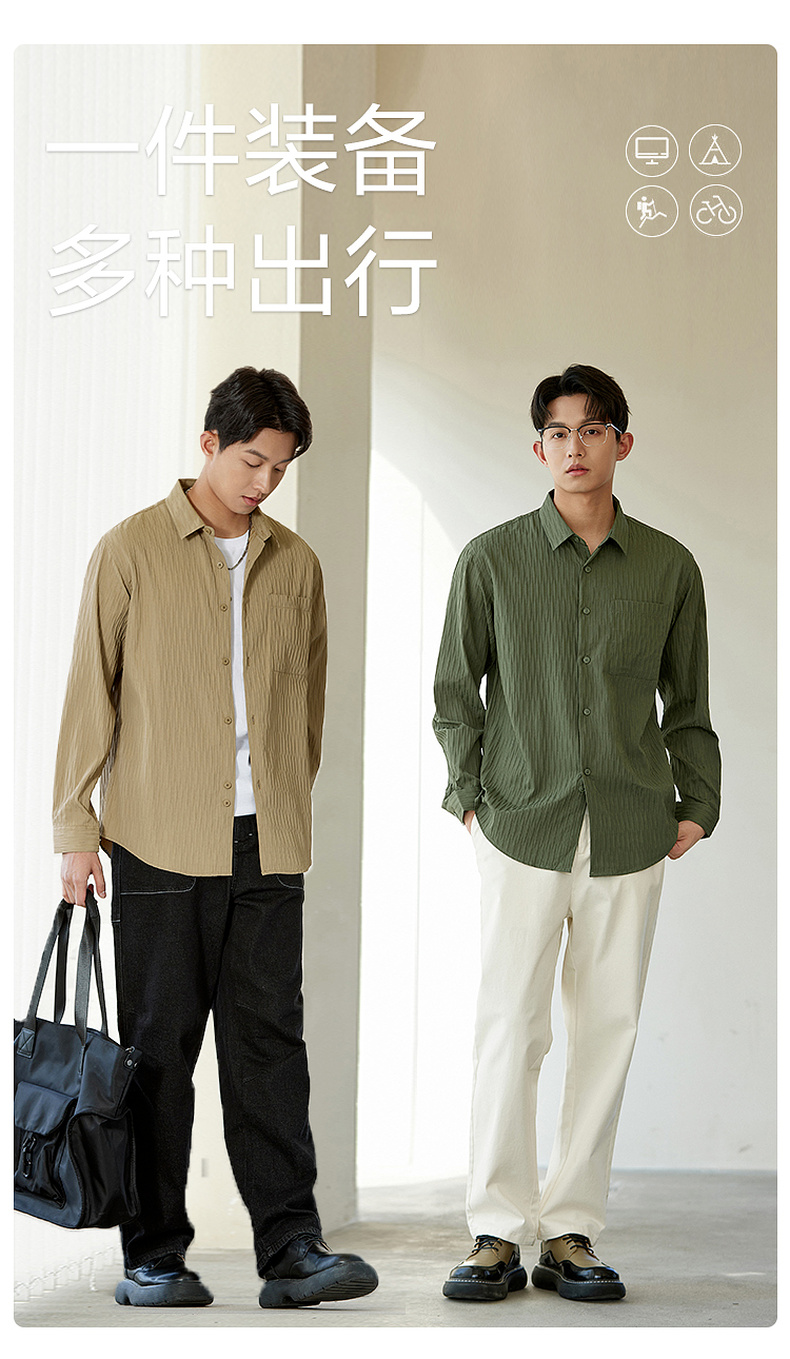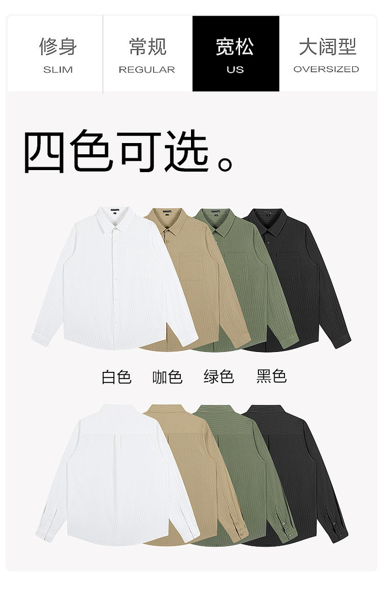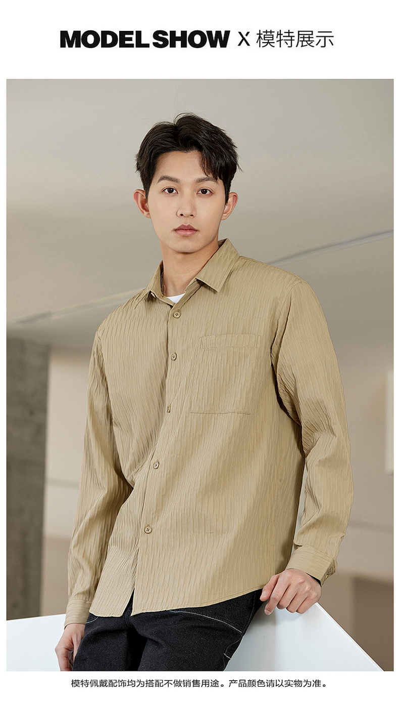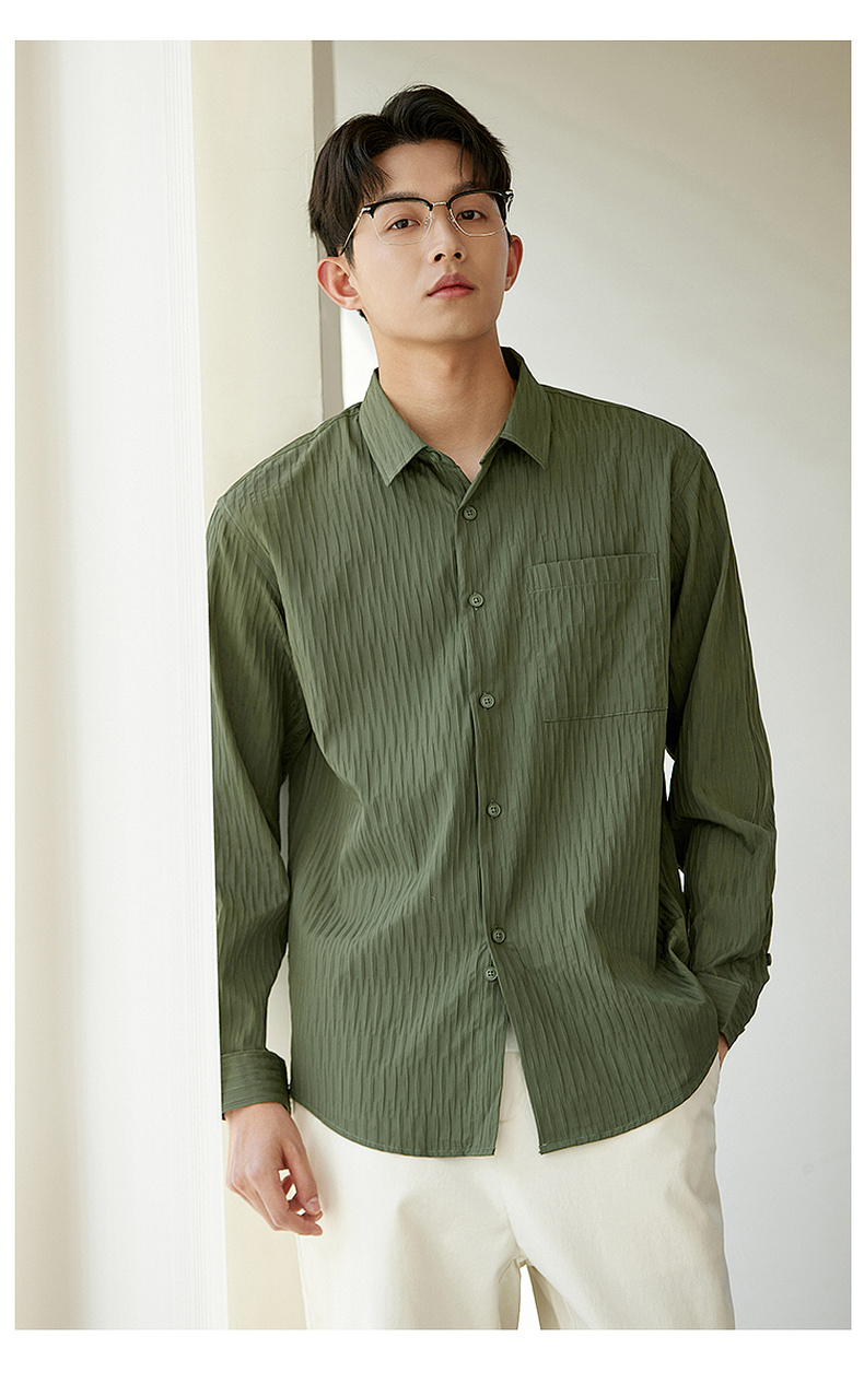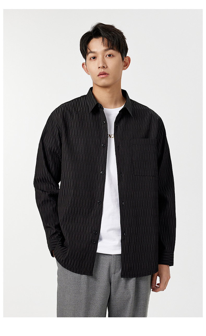 GXG男装【压褶工艺】春季时尚肌理感面料男款翻领长袖衬衫K&C