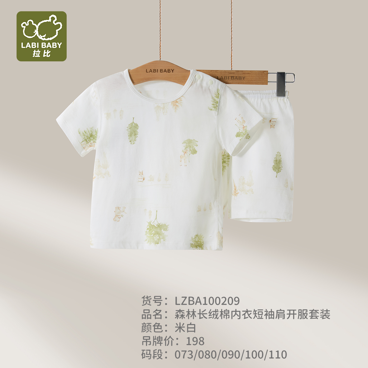 拉比内衣夏森林长绒棉内衣短袖肩开服套装j6LZBA100209