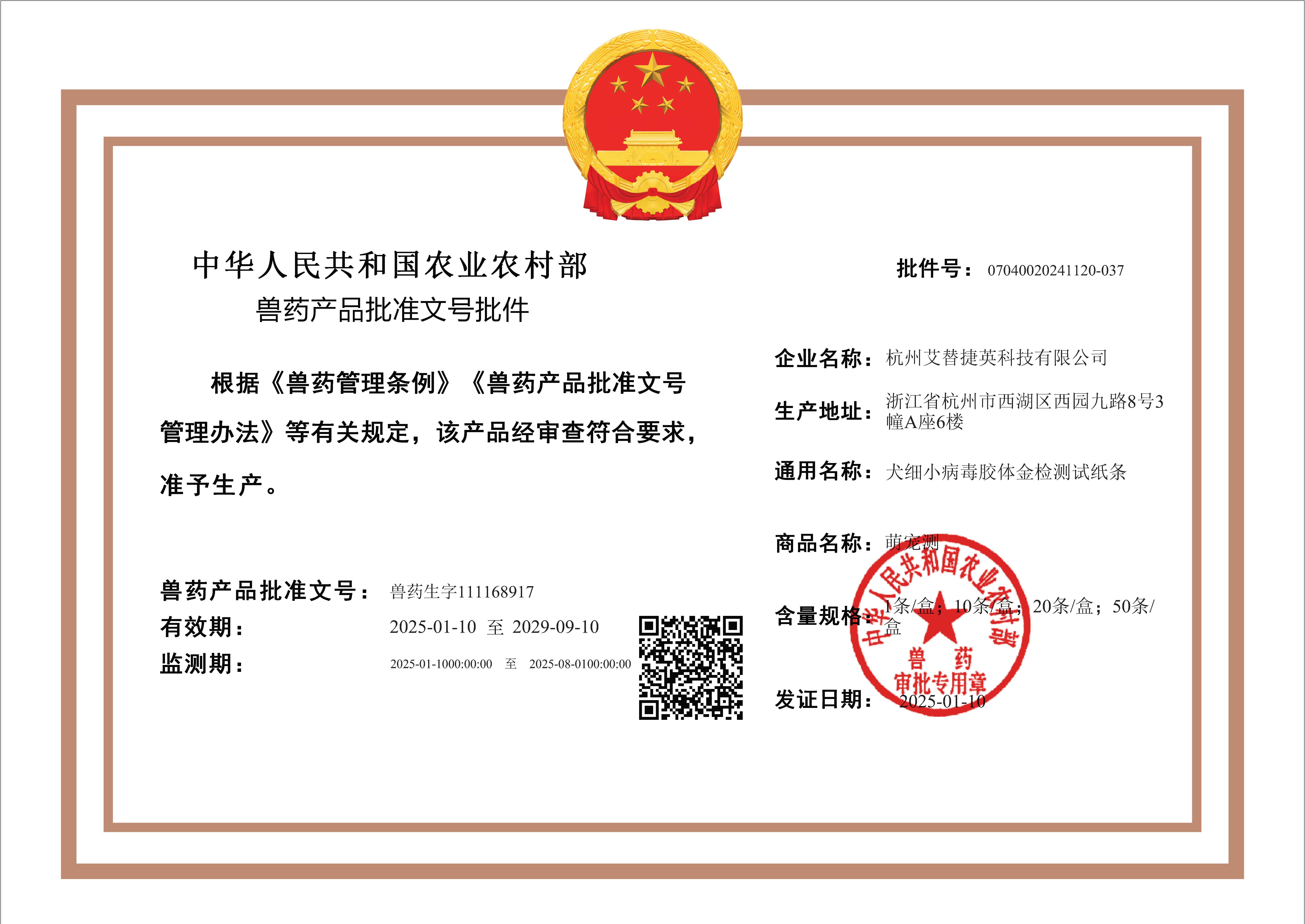 犬细小病毒胶体金测试条CPV(Ag) -有批文