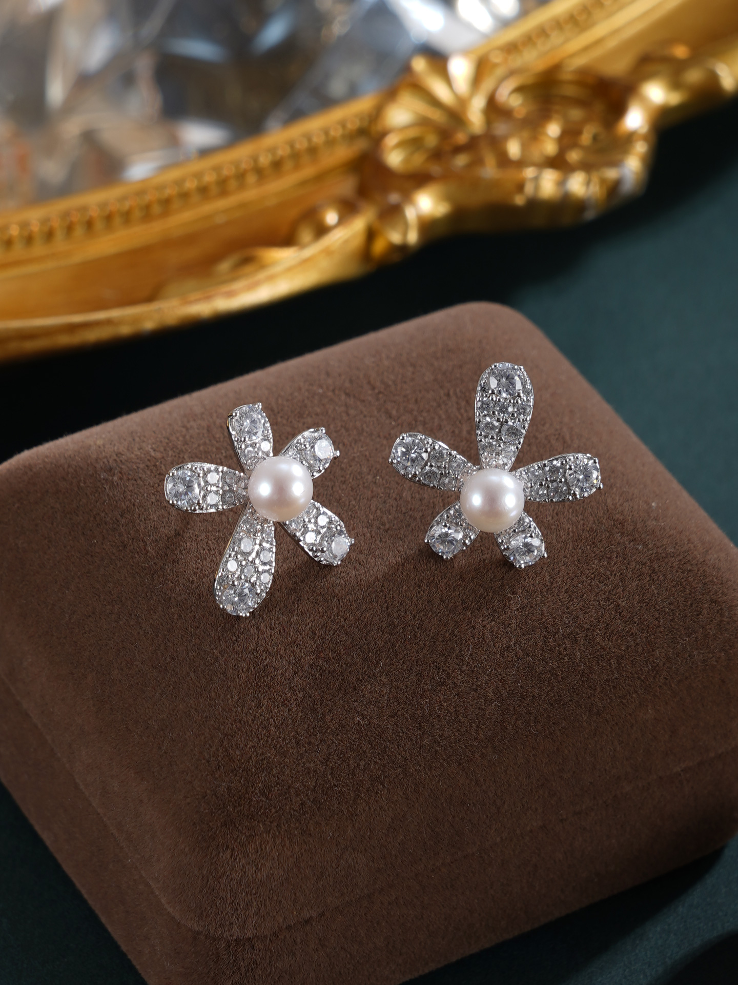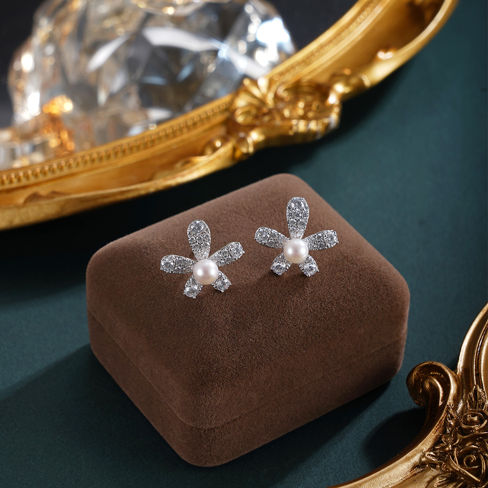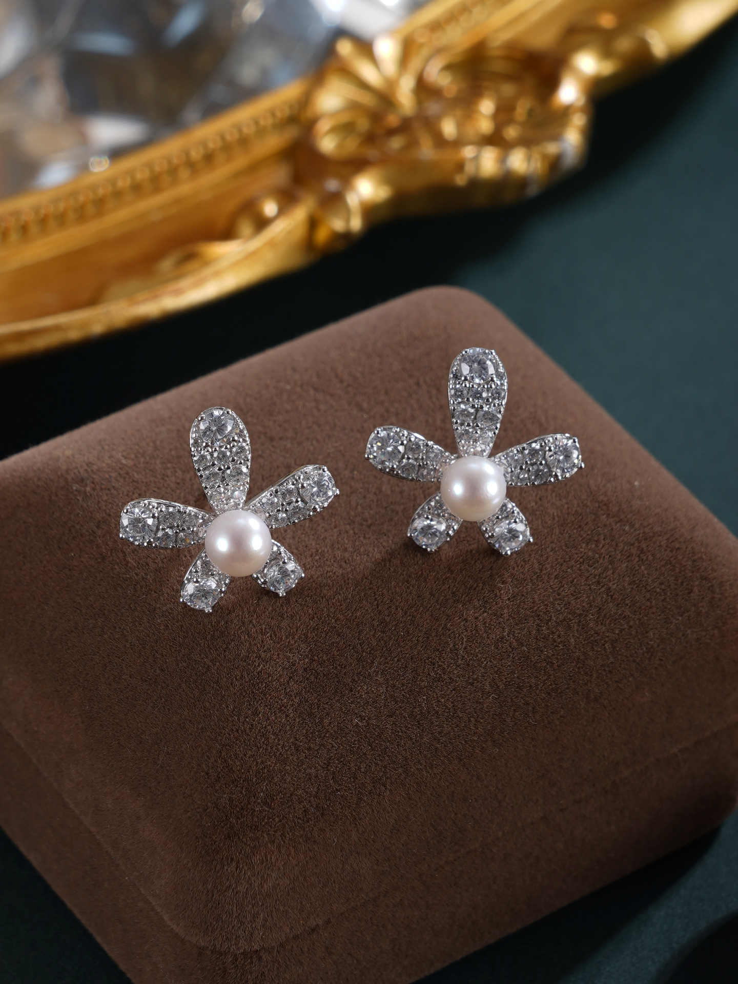 子佩集【花甜喜事】银S925珍珠惜王妃耳钉【MLEH014】5.4mm珠五瓣花2601