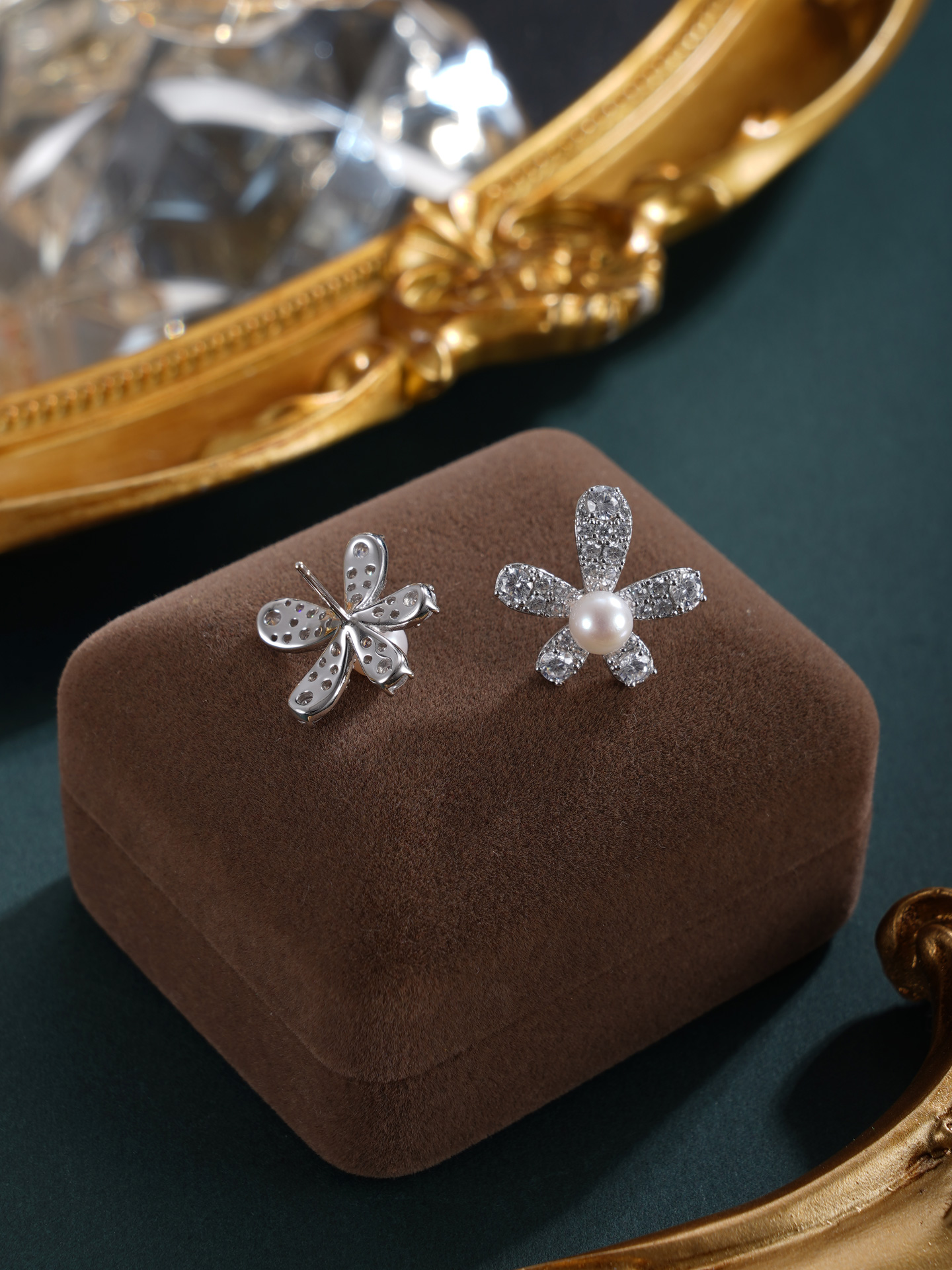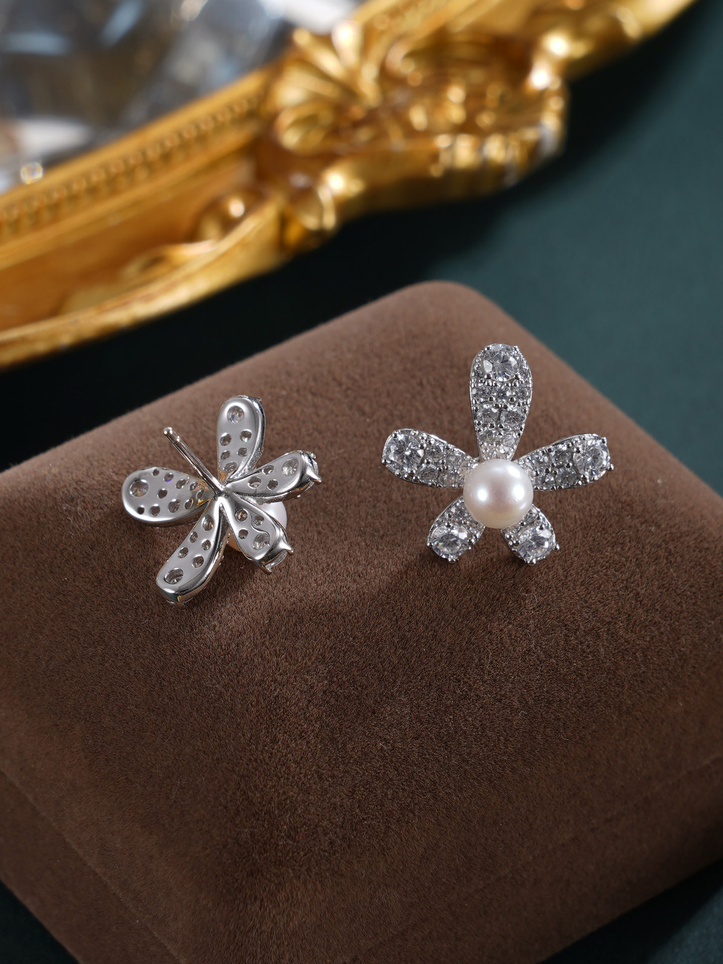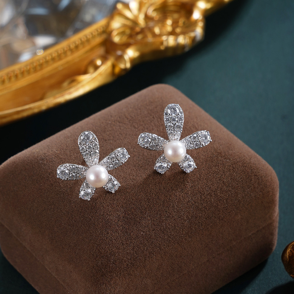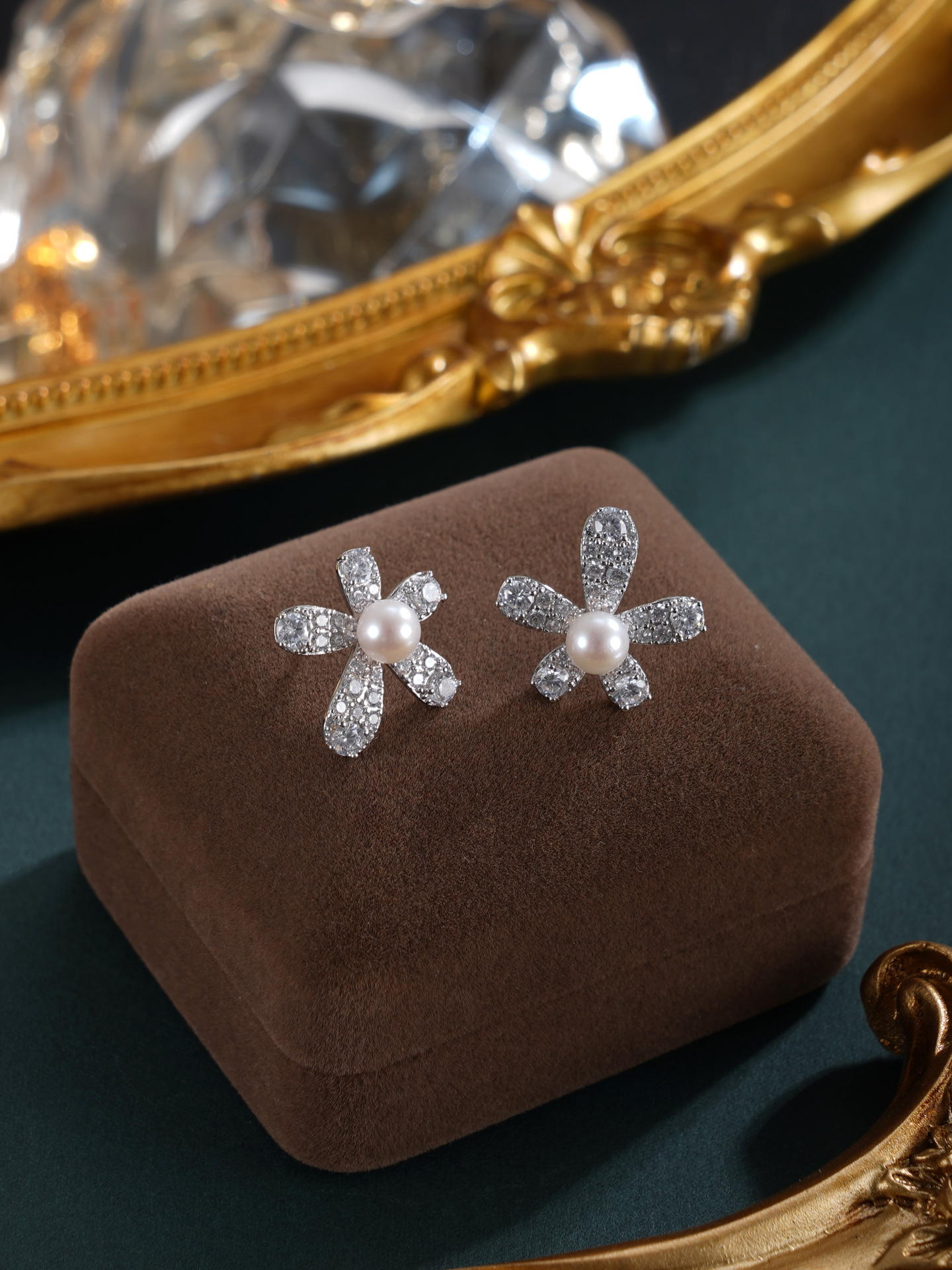 子佩集【花甜喜事】银S925珍珠惜王妃耳钉【MLEH014】5.4mm珠五瓣花2601