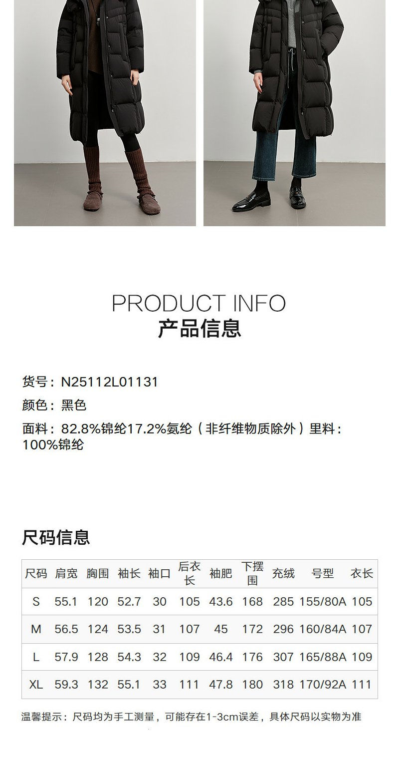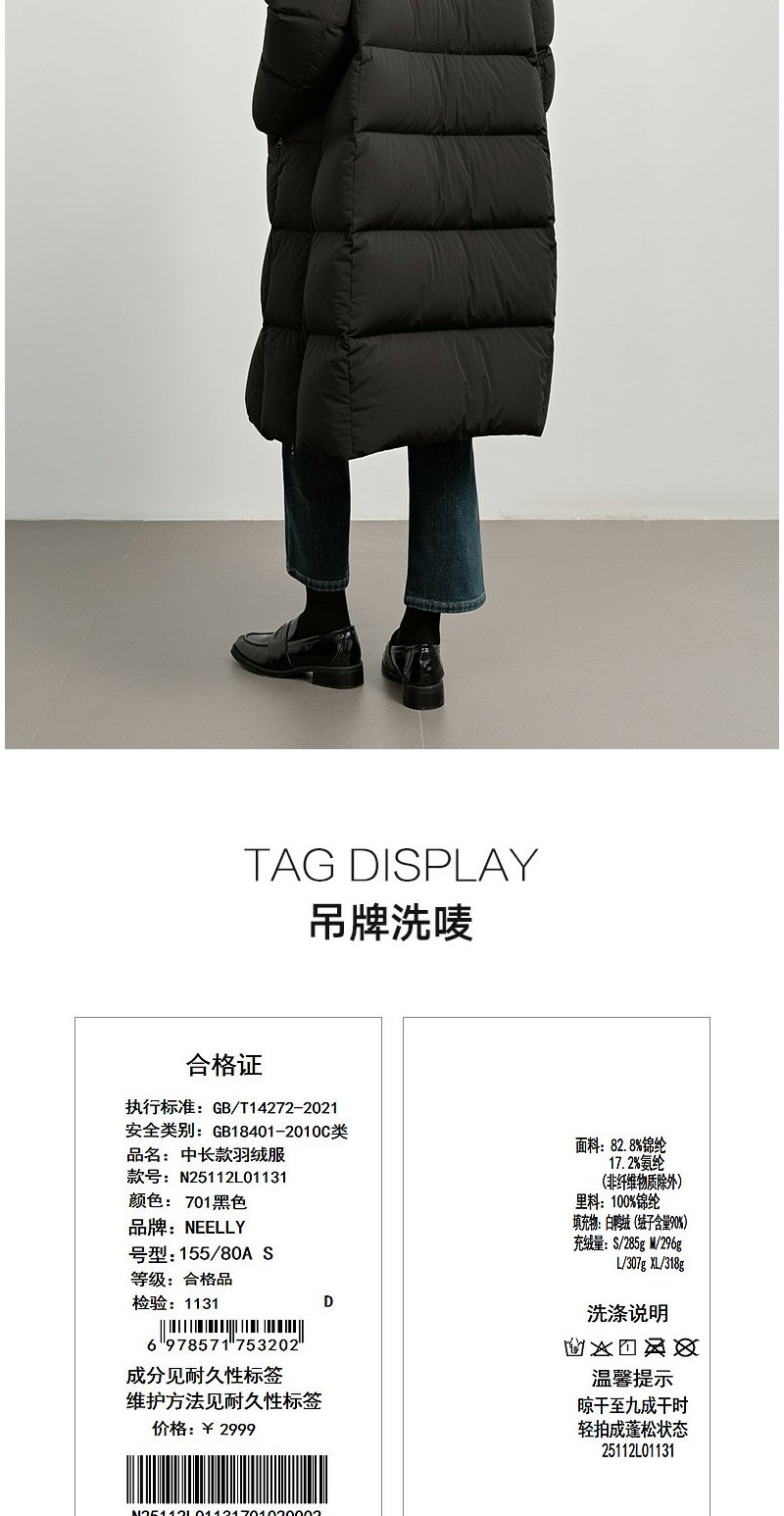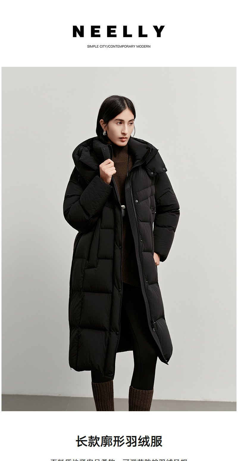 NEELLY纳俪商场同款冬新款时尚保暖长款羽绒服女90白鸭绒舒适外套N25112L01131