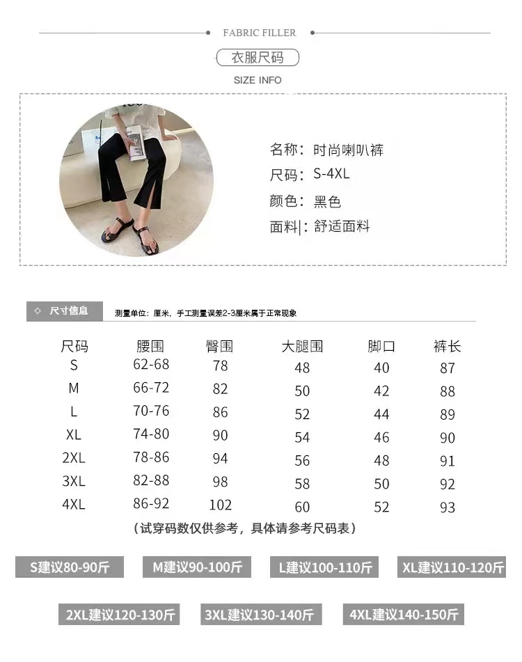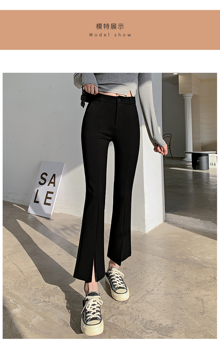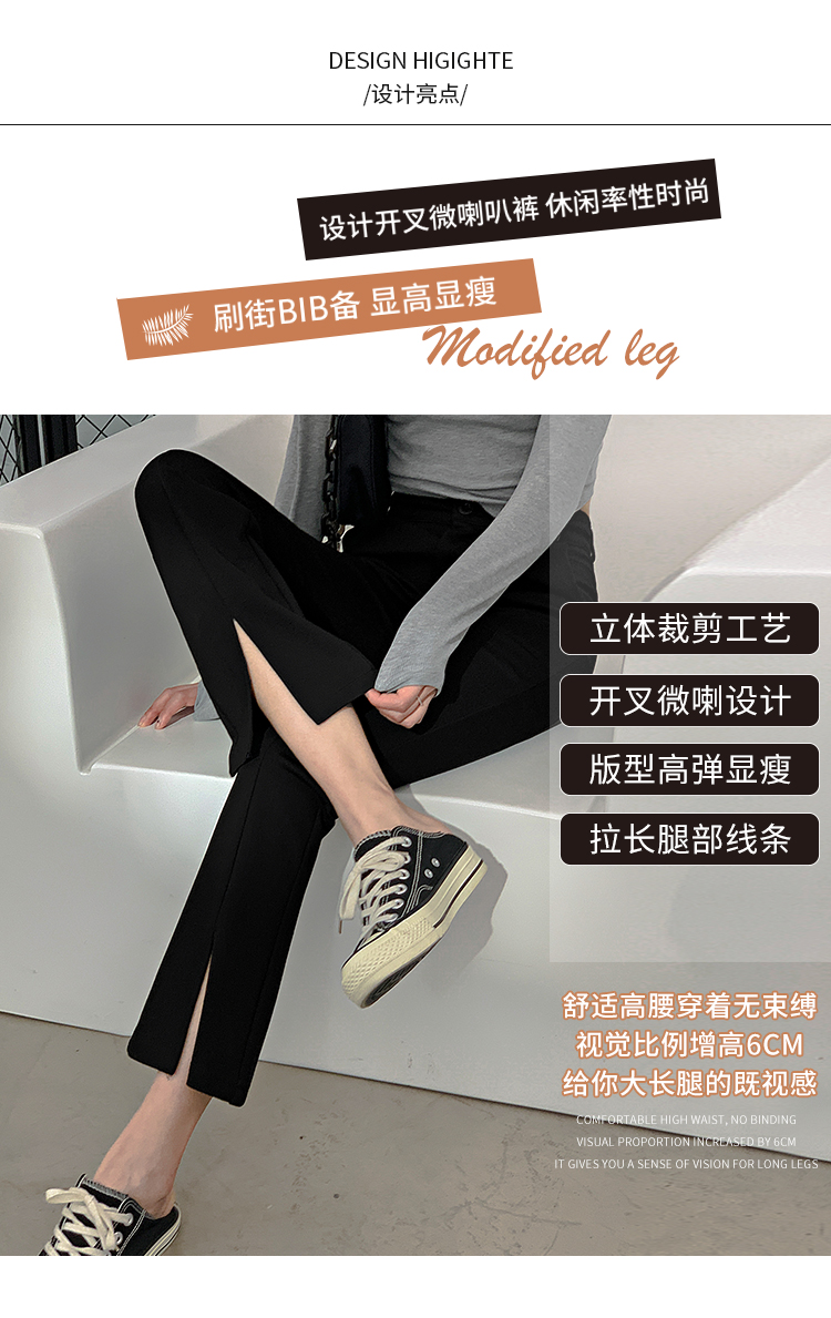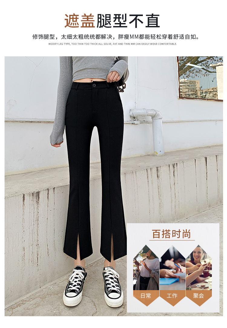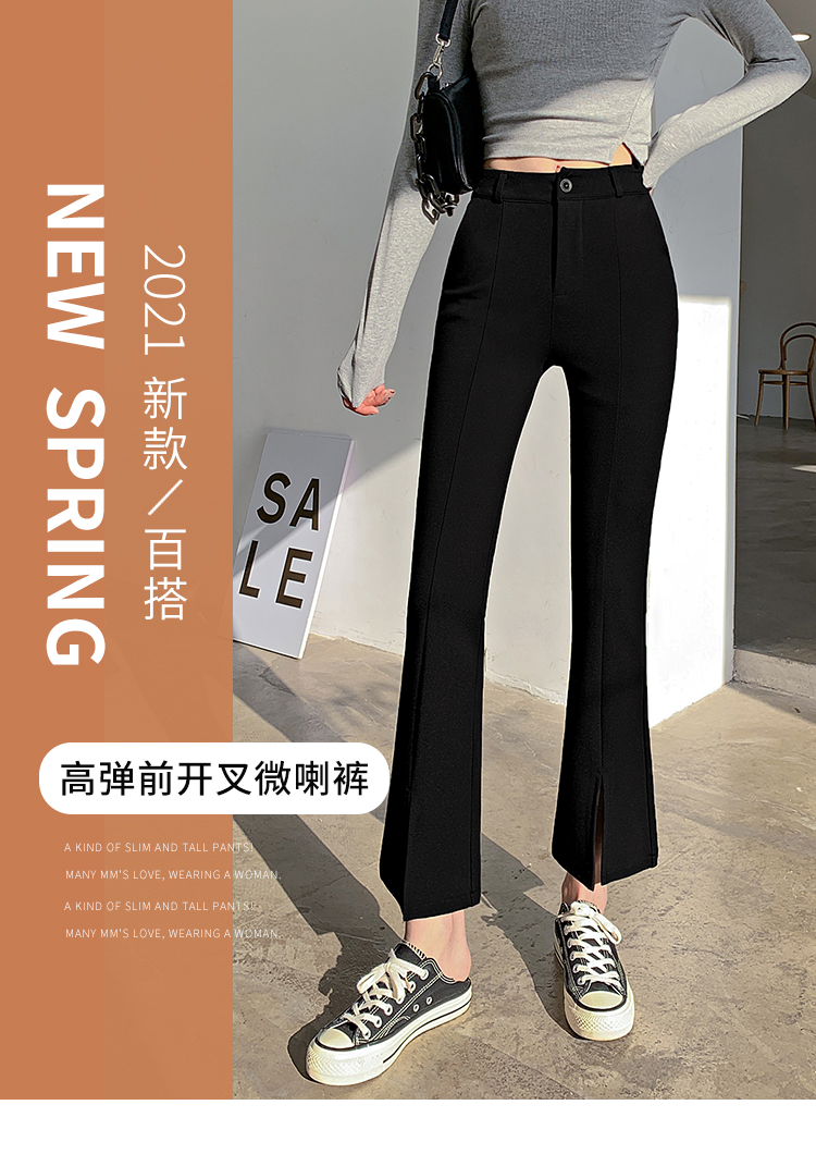 喇叭裤修身西装裤女开叉裤2022春秋新韩版西裤弹力九分微喇裤XZ3648