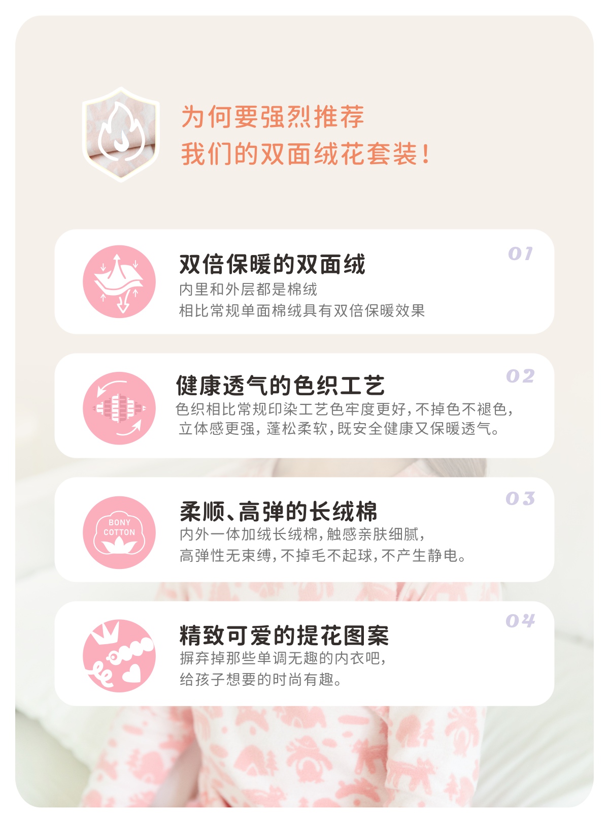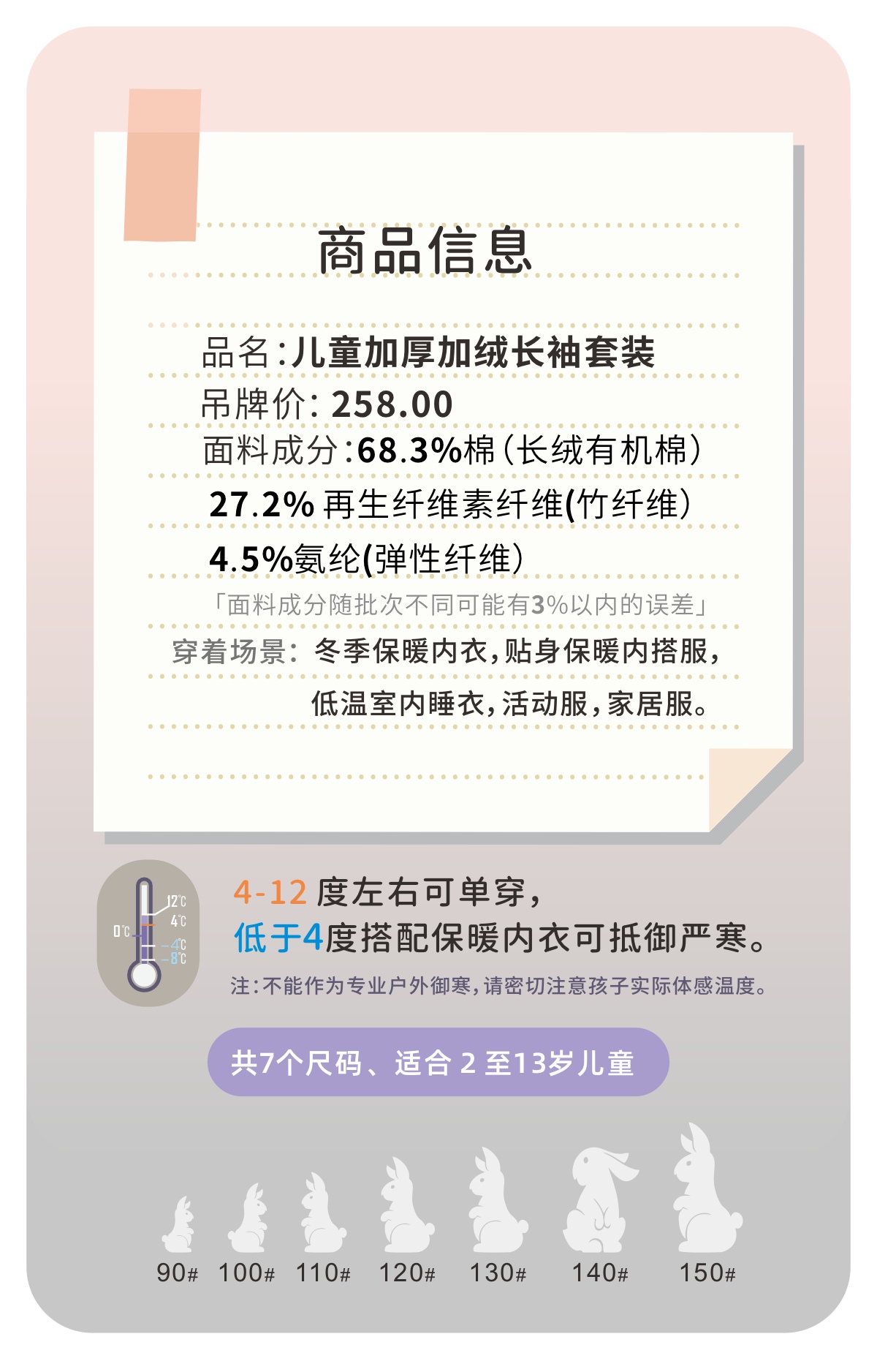 【云优选】280克加厚双面绒 韩国moimoi末一末一儿童保暖内衣套装儿童家居服