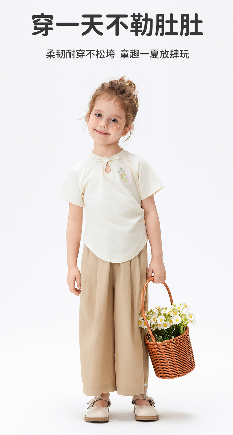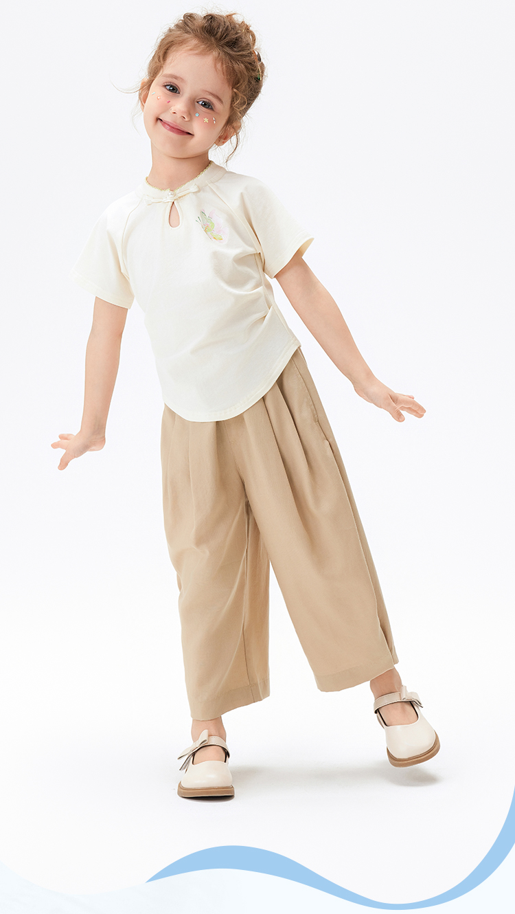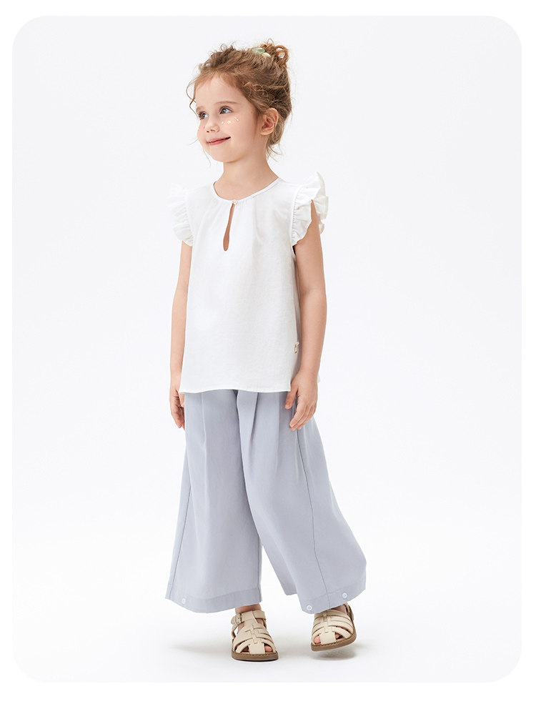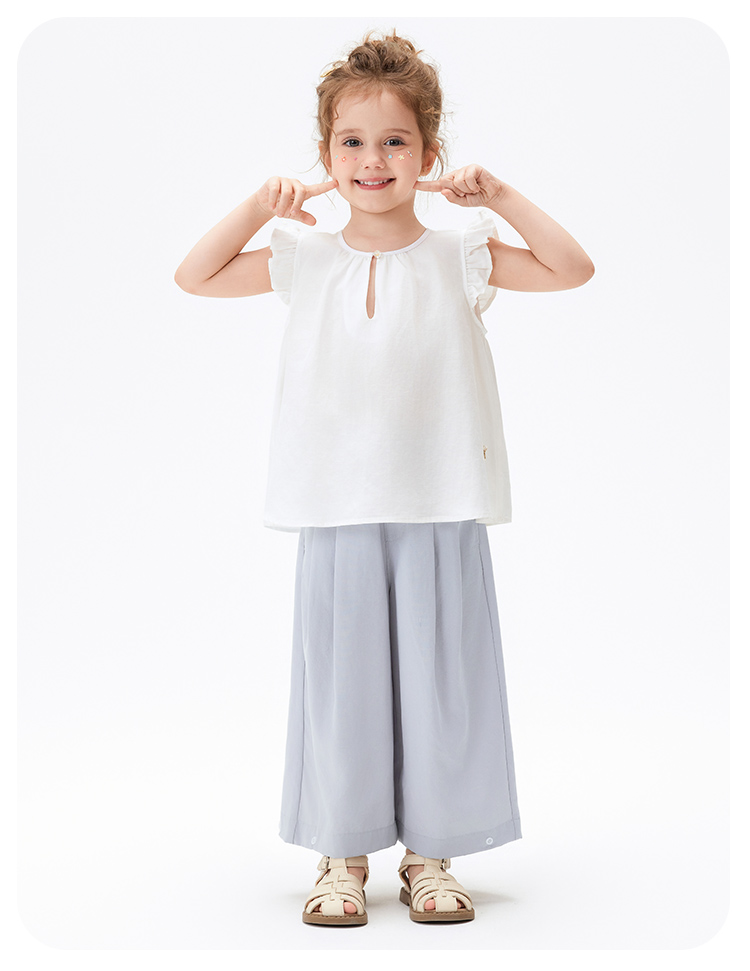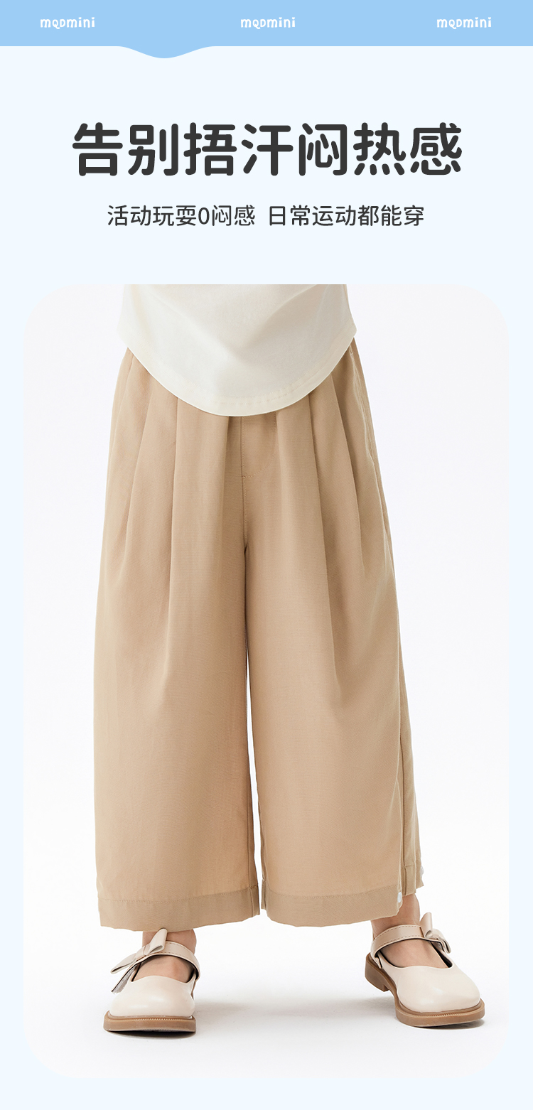 【莱赛尔+亚麻】【90-140】【MQDmini】女童夏季薄款长裤纯色宽松直筒裤子