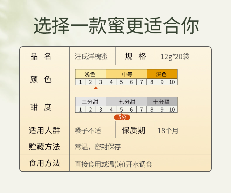 汪氏蜂蜜 洋槐蜜240g 小包装12g*20条