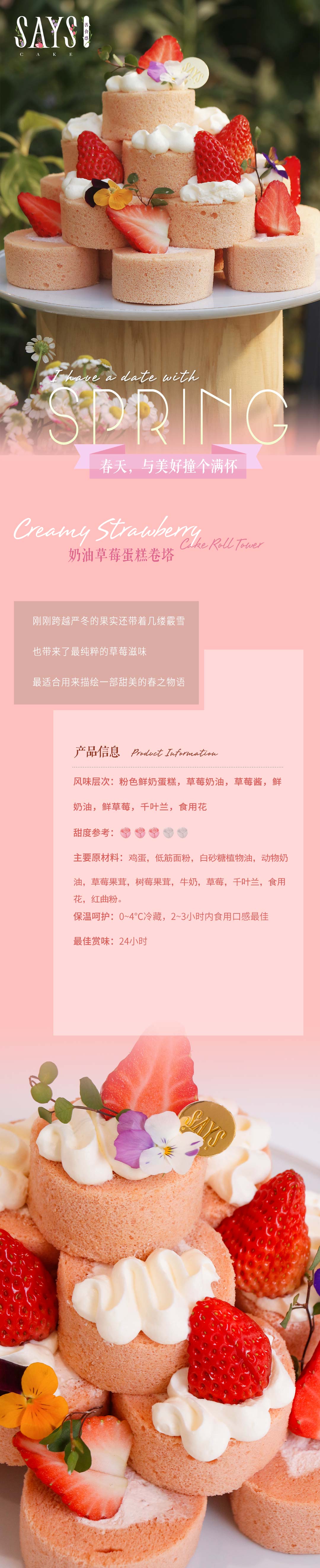 奶油草莓蛋糕卷塔(配手套)Cream Strawberry Cake Roll Tower