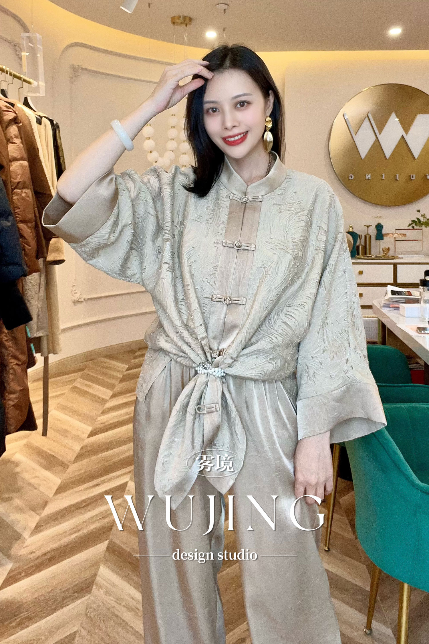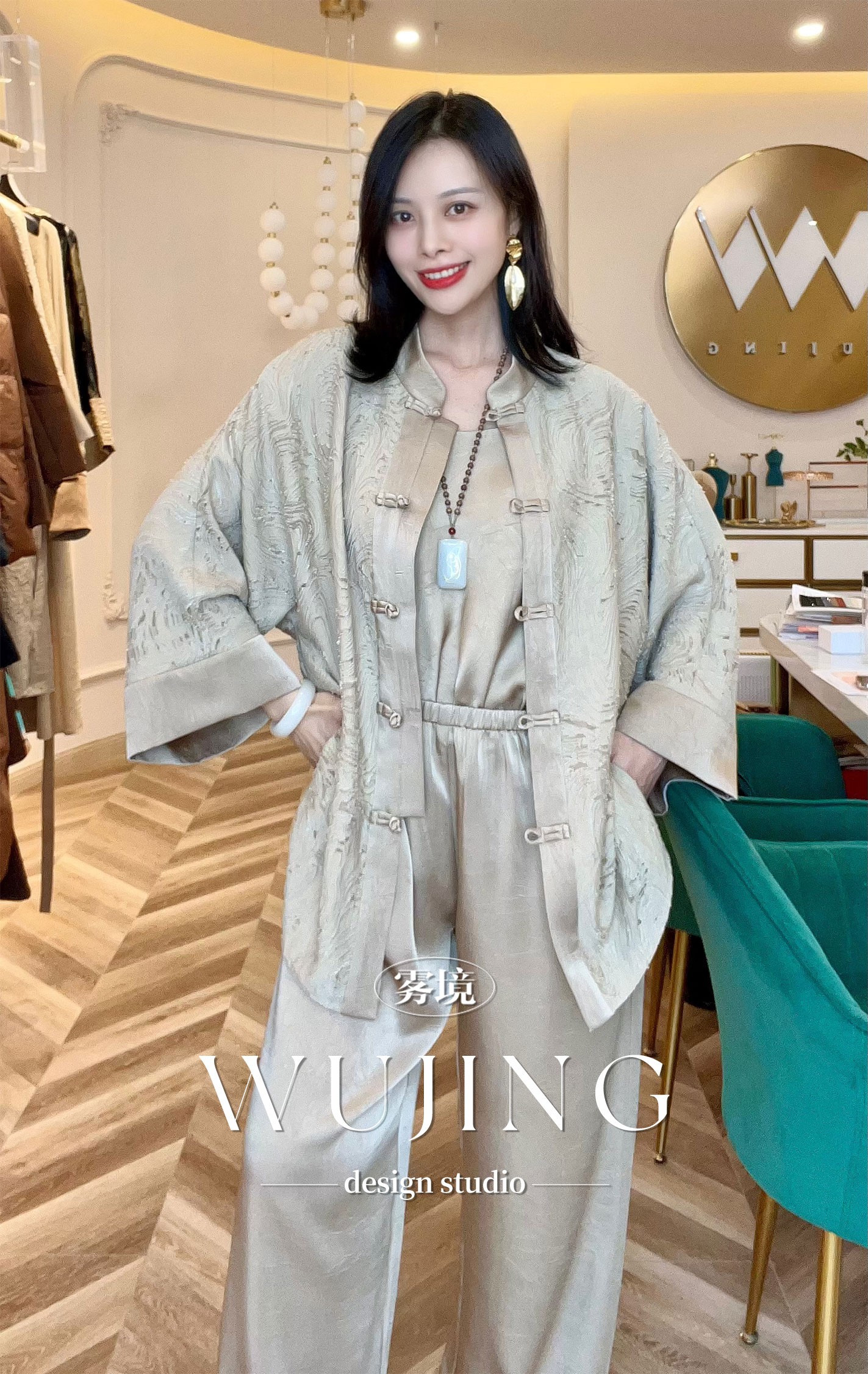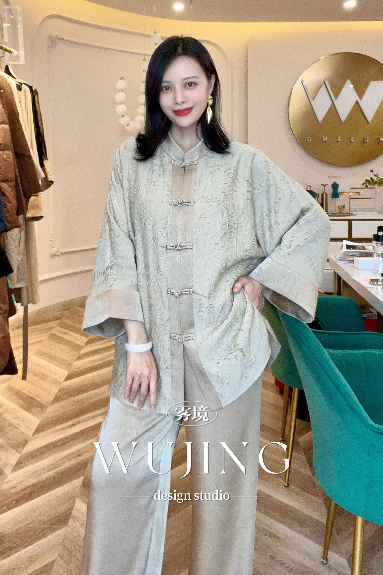 【雾境定制】粉韵祥云&兰亭风月系列松弛感显瘦显高压褶醋酸直筒裤 3204060