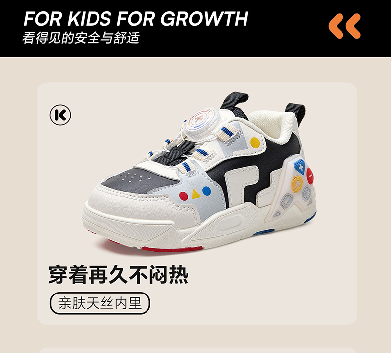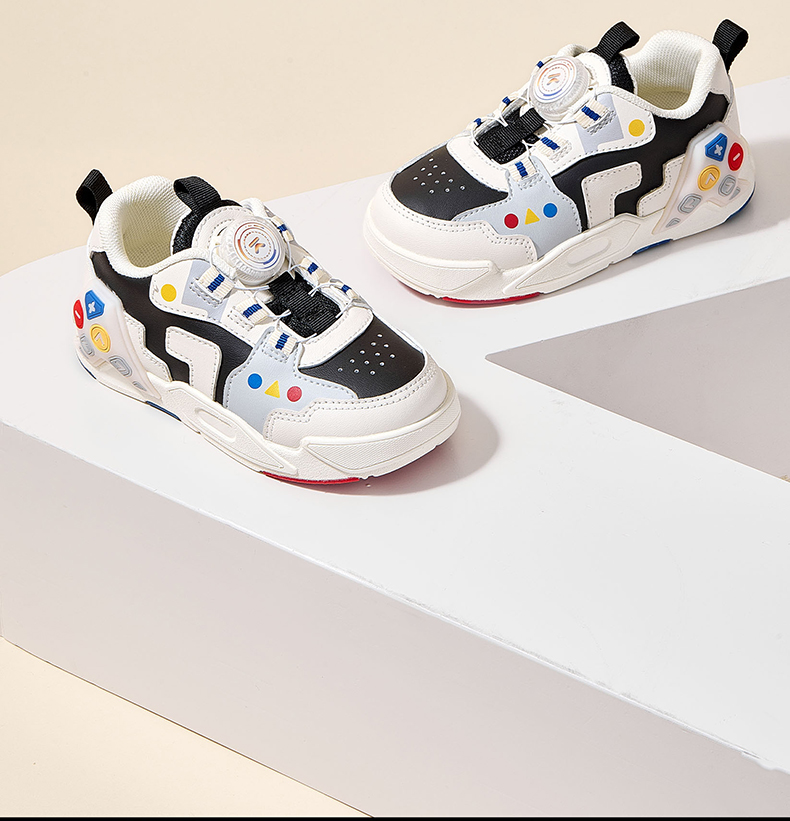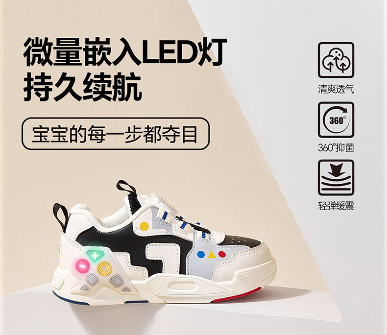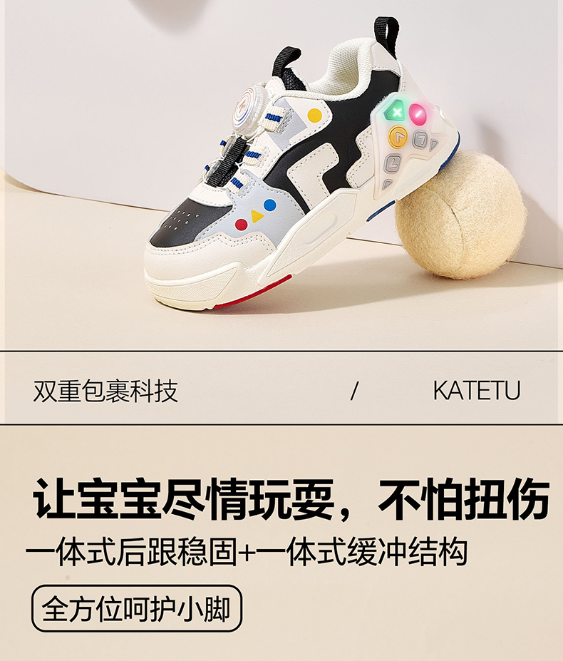 卡特兔童鞋儿童板鞋小白鞋2024秋季闪灯鞋旋转纽扣运动跑步鞋