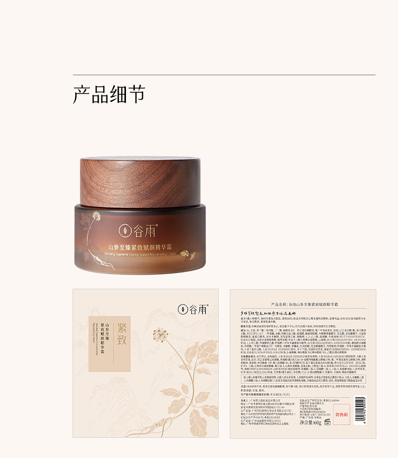 【不垮脸·调气色·深修护】谷雨「高能山参面霜」山参至臻紧致赋颜精华霜60g