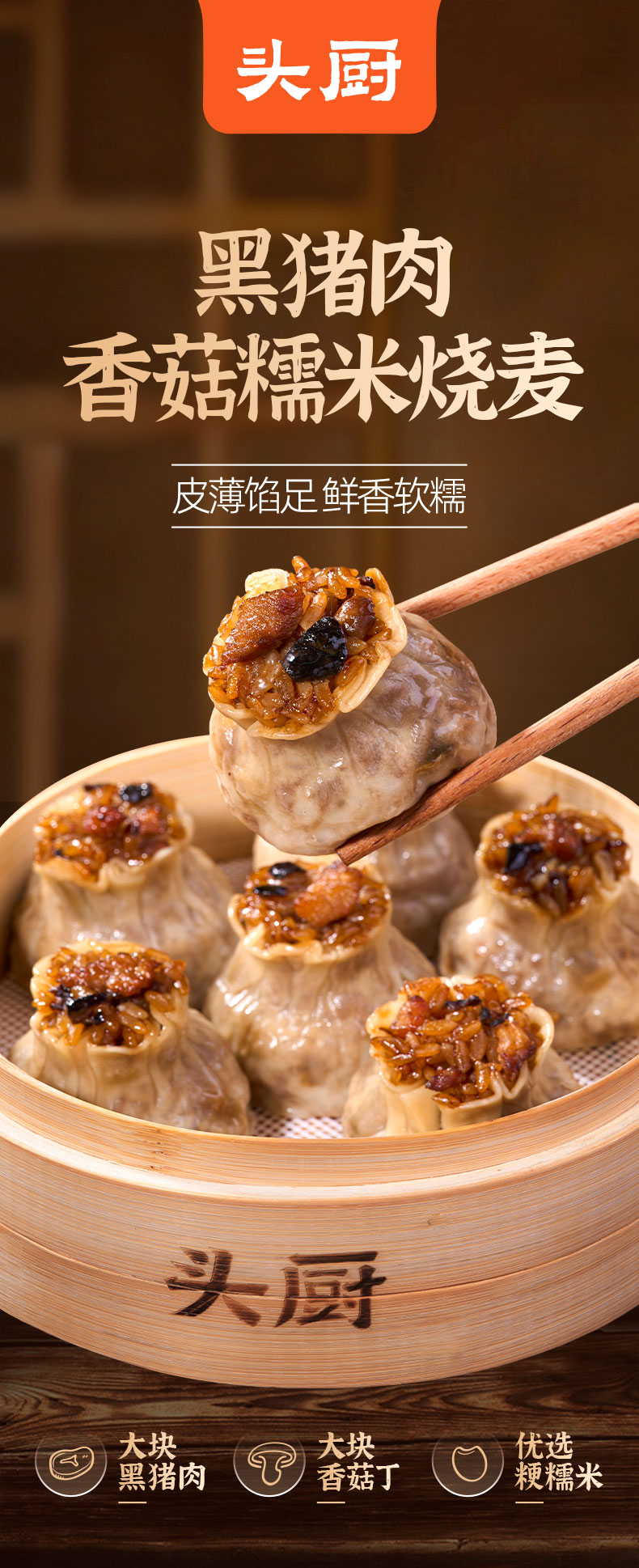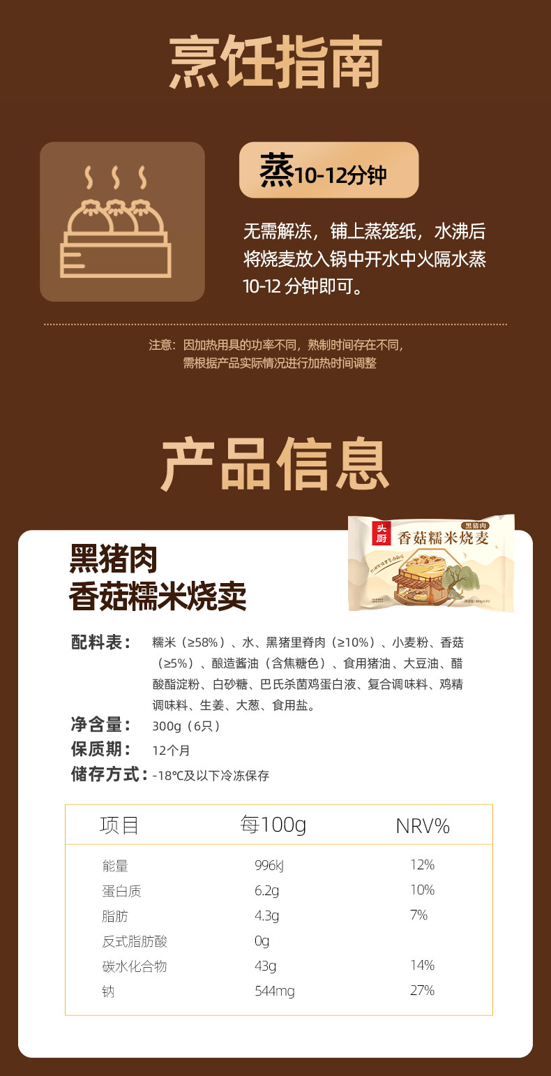 头厨黑猪肉香菇糯米烧麦*2包(300g/包 6个)生产日期: 2月