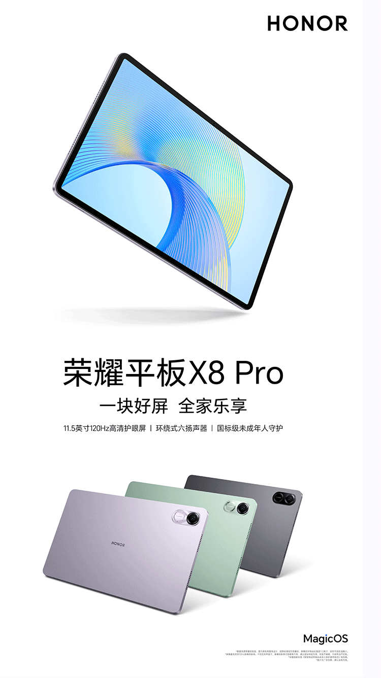 荣耀平板X8 Pro 11.5英寸 120Hz高刷2k护眼屏 多屏协同 娱乐影音办公学习平板电脑