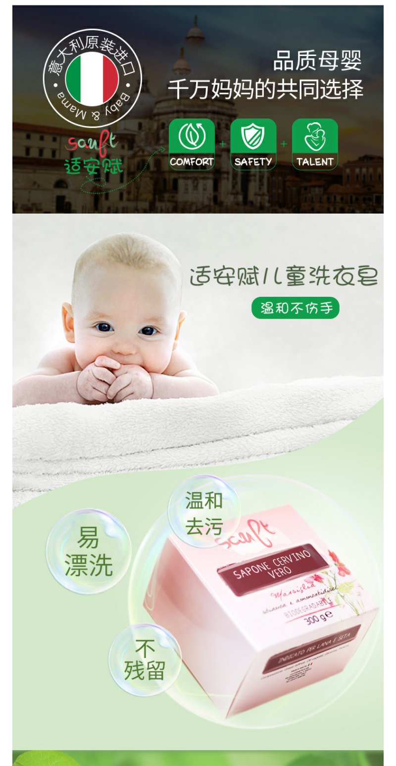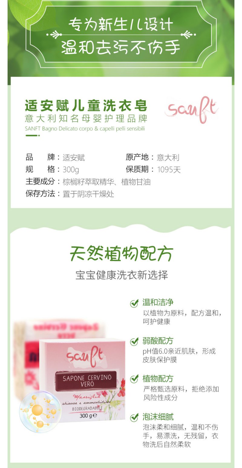适安赋意大利进口天然亲润肤婴幼儿洗衣皂300g宝宝洗衣去渍婴儿