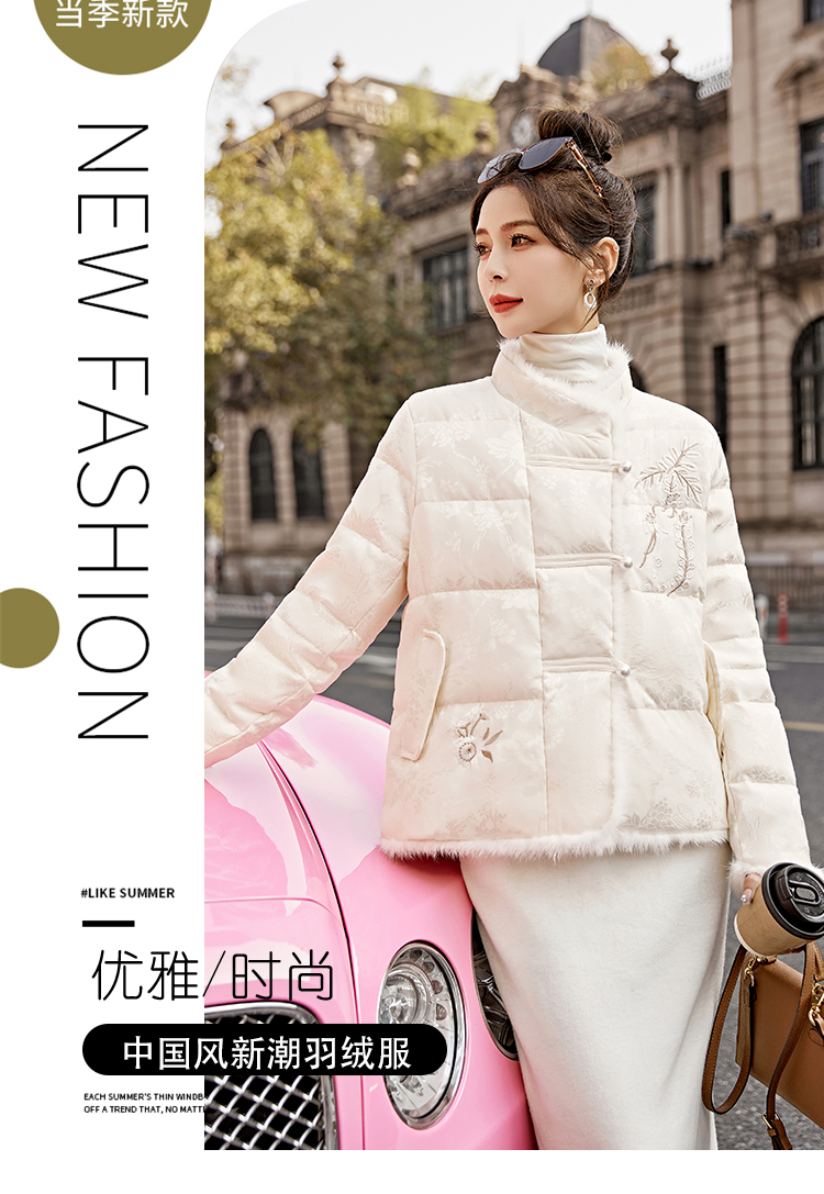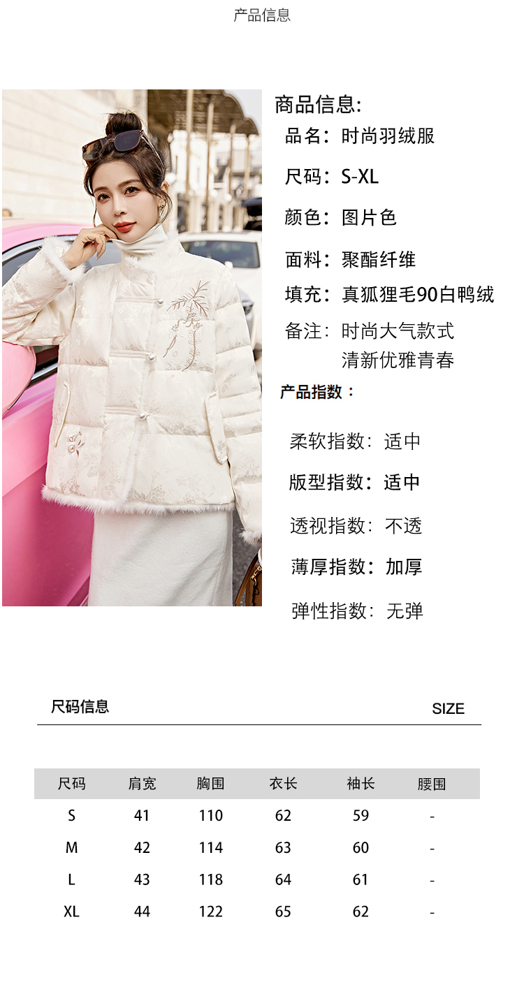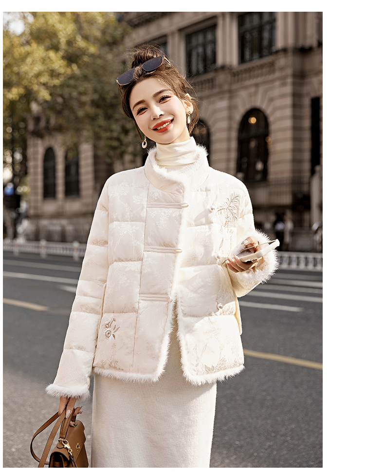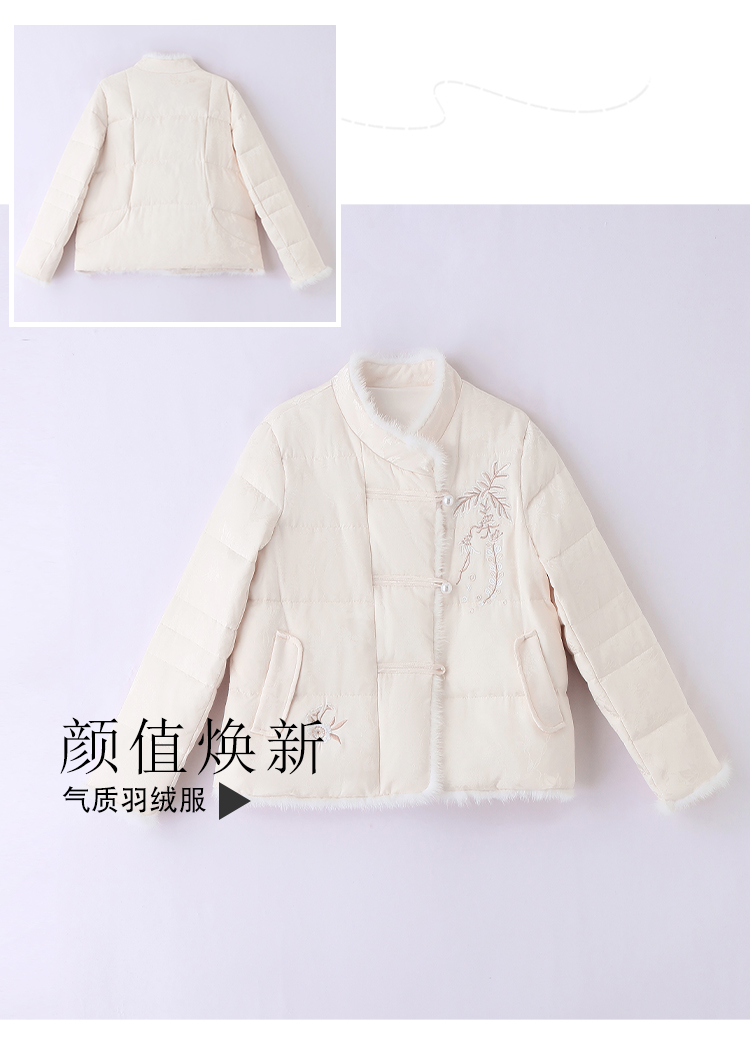 冬季新款,盘扣刺绣羽绒服真毛羽绒服外套HR-YQH9950