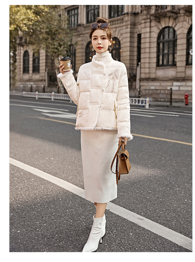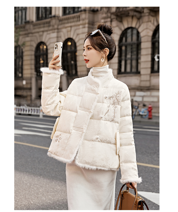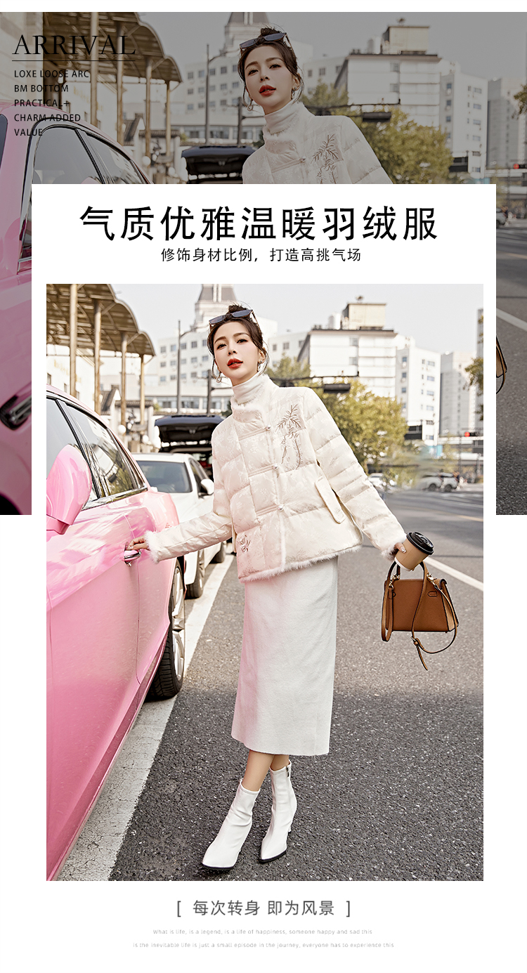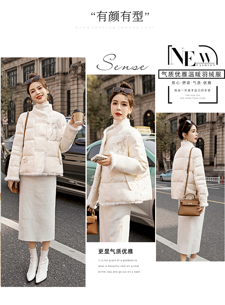 冬季新款,盘扣刺绣羽绒服真毛羽绒服外套HR-YQH9950