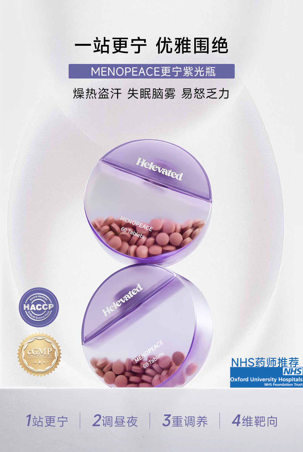 helevated menopeace复合更宁紫光瓶 60粒/盒黑升麻大豆异黄酮平衡雌激素调理更年期综合症