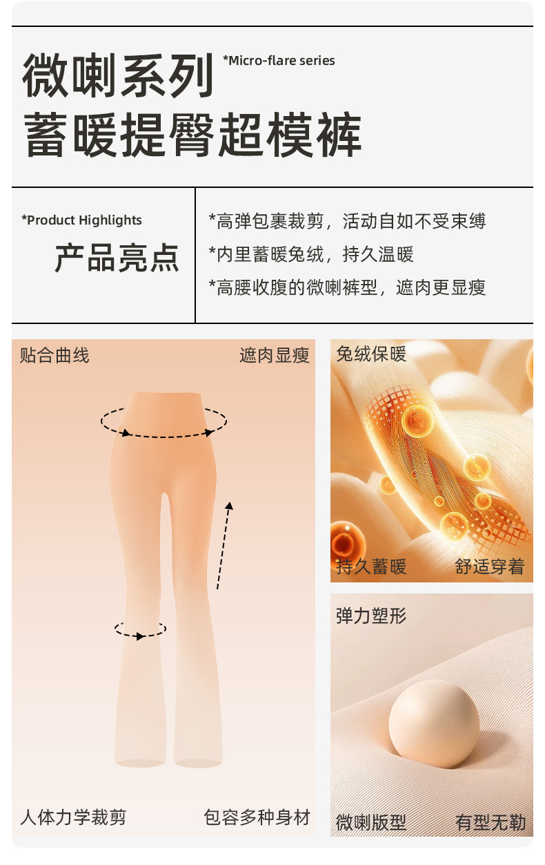 秋冬【锁温&微喇塑版🔥】超模加长喇叭裤子 女秋冬加绒长裤 收腹提臀高腰显瘦休闲微喇瑜伽裤