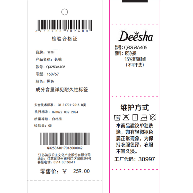 笛莎/Deesha 2026年夏季新款中童裤子休闲工装裤