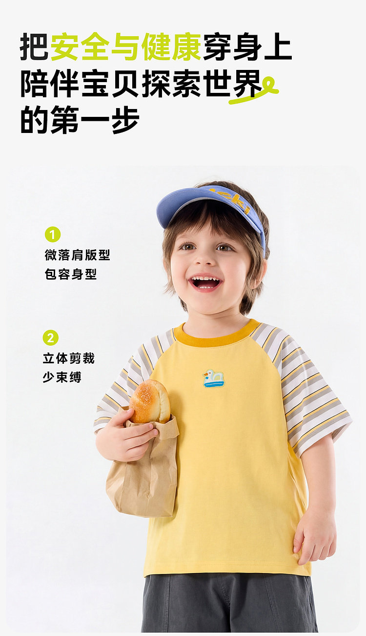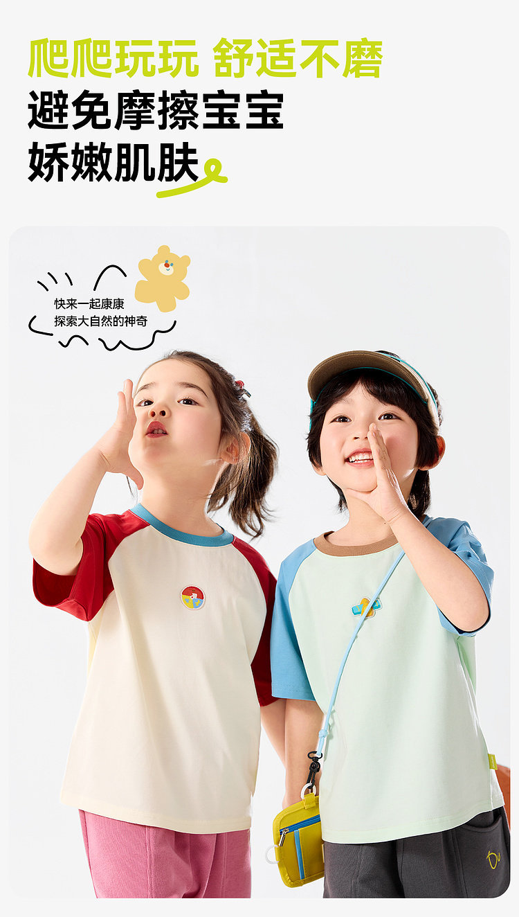 【7A抑菌】嘟嘟家儿童短袖T恤夏装男童插肩袖上衣女童衣服潮F6BTX240