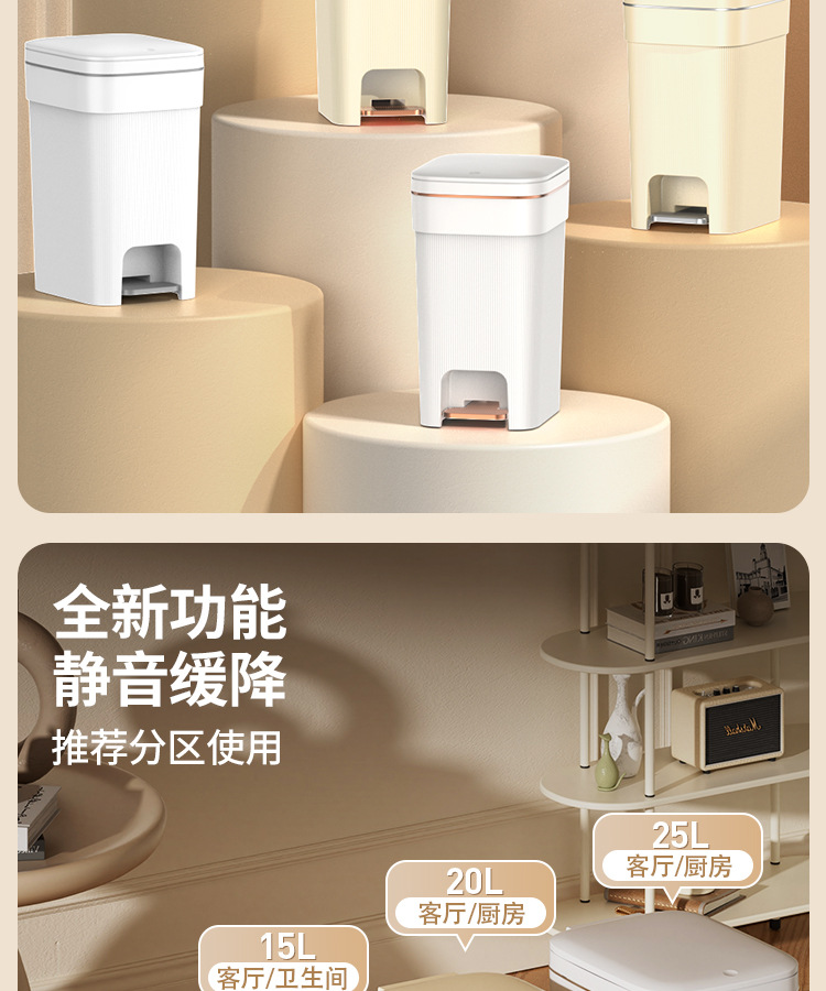 【垃圾桶家用】新款厨房客厅卧室脚踏式 大容量卫生间厕所带盖纸篓