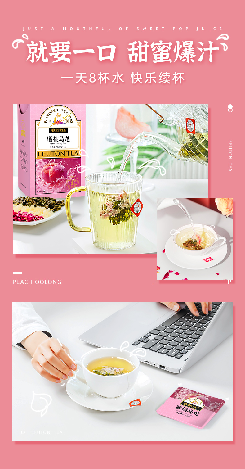 【超值补贴】艺福堂 蜜桃乌龙茶 三角茶包冷泡茶水果茶 45g/盒